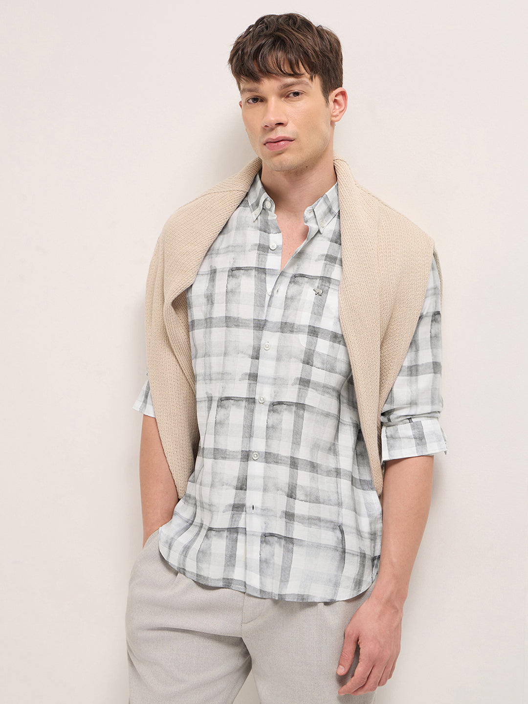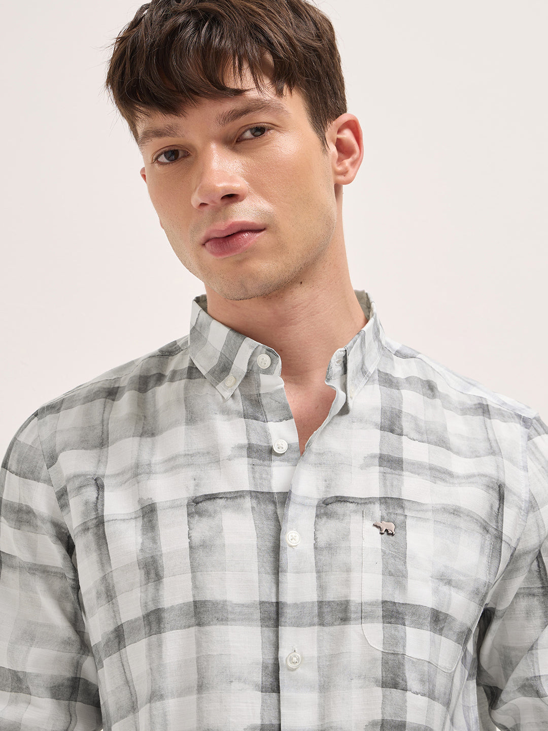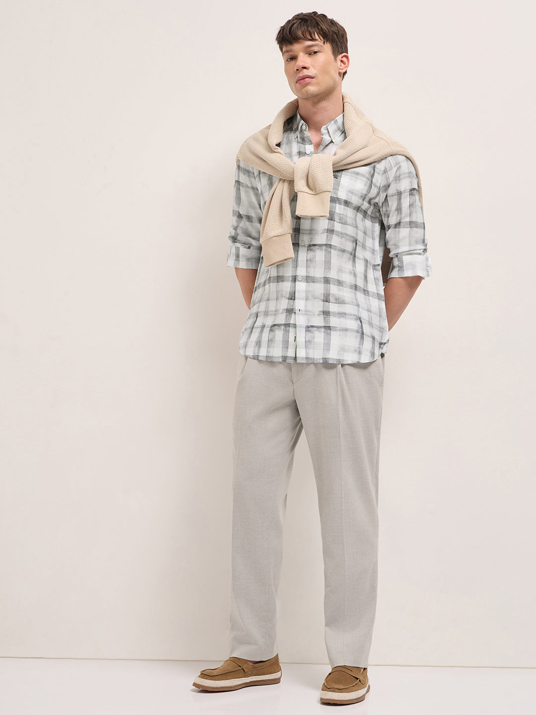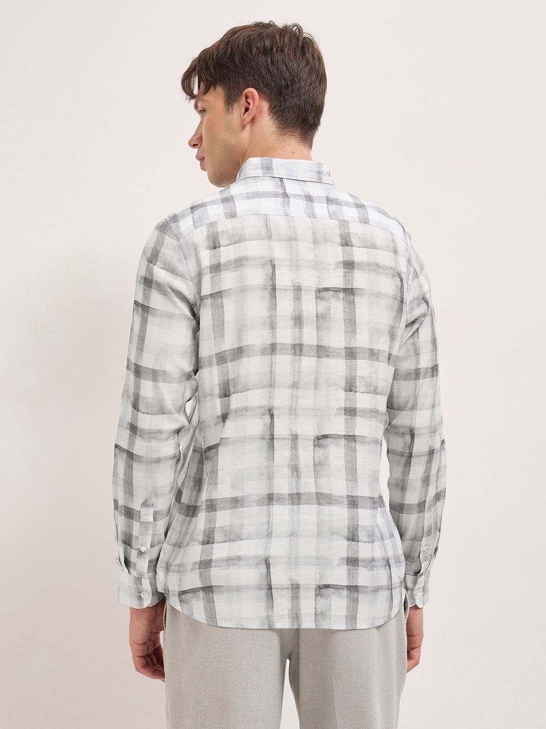 Grey & White Slim Fit Casual Shirt with Printed Checks