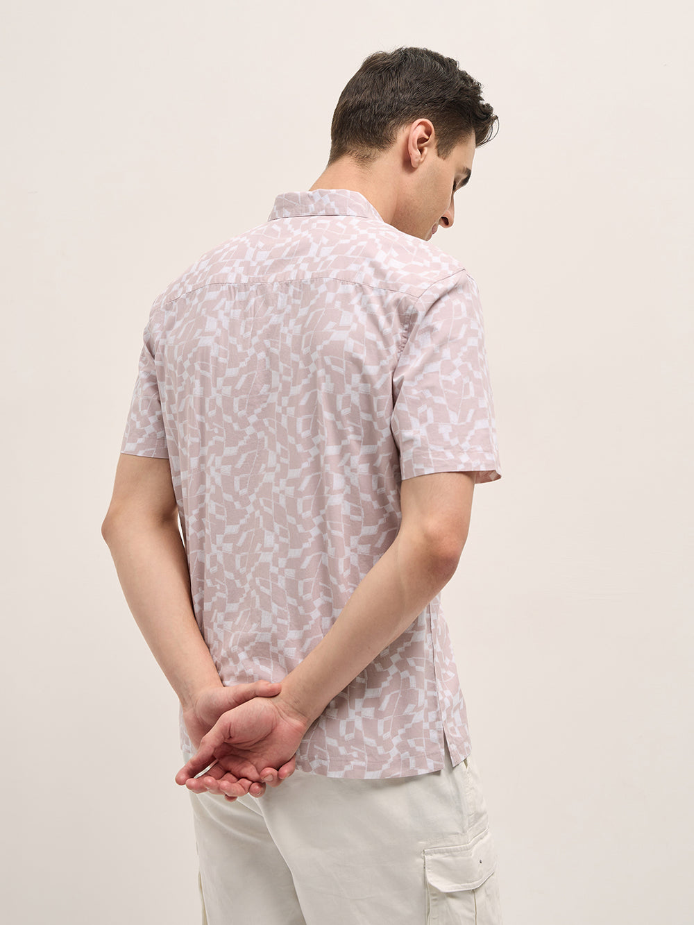 Shop Pink Geometrical Print Relax Fit Casual Shirt Online.
