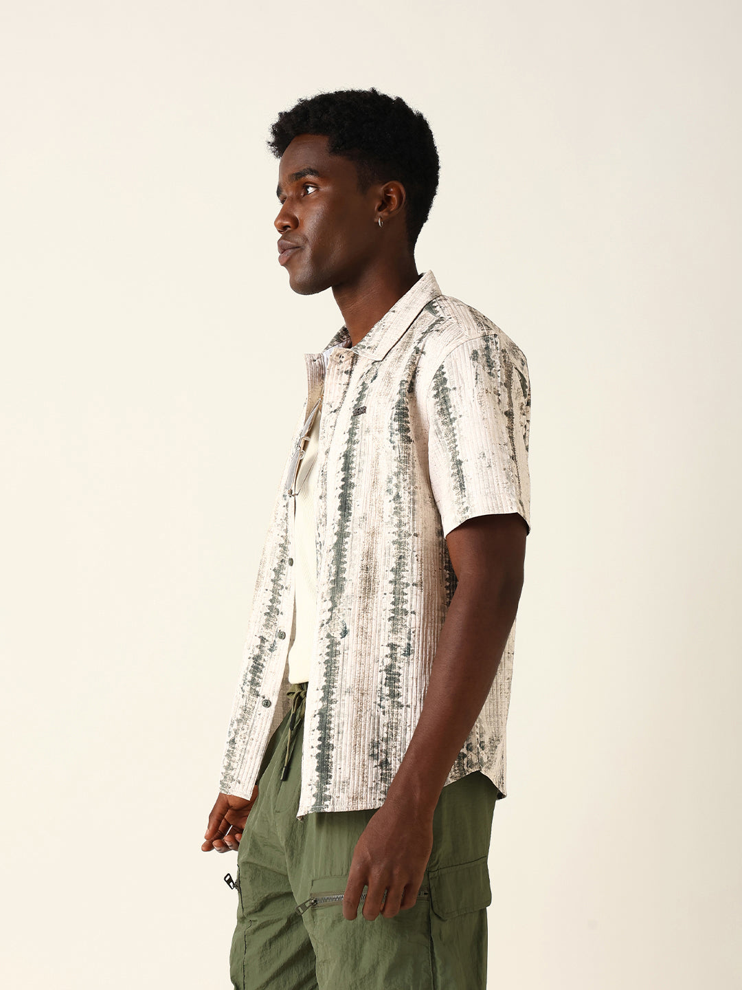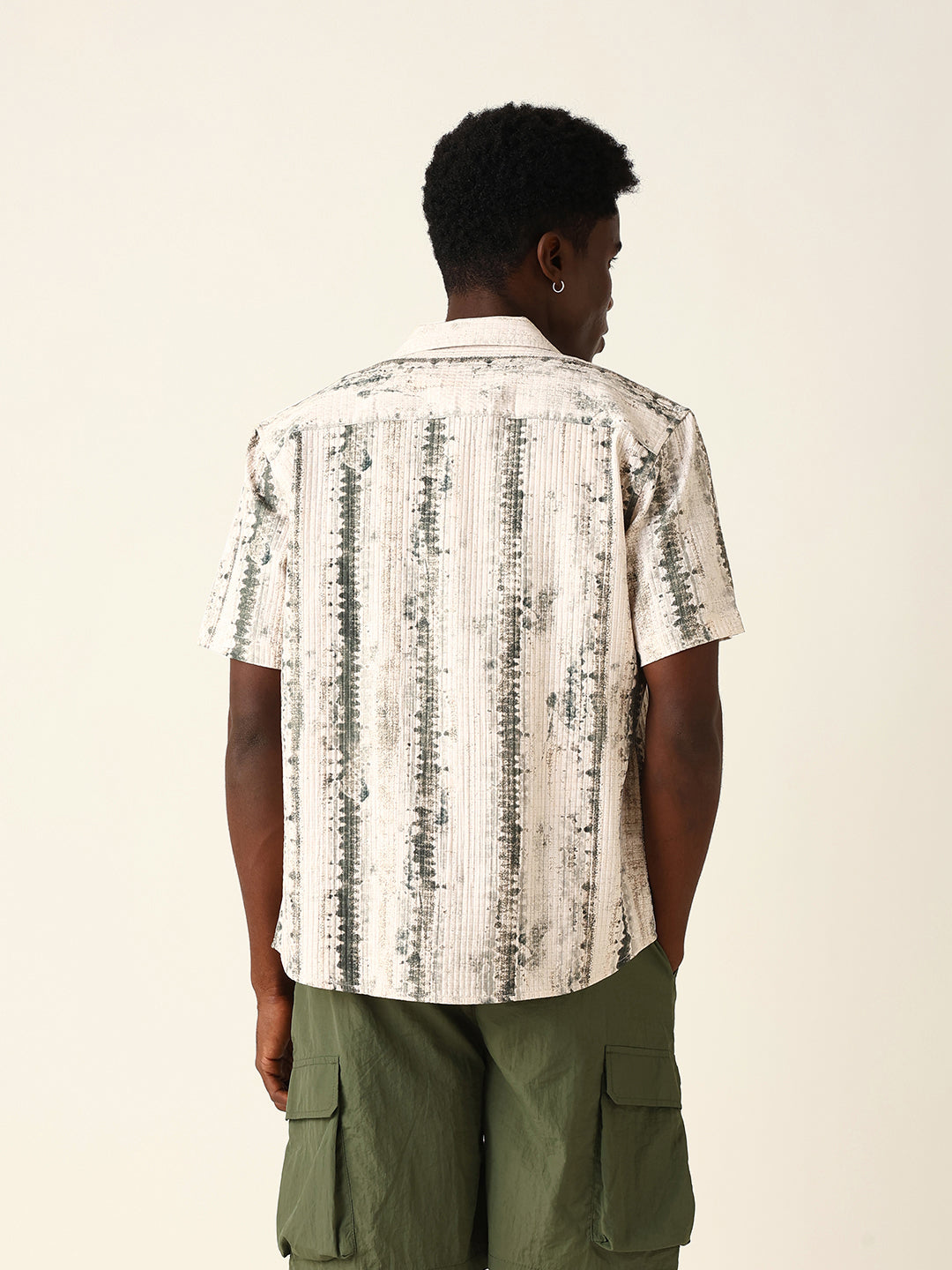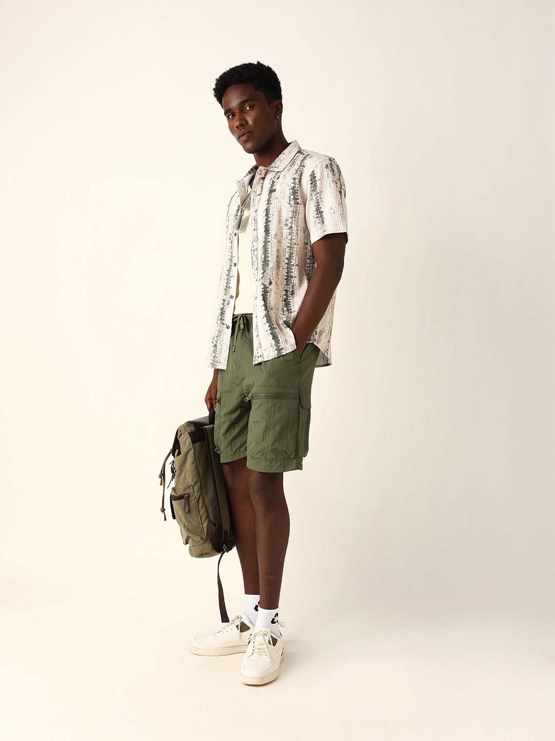 Beige & Olive Abstract Textured Printed Relaxed Fit Casual Shirt
