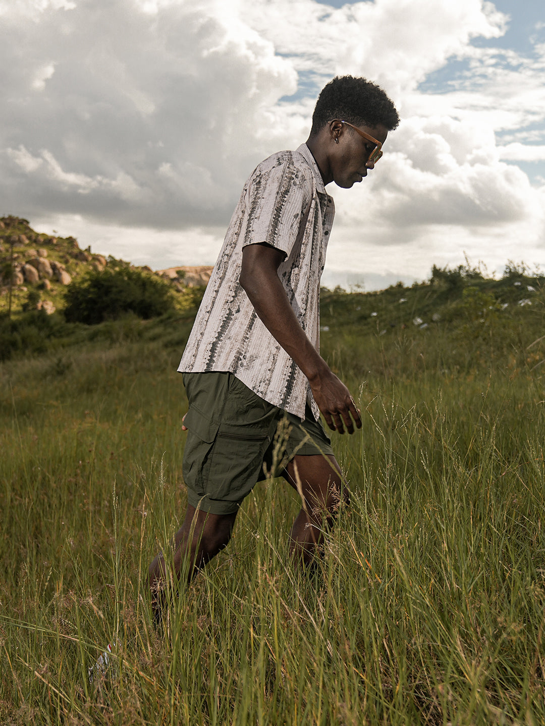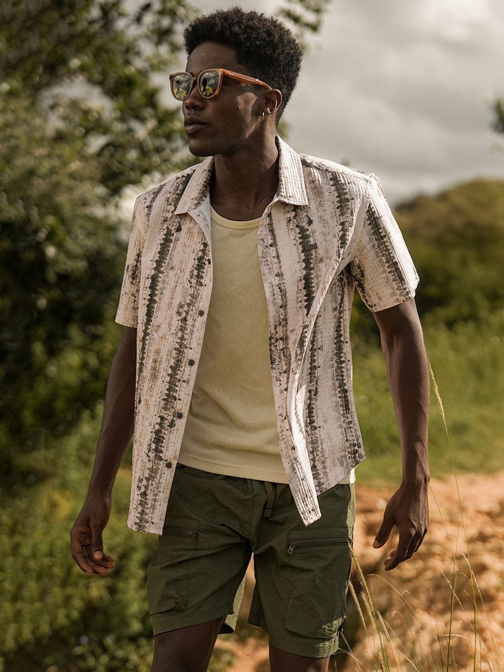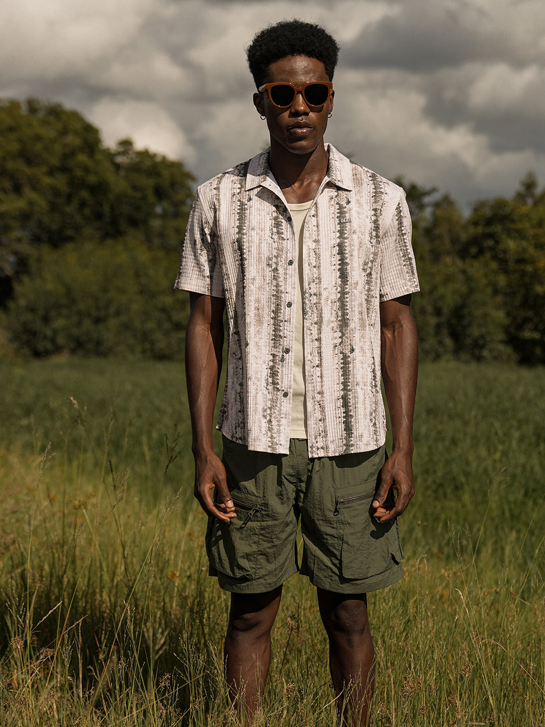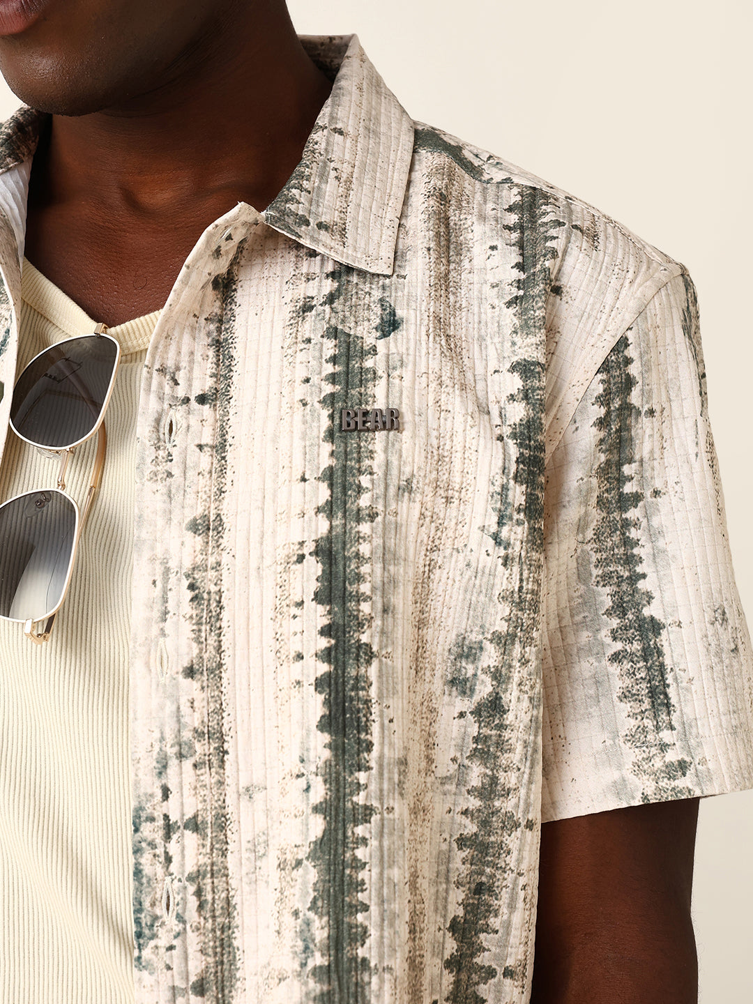 Beige & Olive Abstract Textured Printed Relaxed Fit Casual Shirt