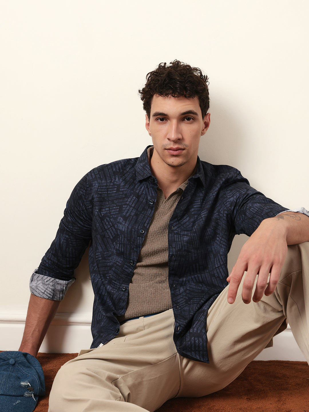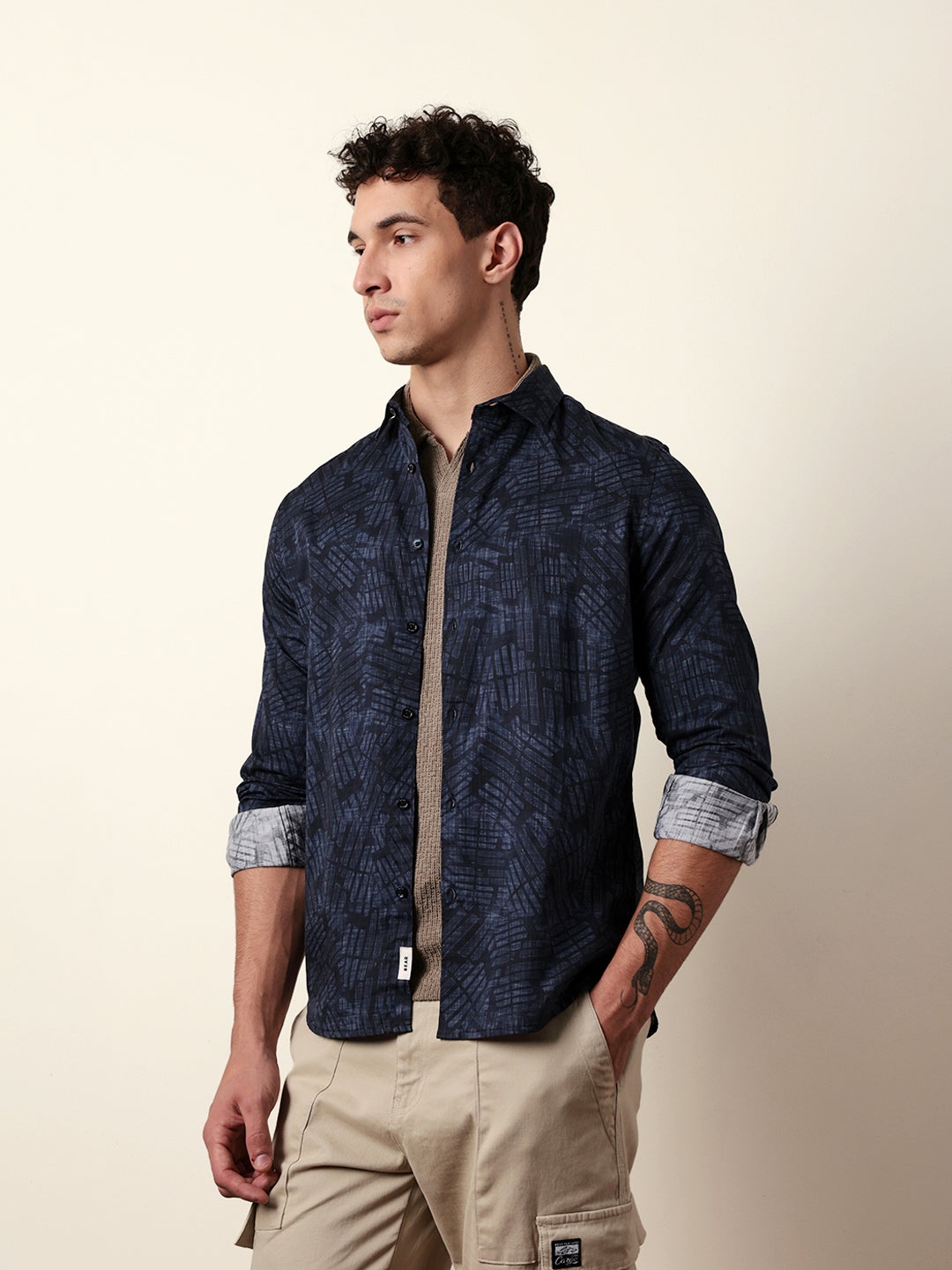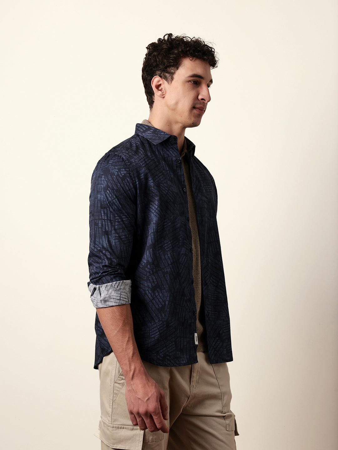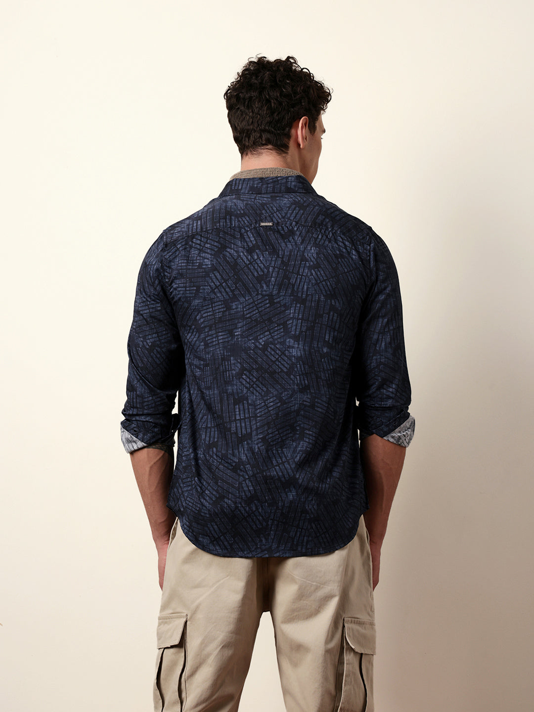 Shop Blue Abstract Geometric Printed Slim Fit Casual Shirt Online.