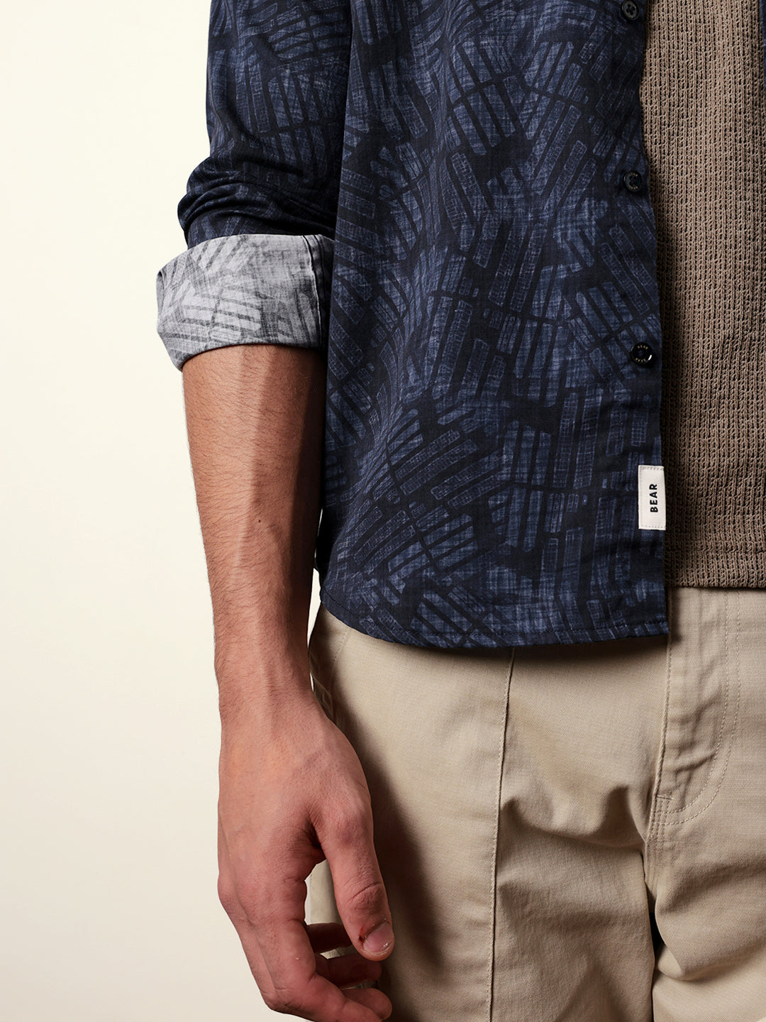 Blue Abstract Geometric Printed Slim Fit Casual Shirt
