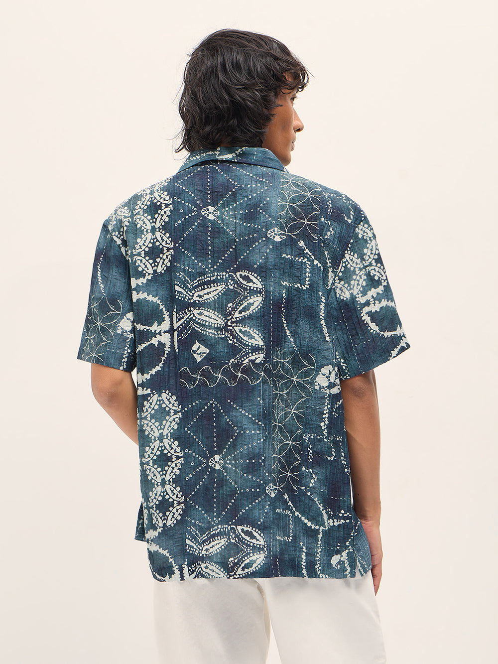 Blue Viscose Paisley Print Relaxed Fit Cuban Collar Shirt
