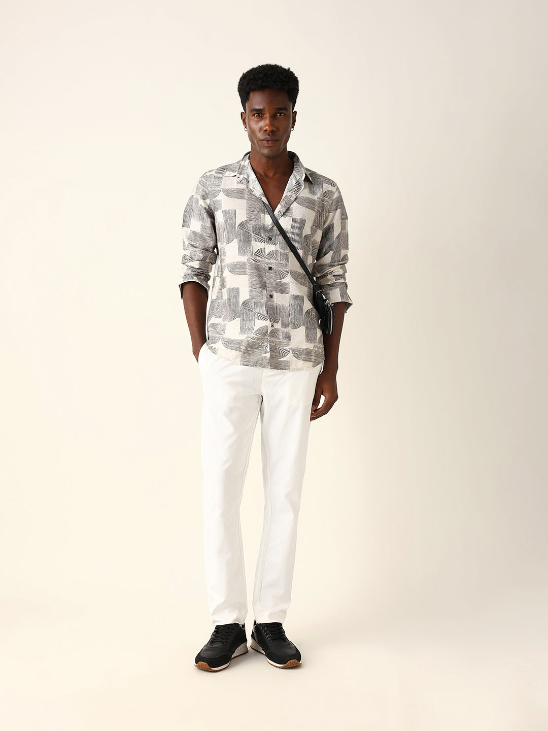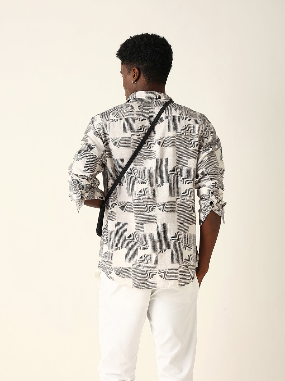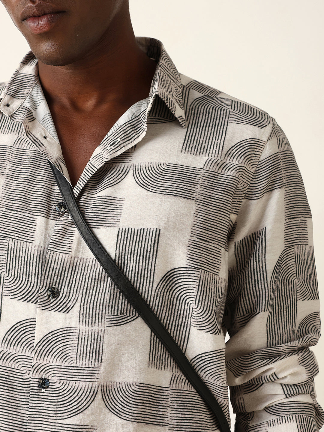 Shop Beige & Black Geometric Printed Regular Fit Casual Shirt Online.