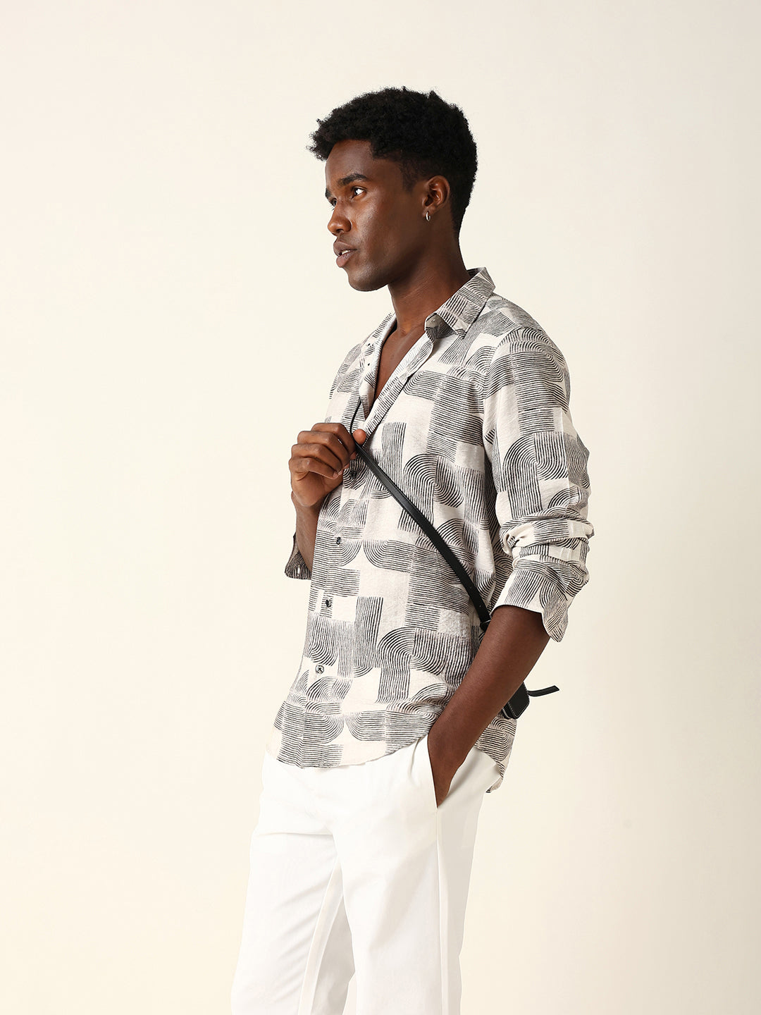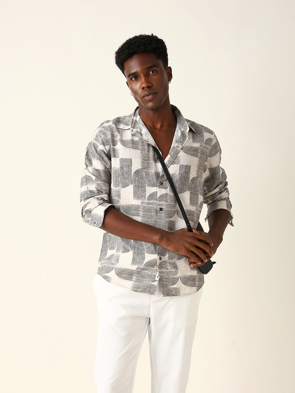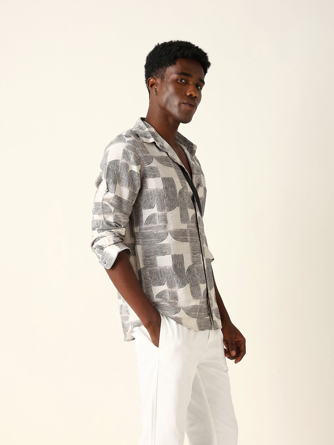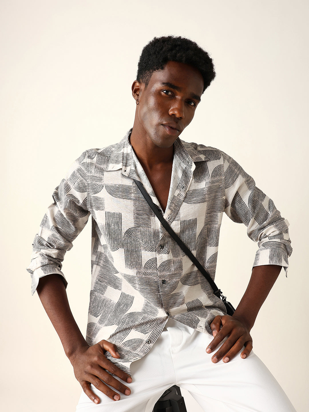 Shop Beige & Black Geometric Printed Regular Fit Casual Shirt Online.