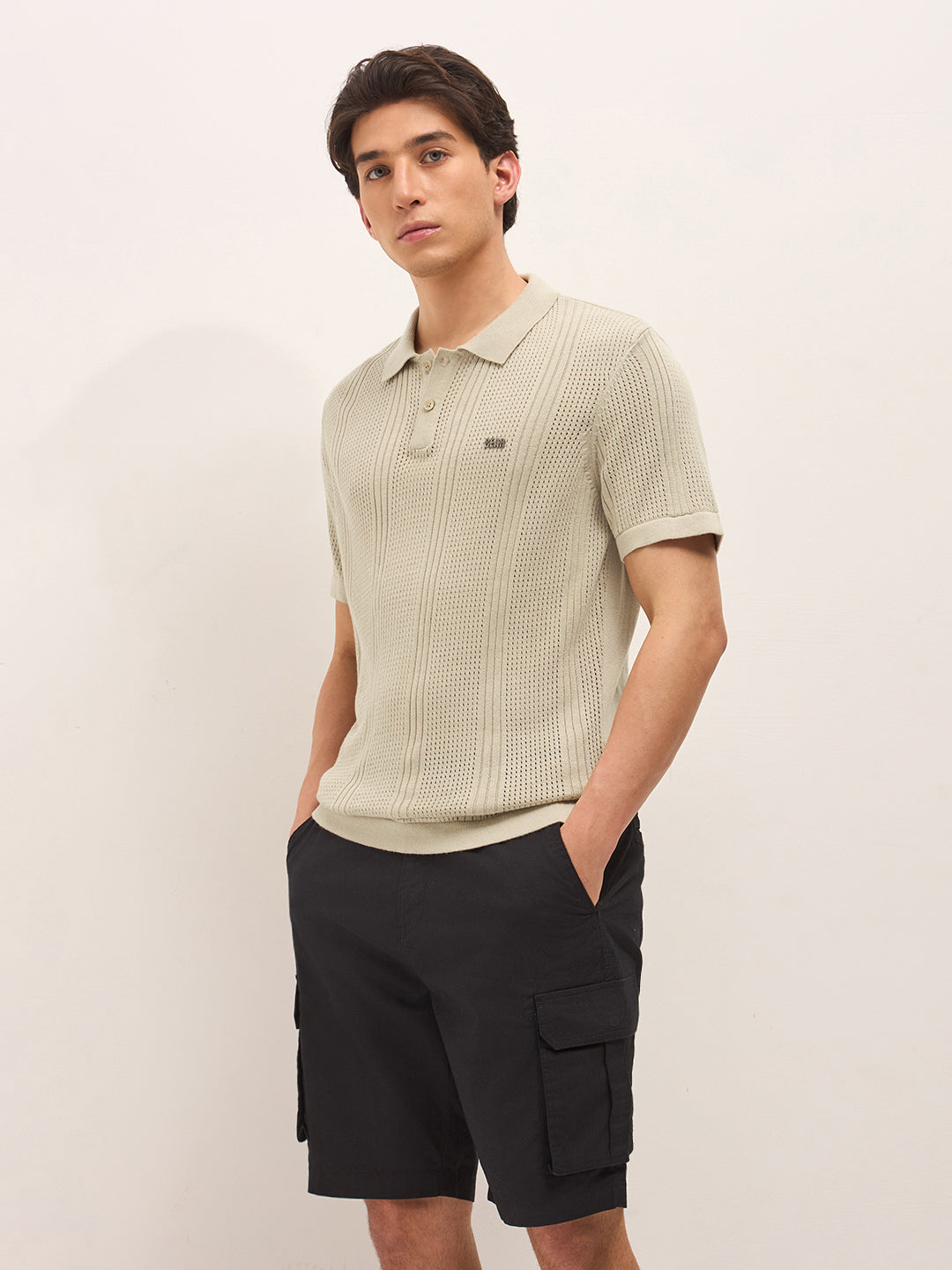 - Placket: Classic polo button placket with 3-button closure
