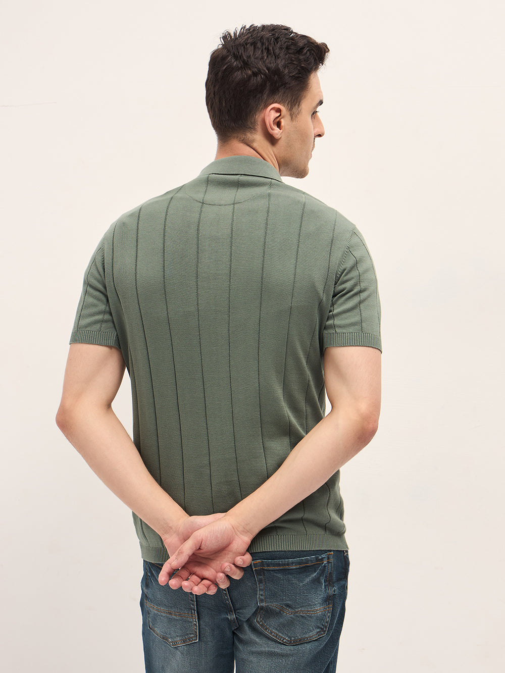 - Collar: Polo collar with button placket