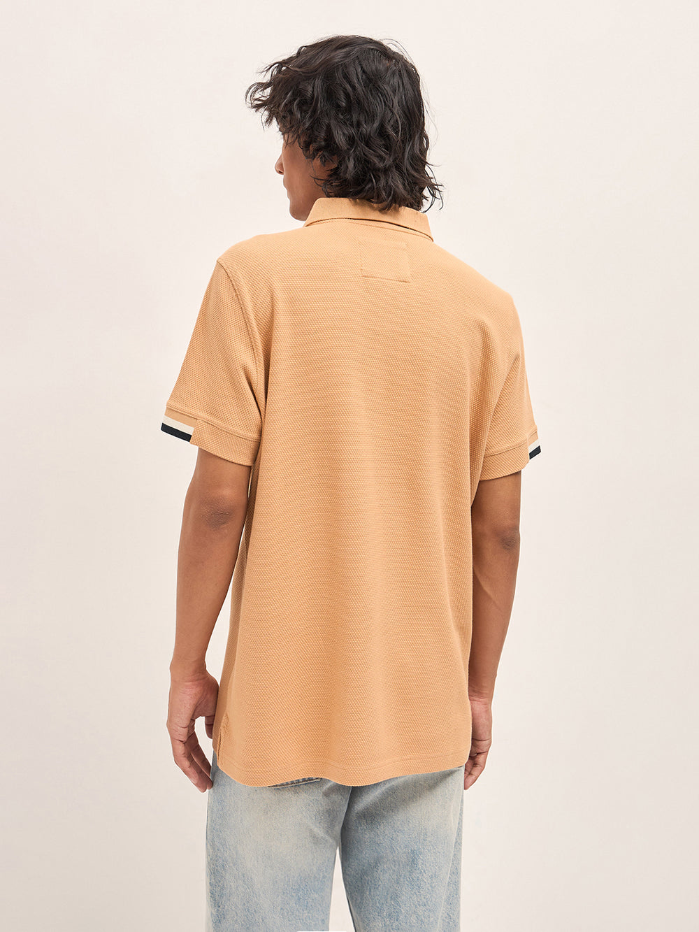 Orange Slim Fit Polo with Textured Flat Knit Design