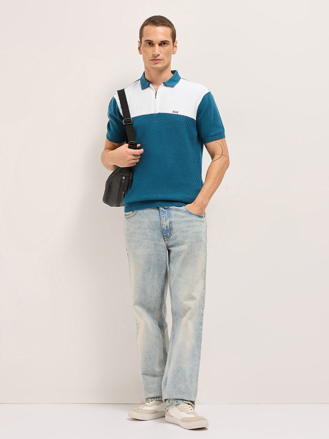 • Collar: Polo collar with half-zip closure for a modern touch