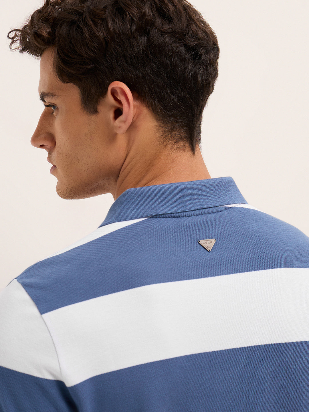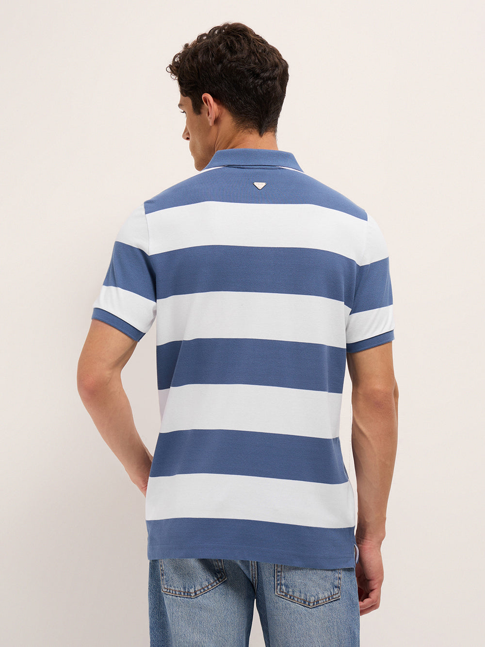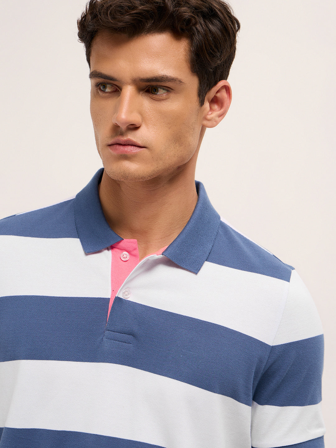 Blue and White Bold Horizontal Stripe Knit Regular Fit Polo