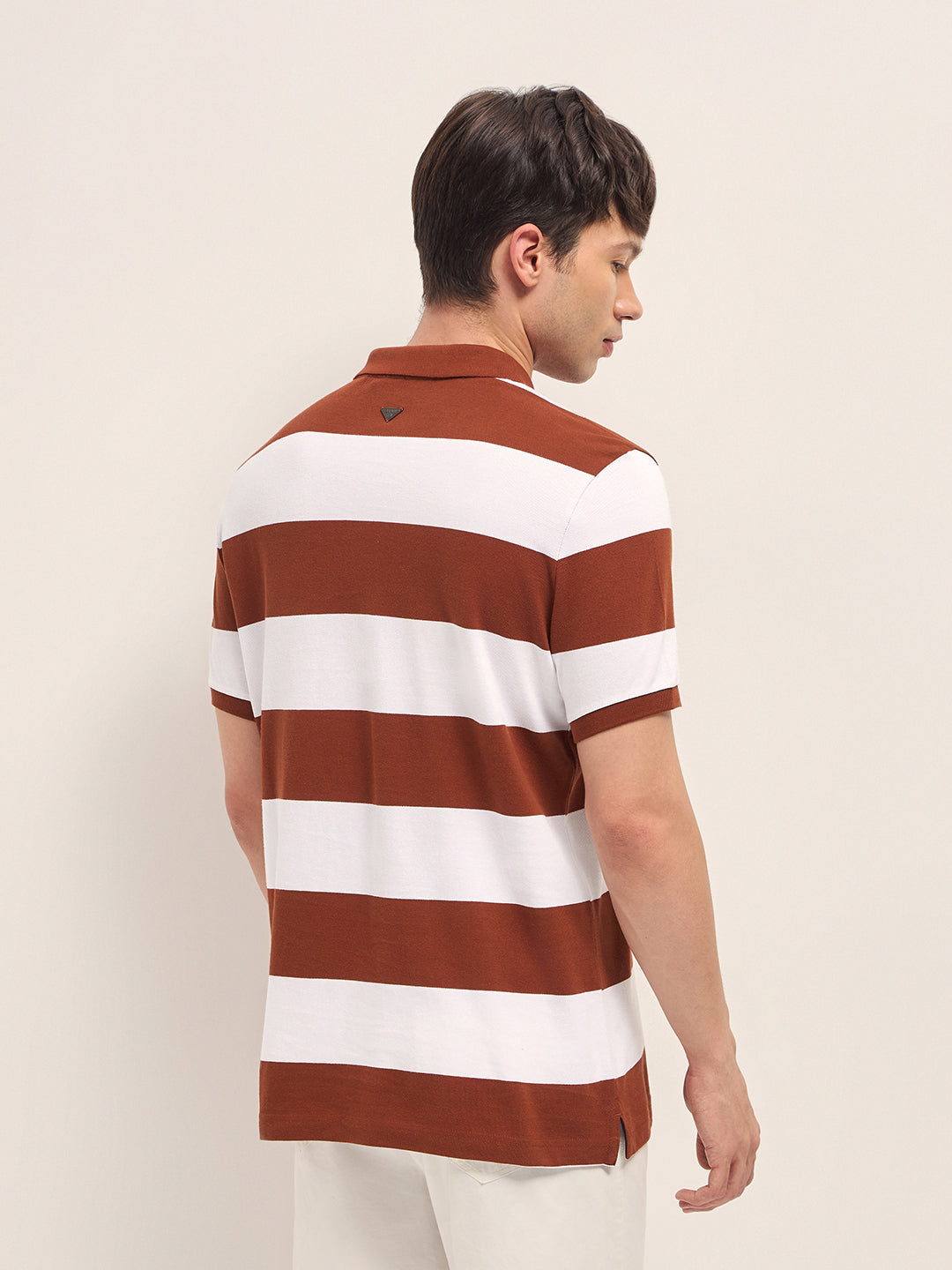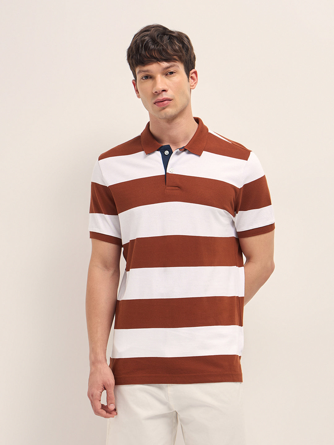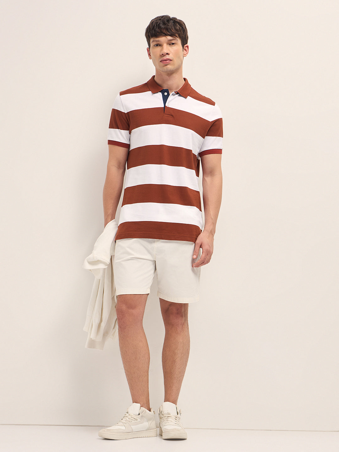 Shop Rust and White Bold Horizontal Stripe Knit Regular Fit Polo Online.