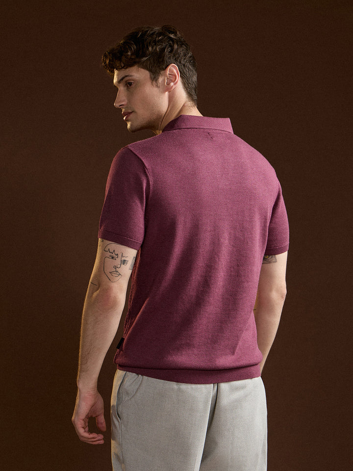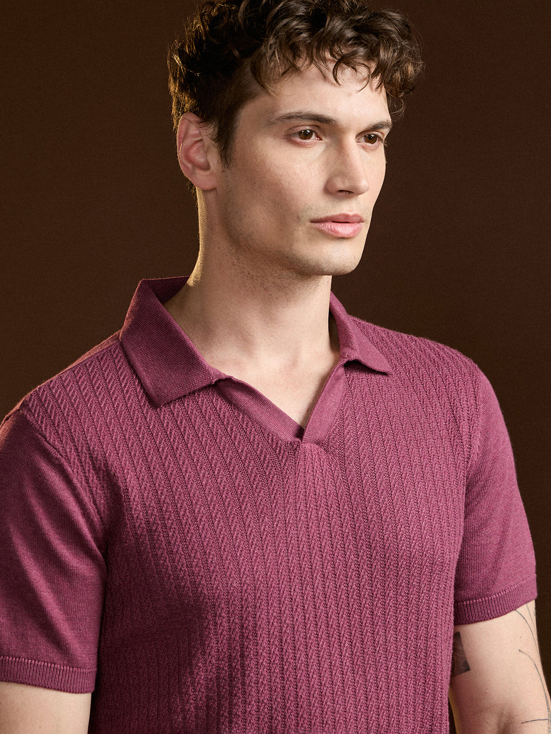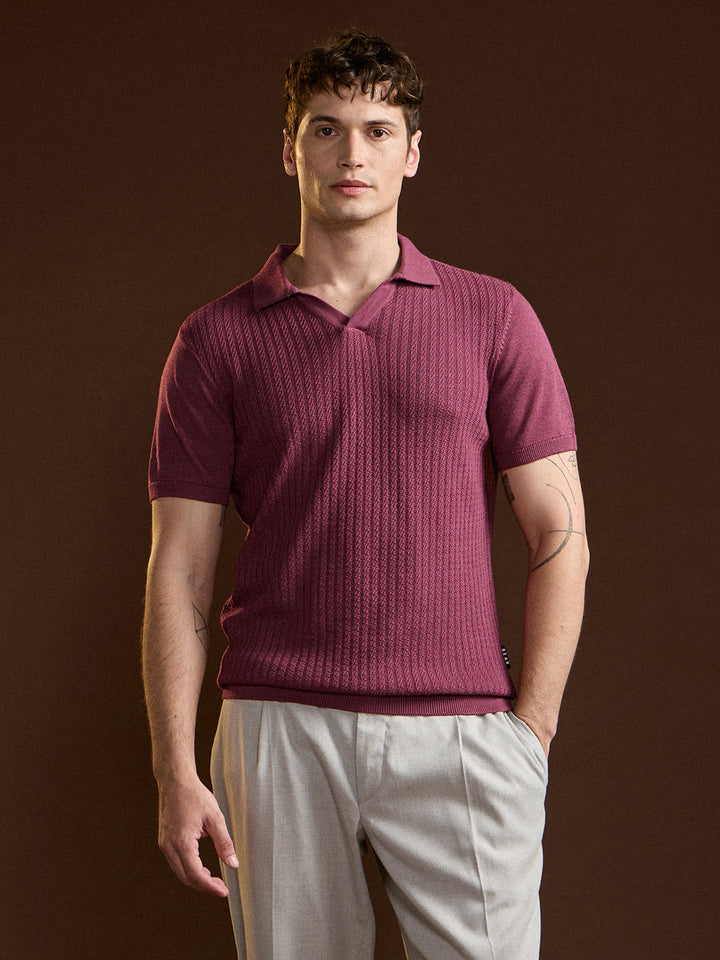 Shop Pink Ribbed Texture Design Slim Fit Polo Online.