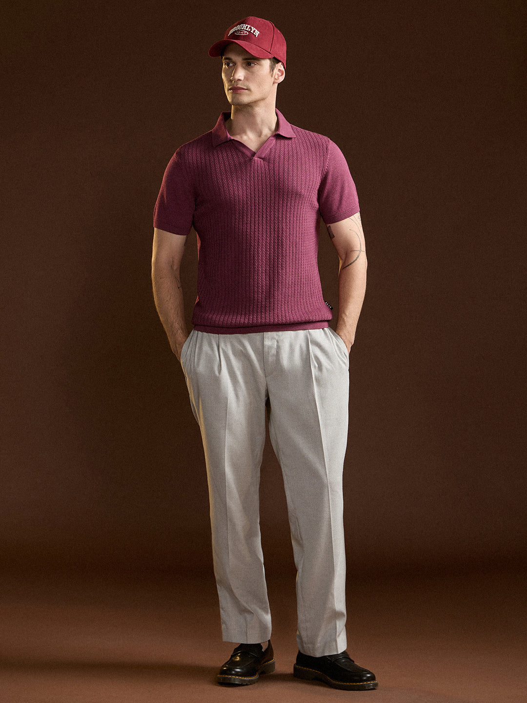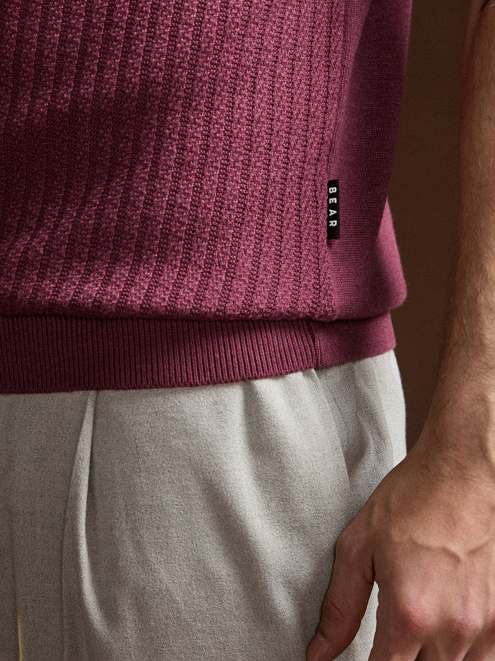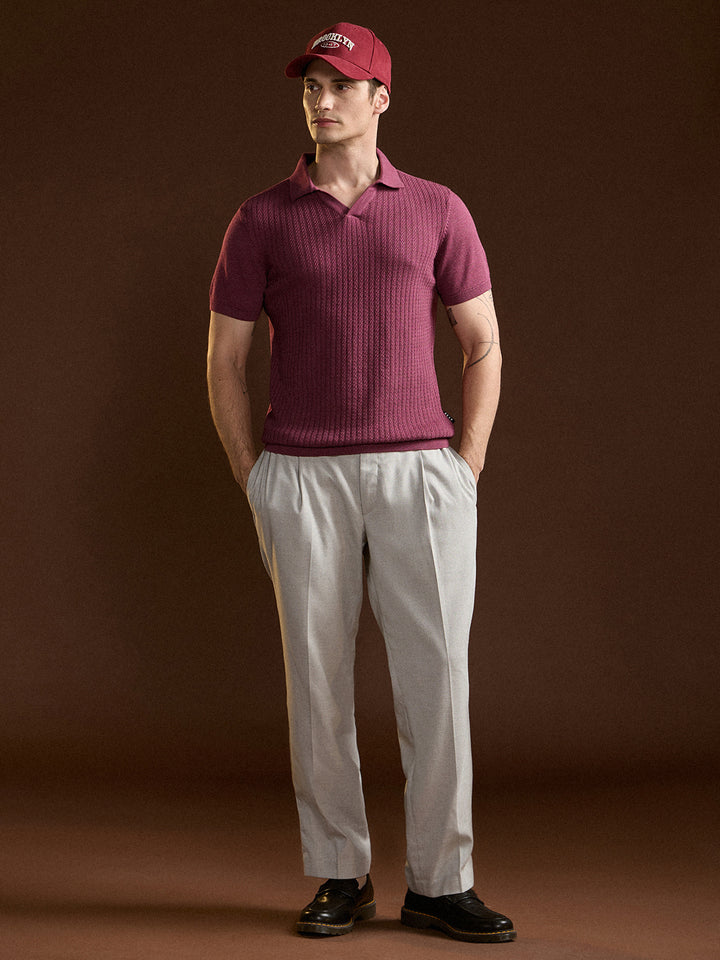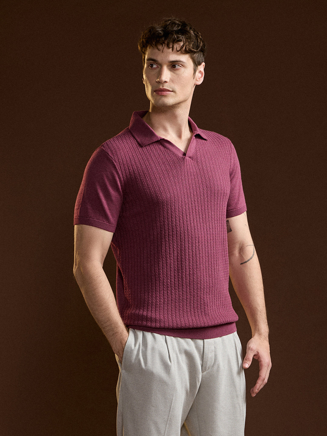 Shop Pink Ribbed Texture Design Slim Fit Polo Online.