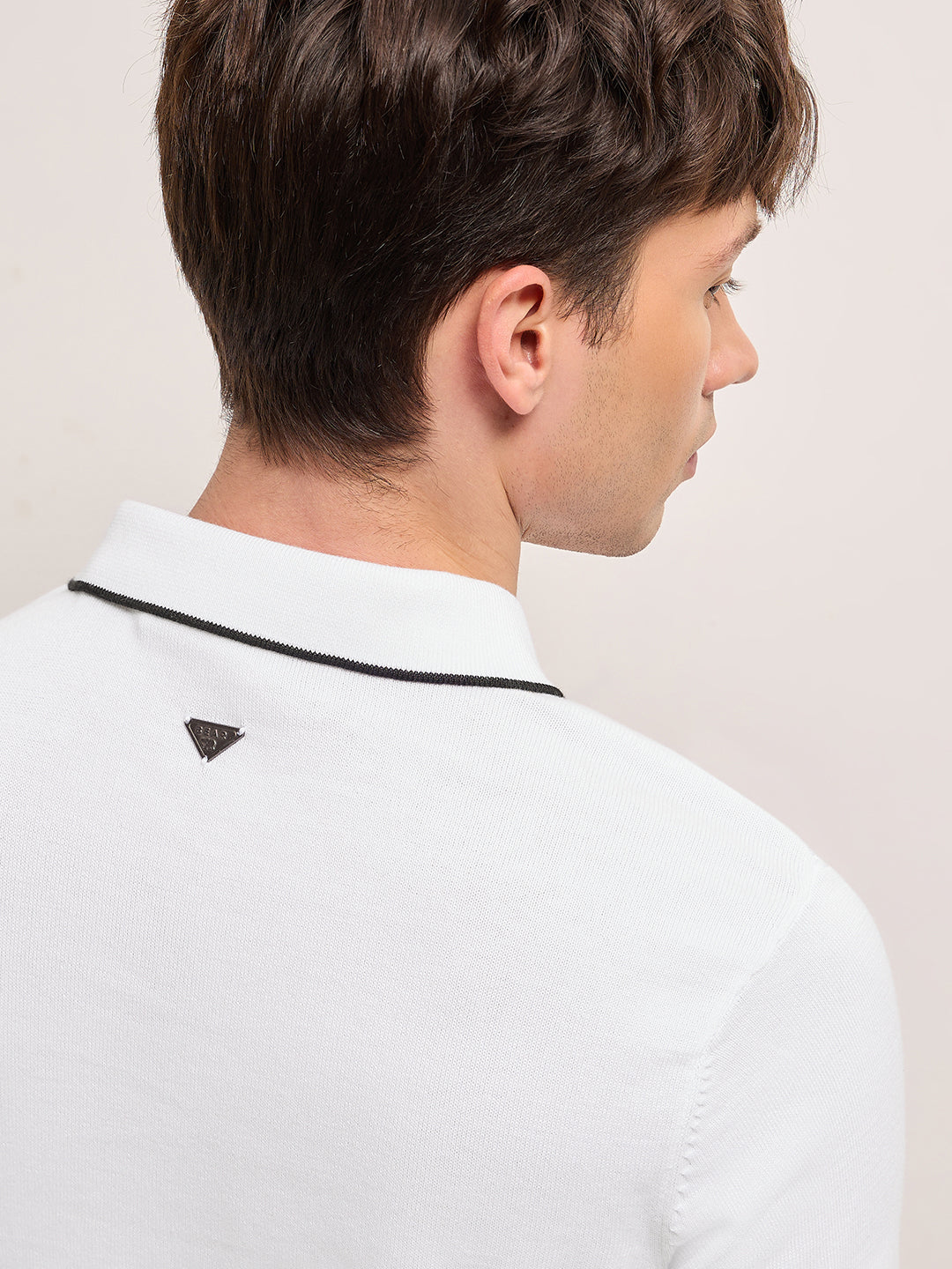 • Collar: Polo collar with a sleek half-zip closure and contrast tipping