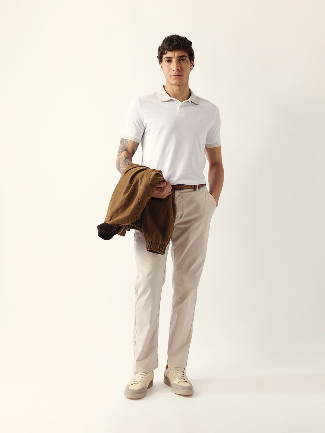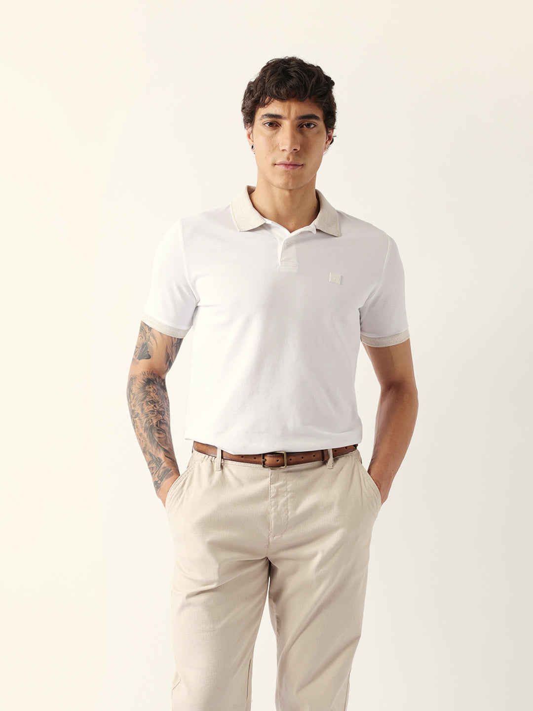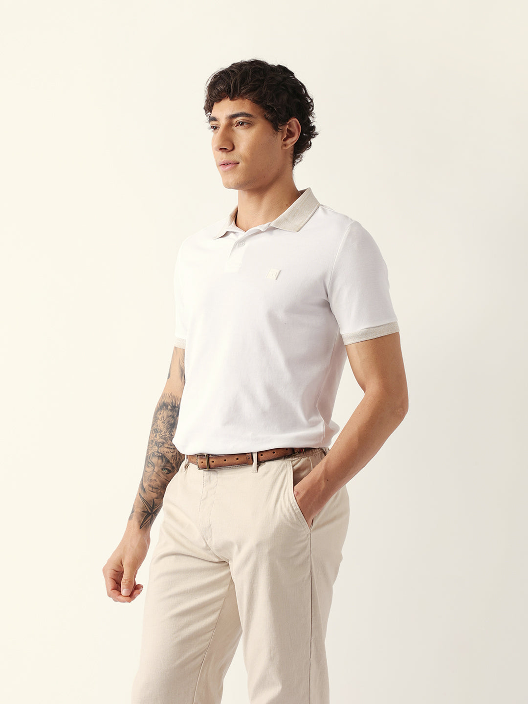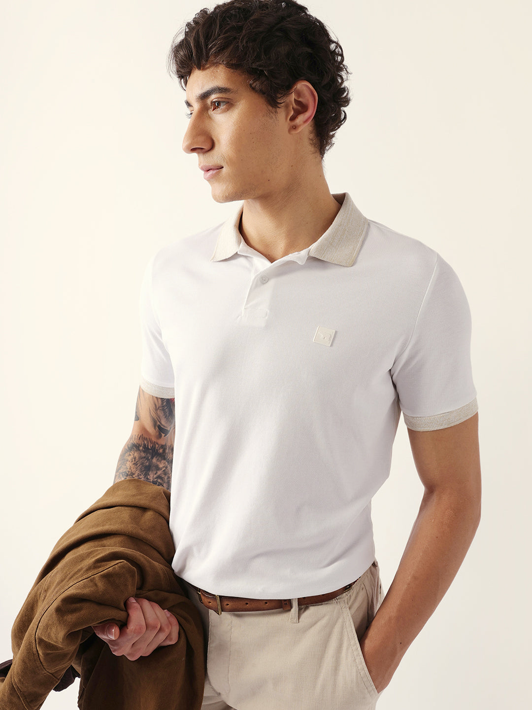 Shop White Solid Slim Fit Polo with Contrast Collar Design Online.