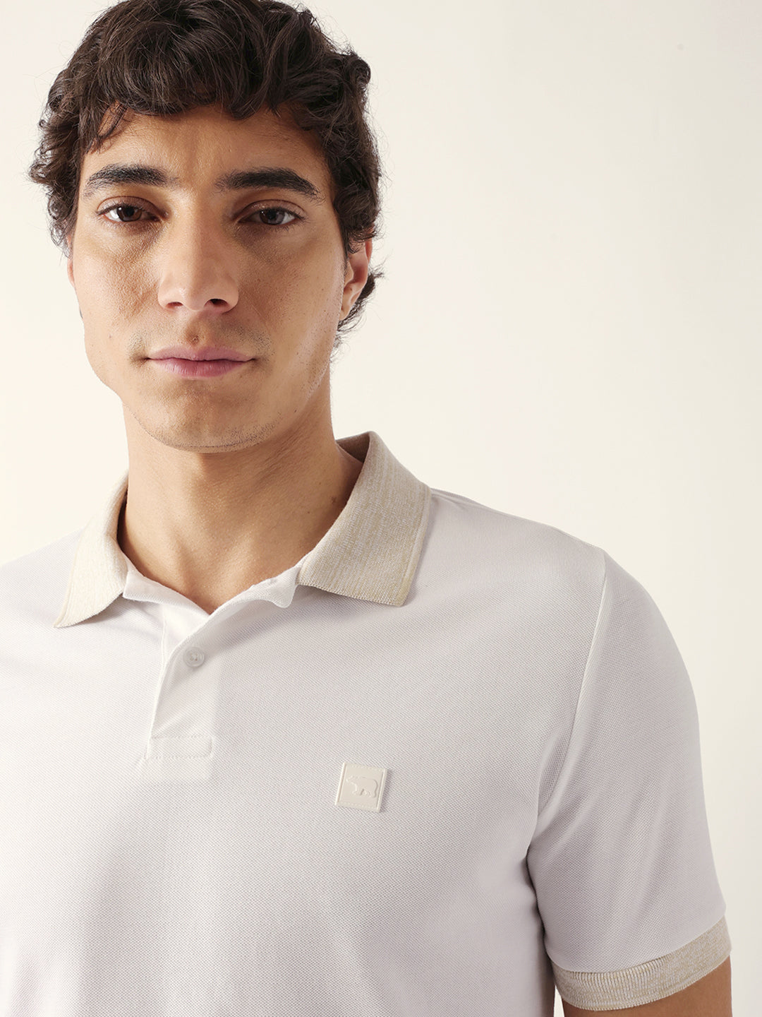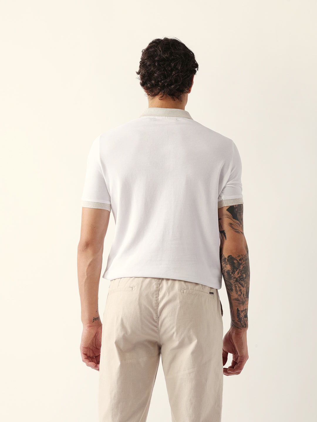 White Solid Slim Fit Polo with Contrast Collar Design