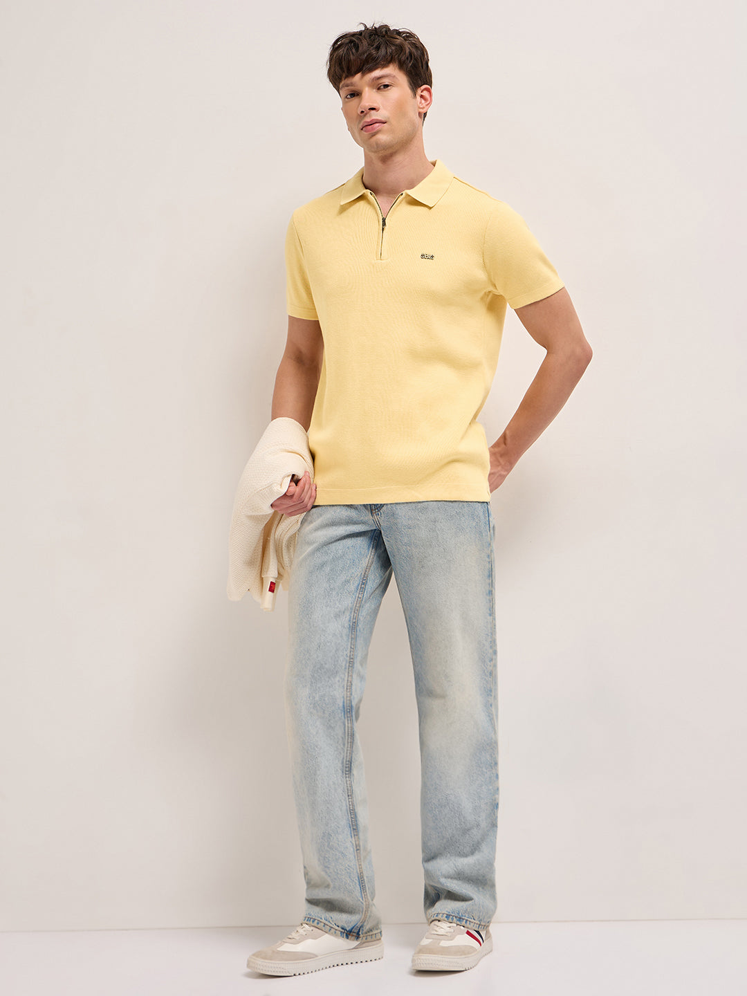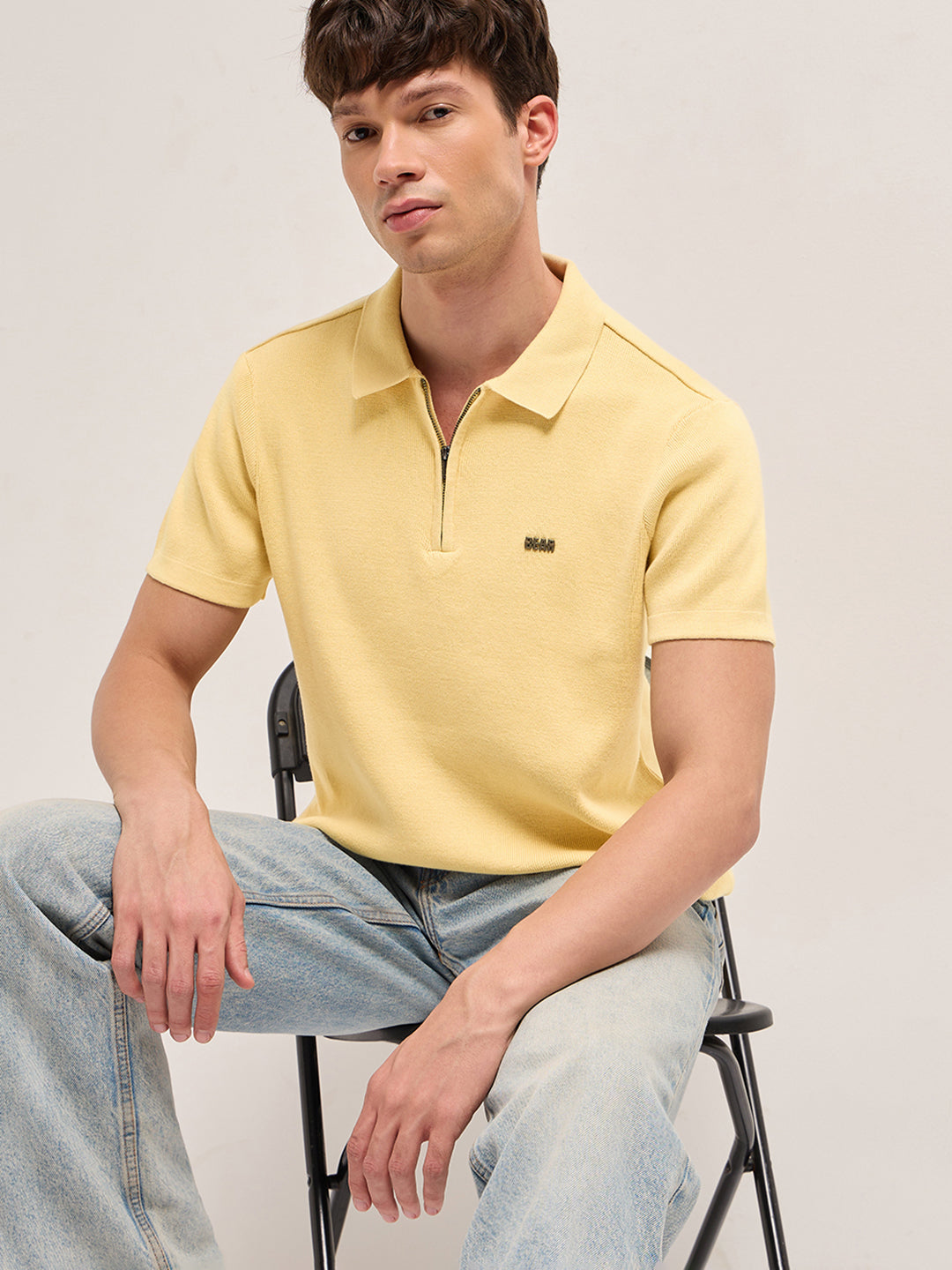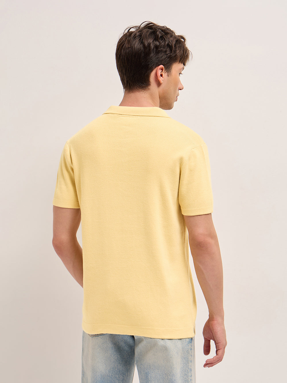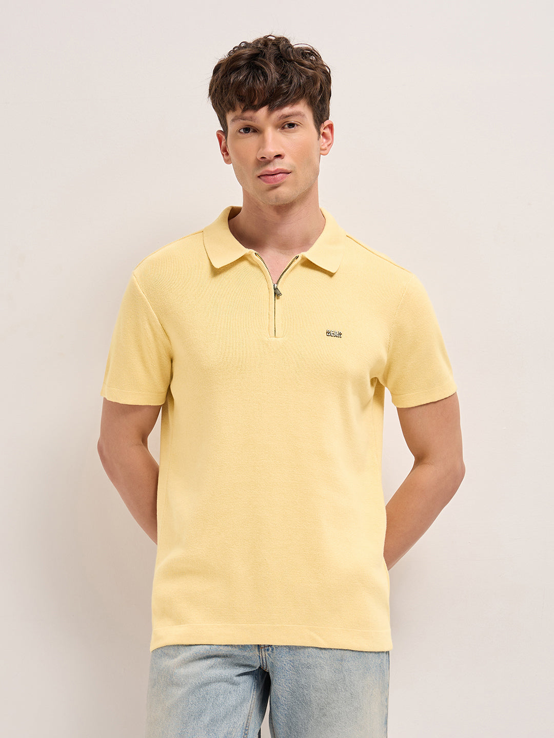 Shop Yellow Regular Fit Flat Knit Polo with Half-Zip Placket Online.