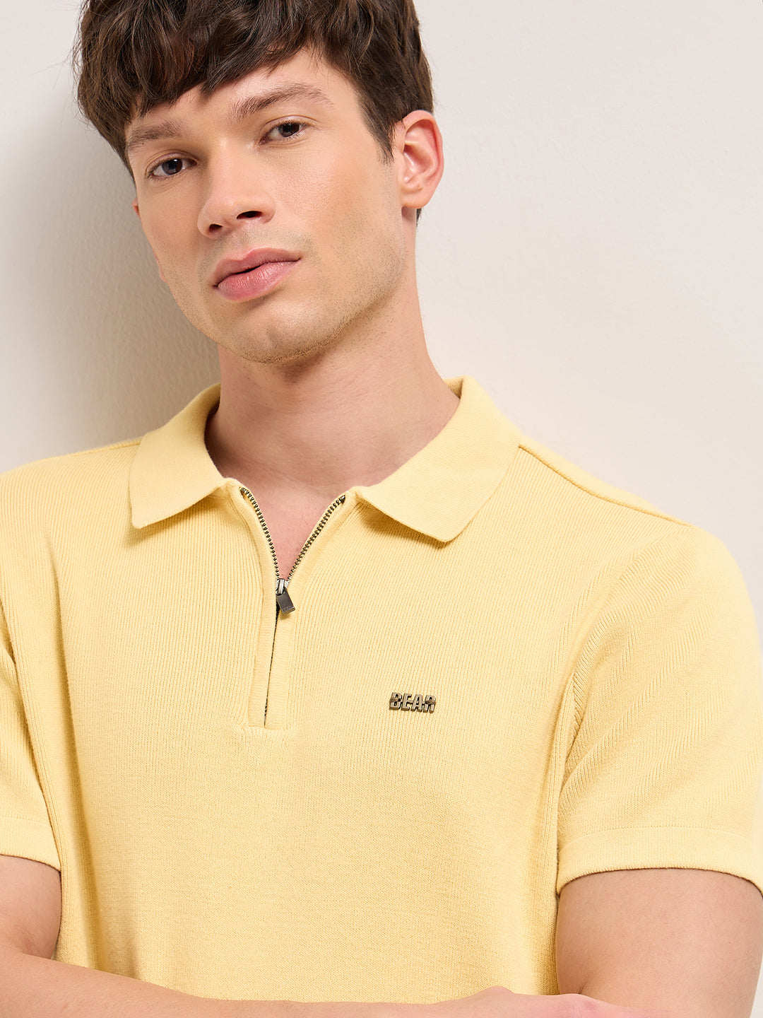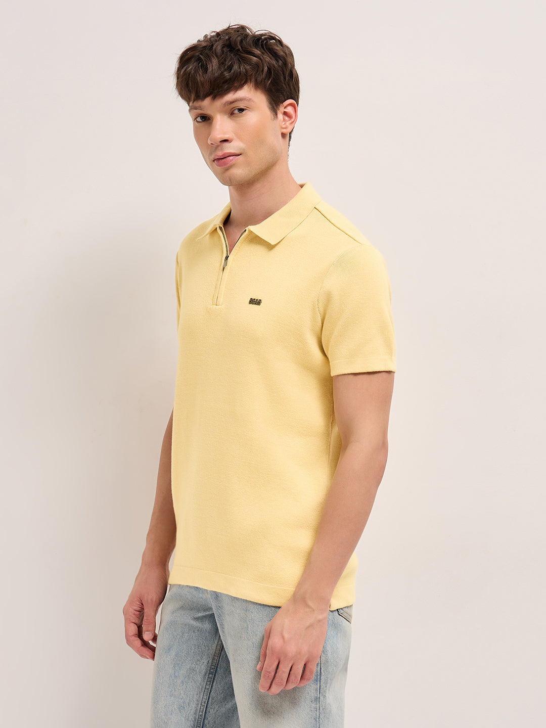 Yellow Regular Fit Flat Knit Polo with Half-Zip Placket