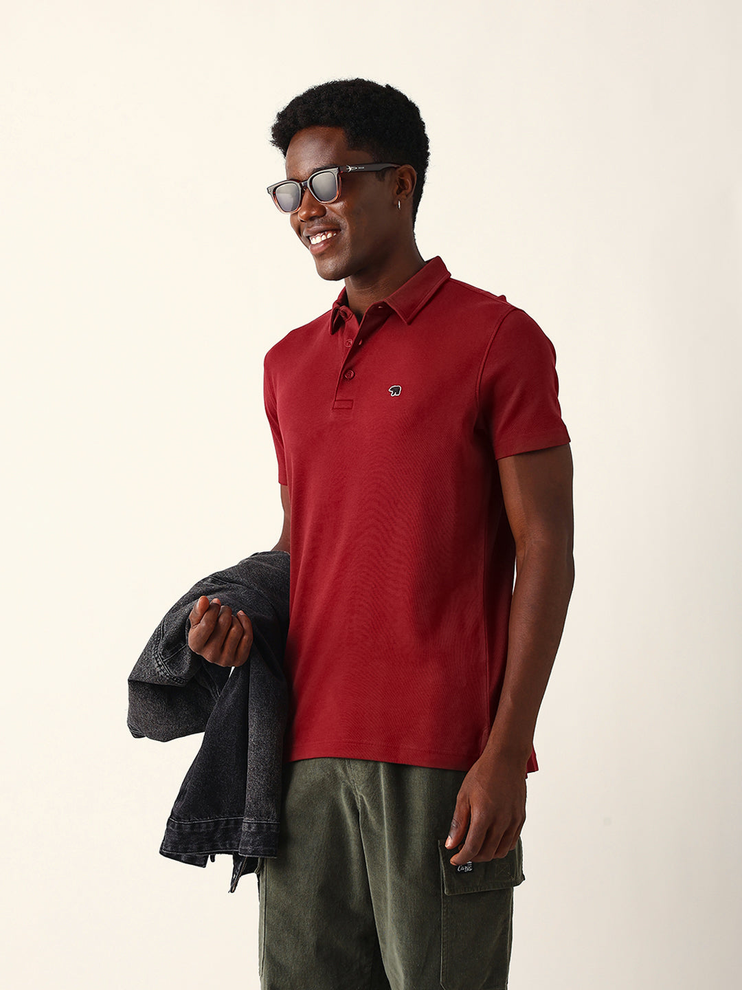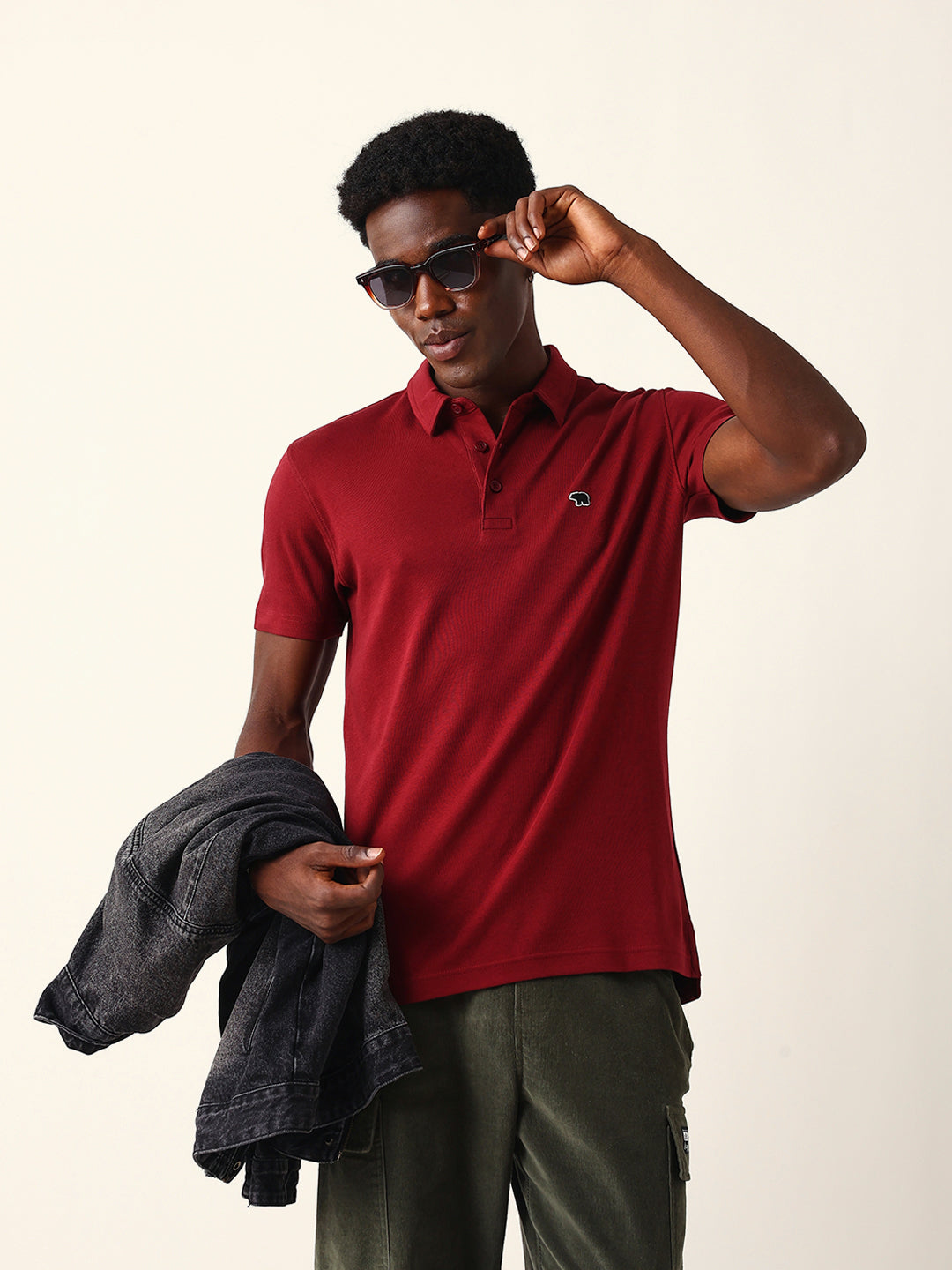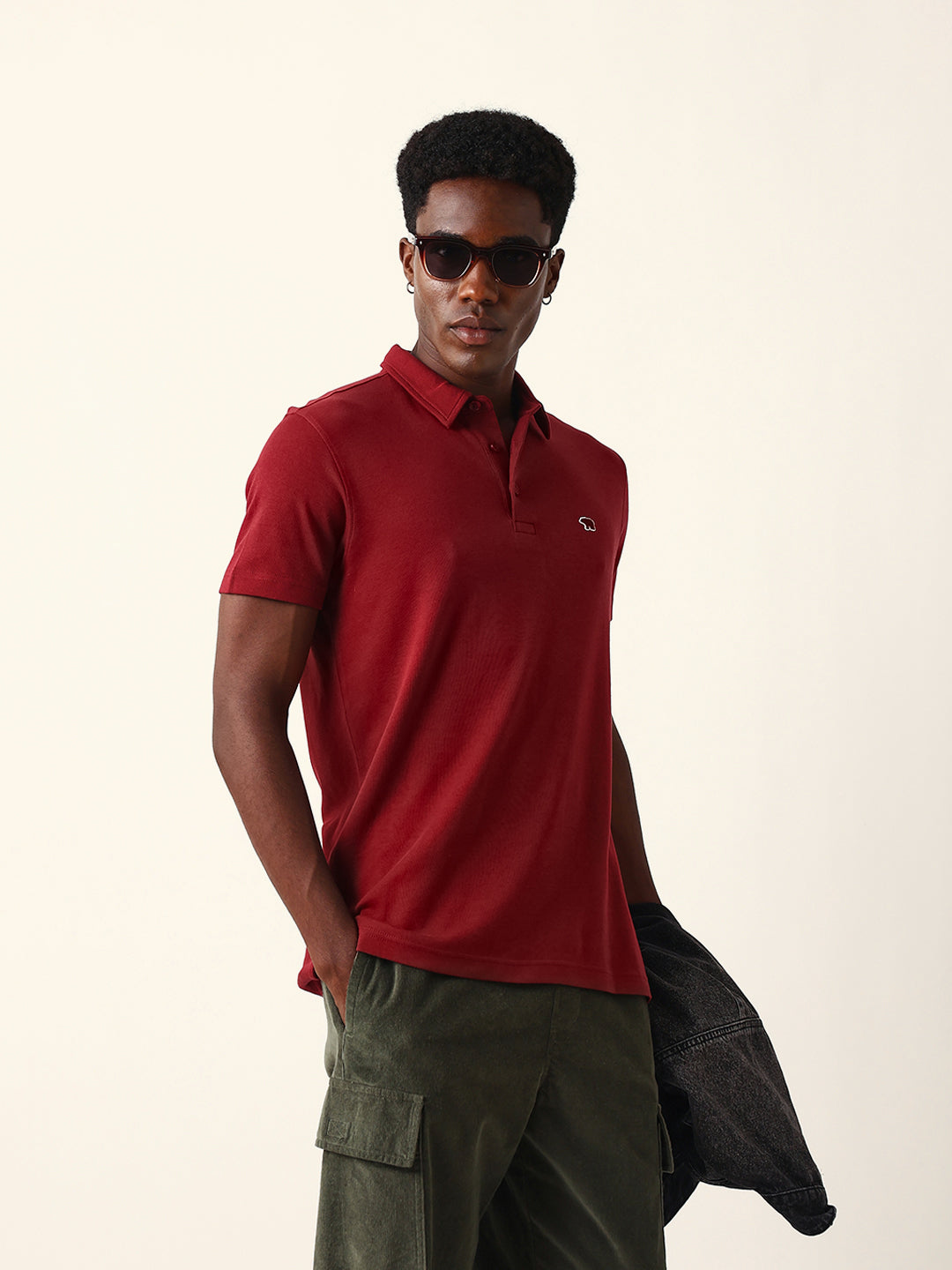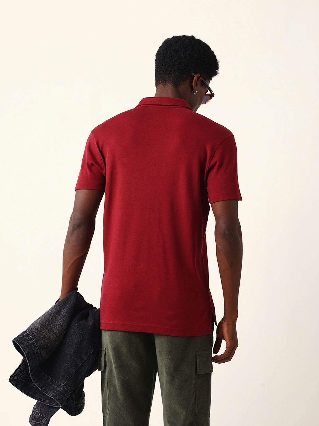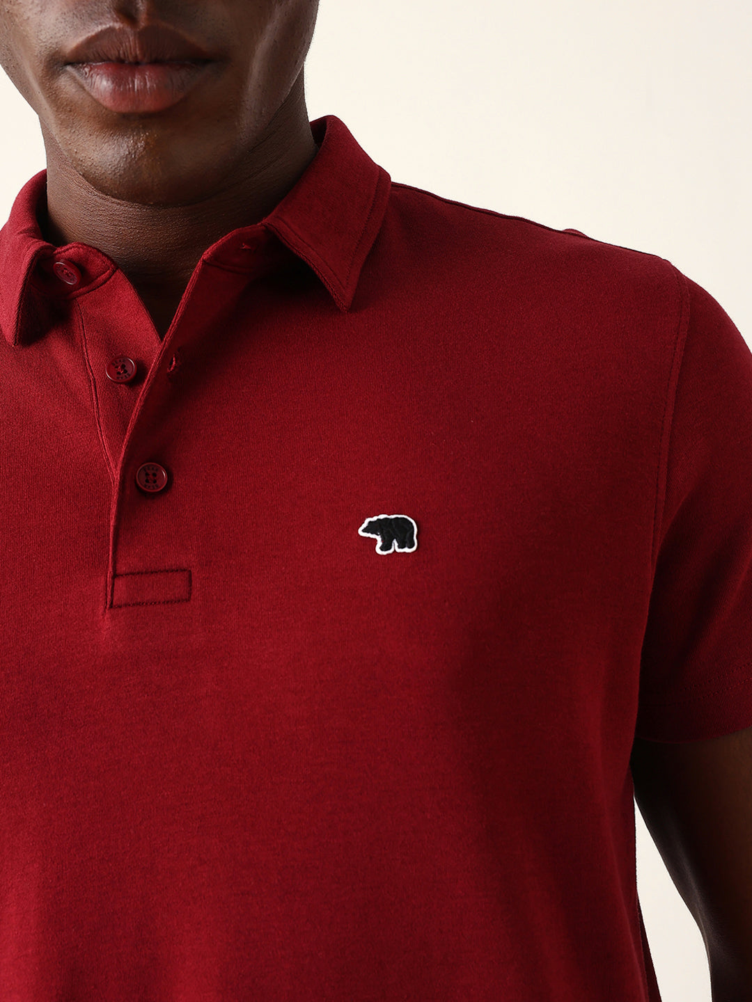 Shop Maroon Solid Slim Fit Polo with High-Low Hemline Design Online.