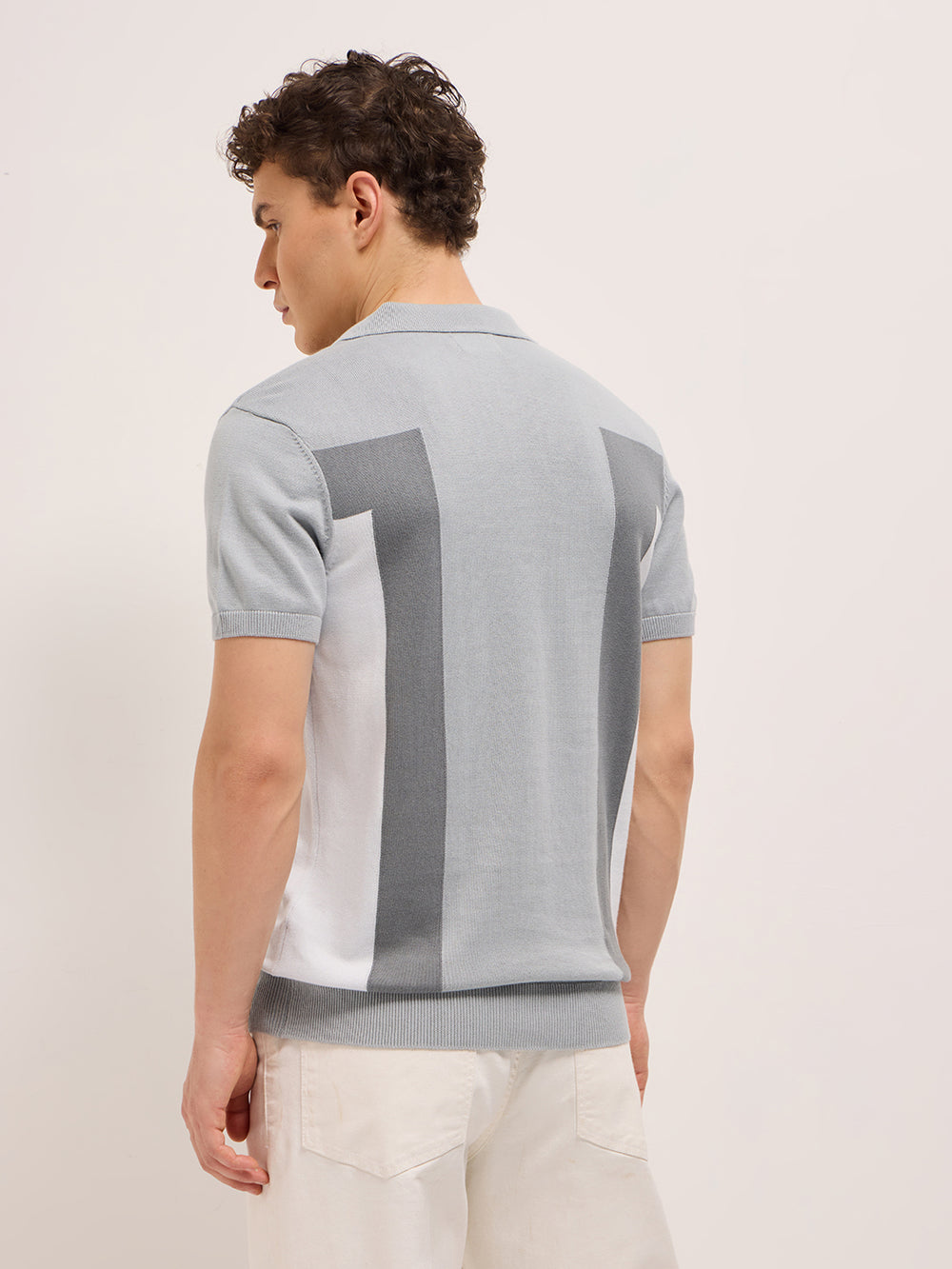 Grey Regular Fit Color-block Panel Polo with Metal Logo Detail