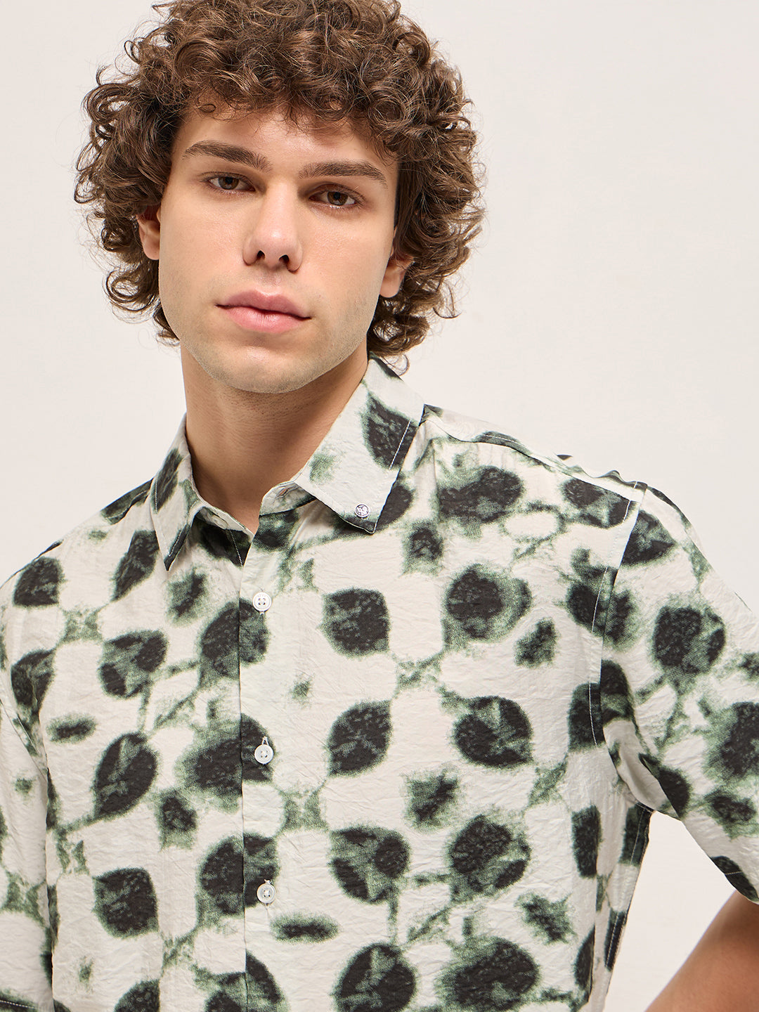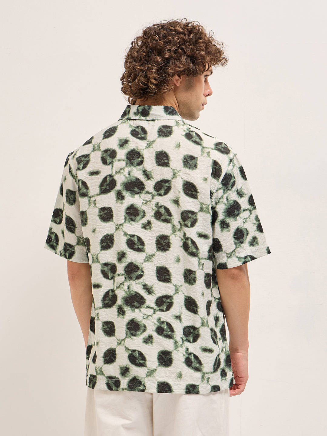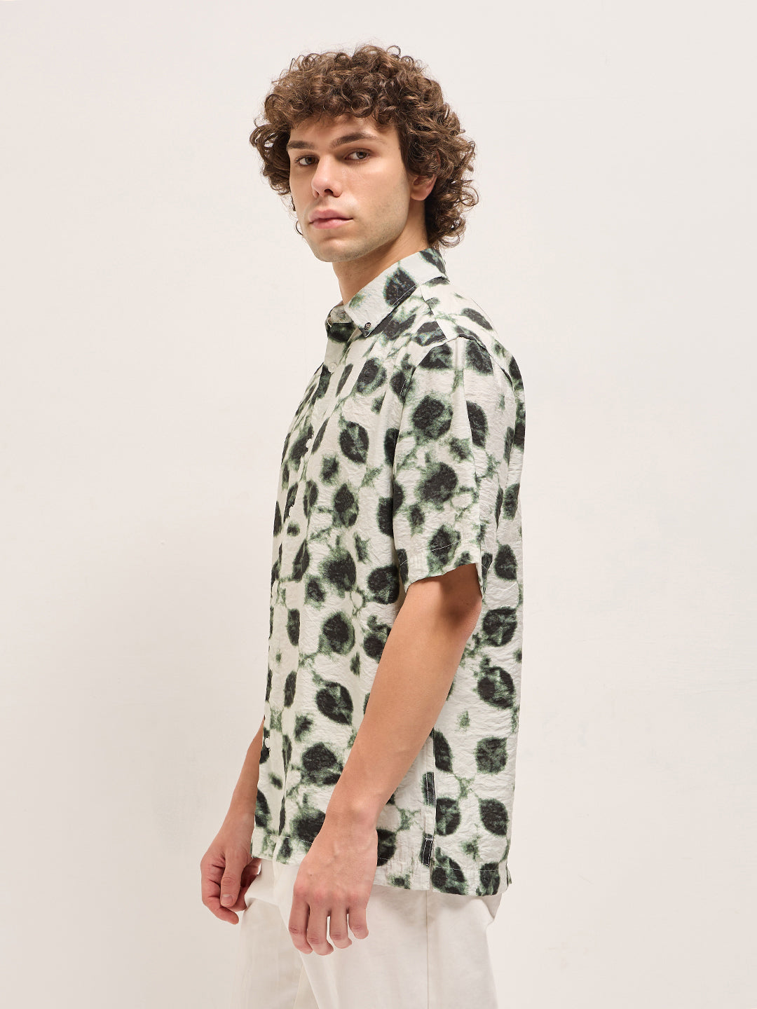 Cream with Dark Green Foliage Print Relax Fit Casual Shirt