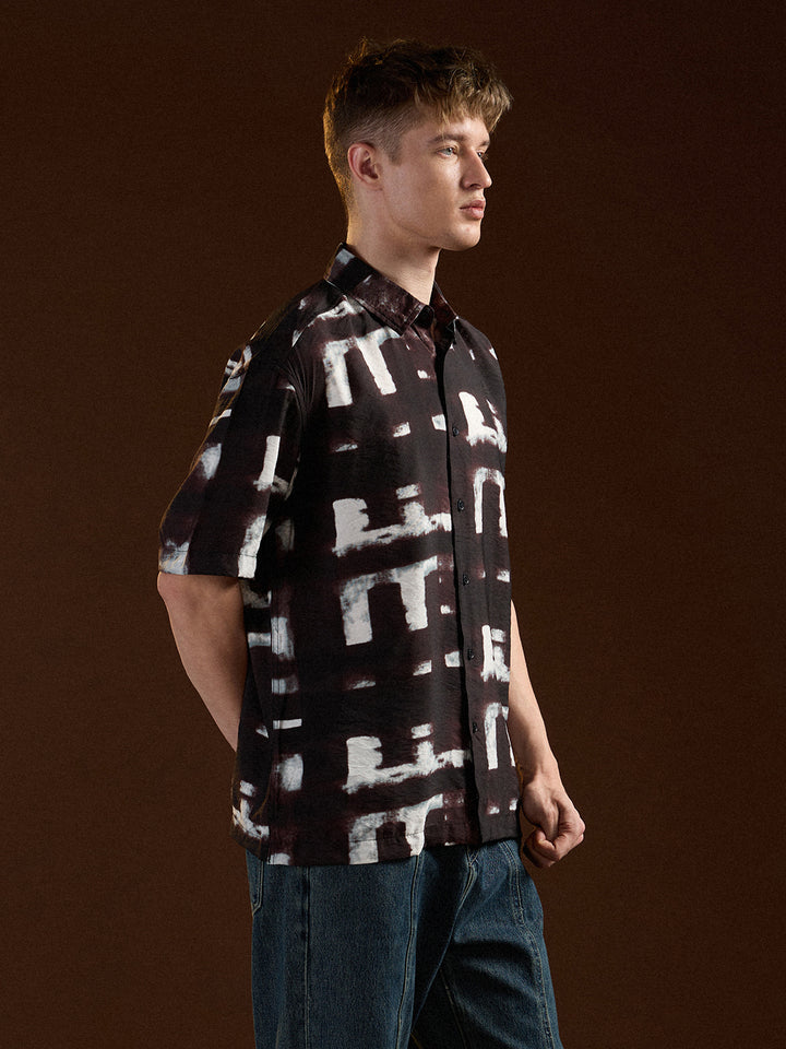 Black Digital Print Relax Fit Casual Shirt