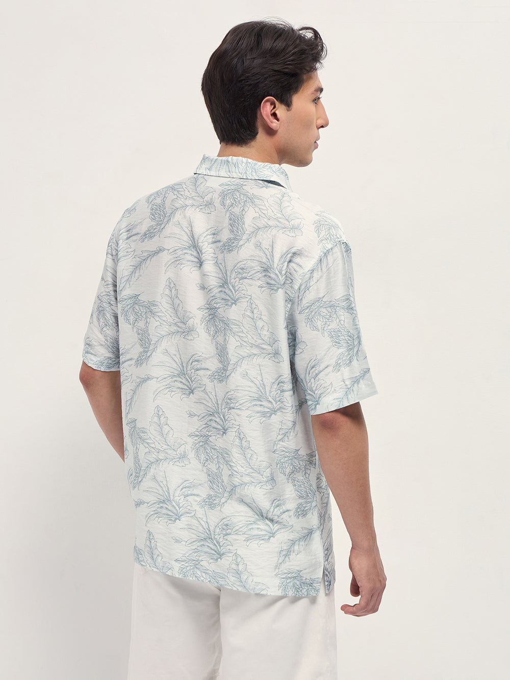 Grey and White Leafy Botanical Print Relaxed Fit Casual Shirt