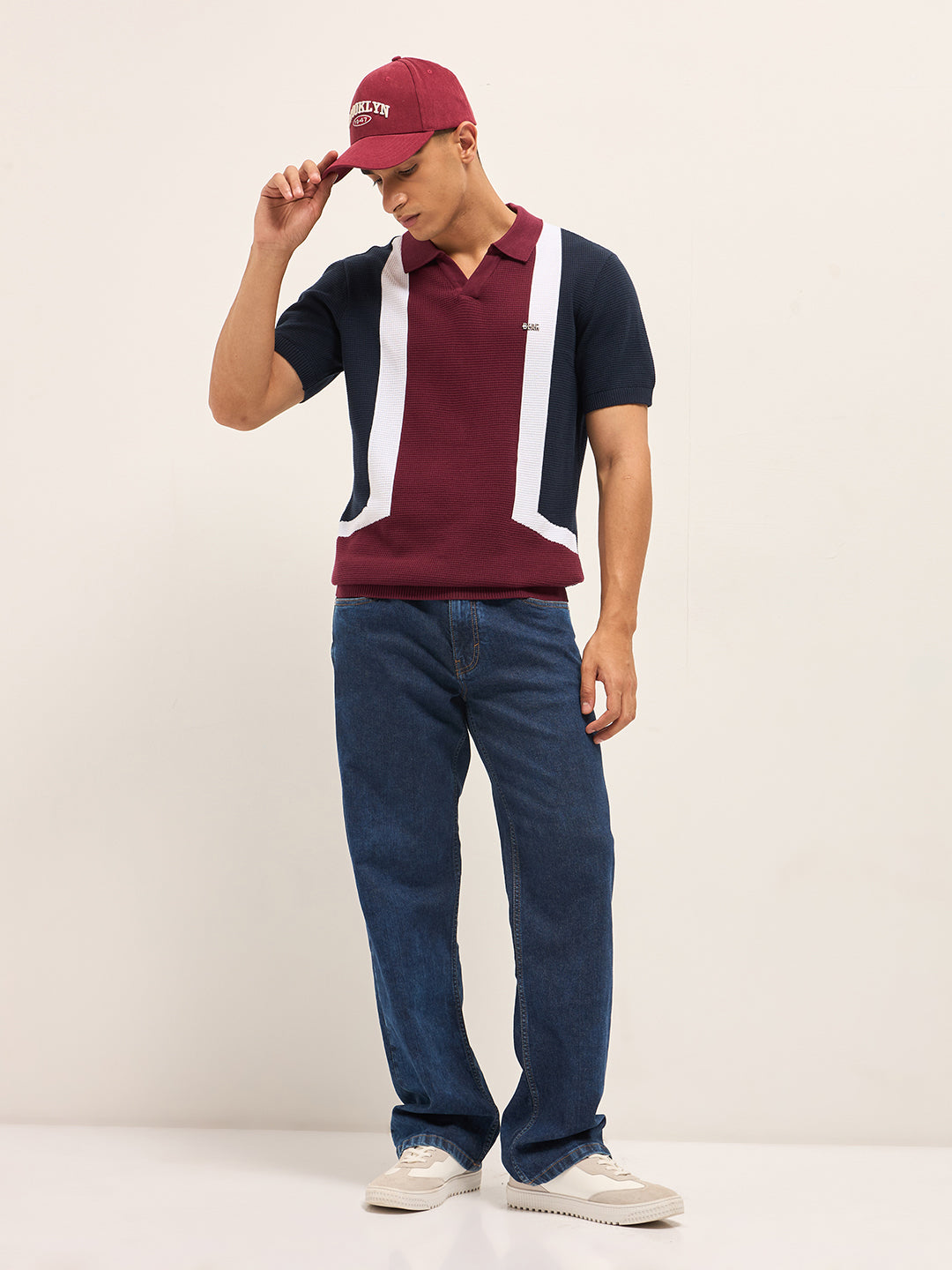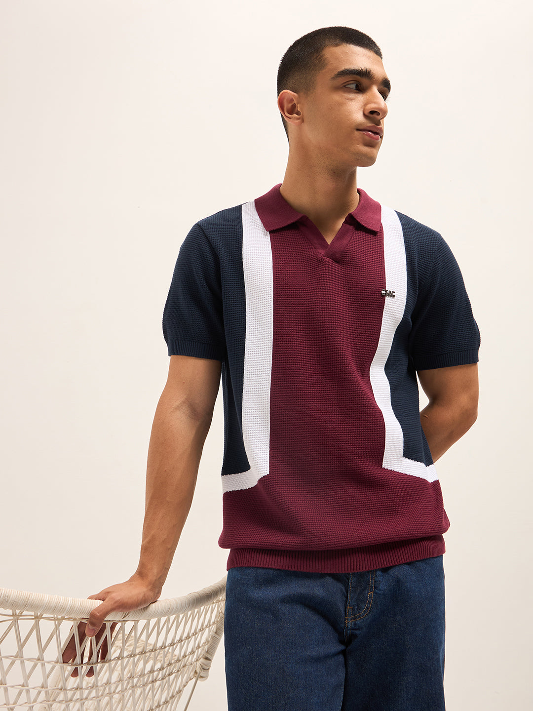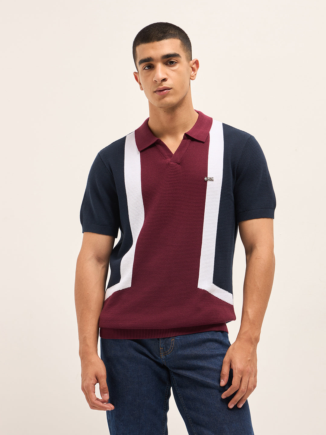 Shop Multi-Color Colorblock Polo T-Shirt with Regular Fit & Metal Logo Detail Online.