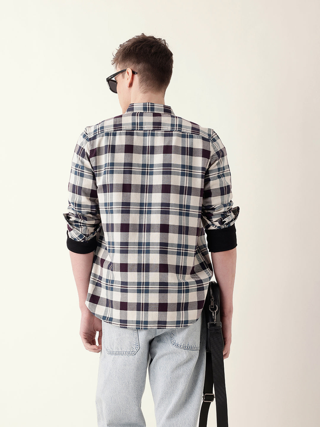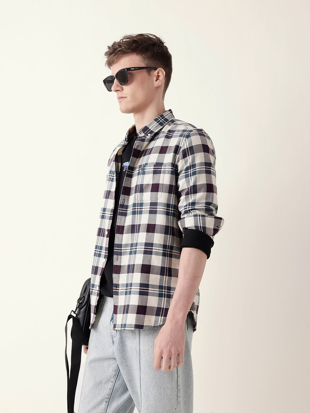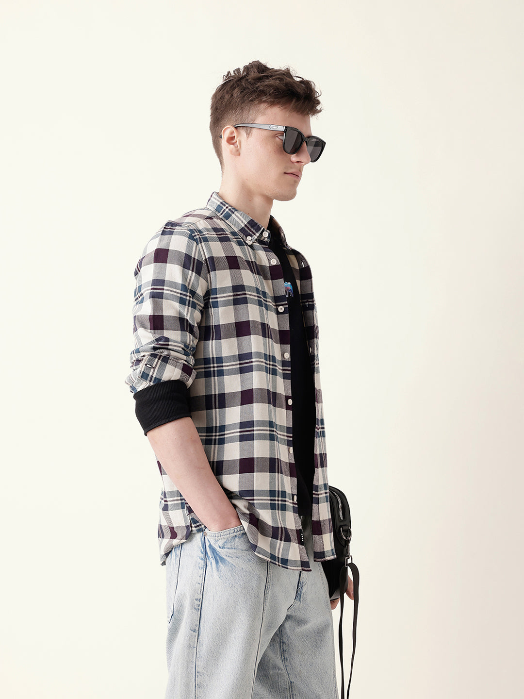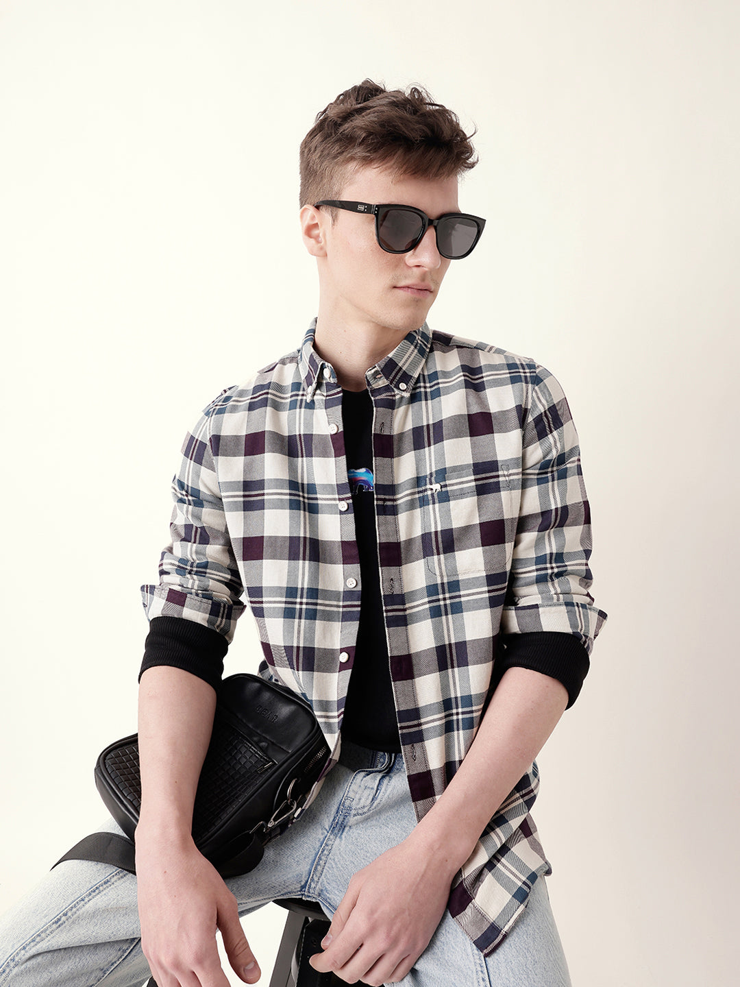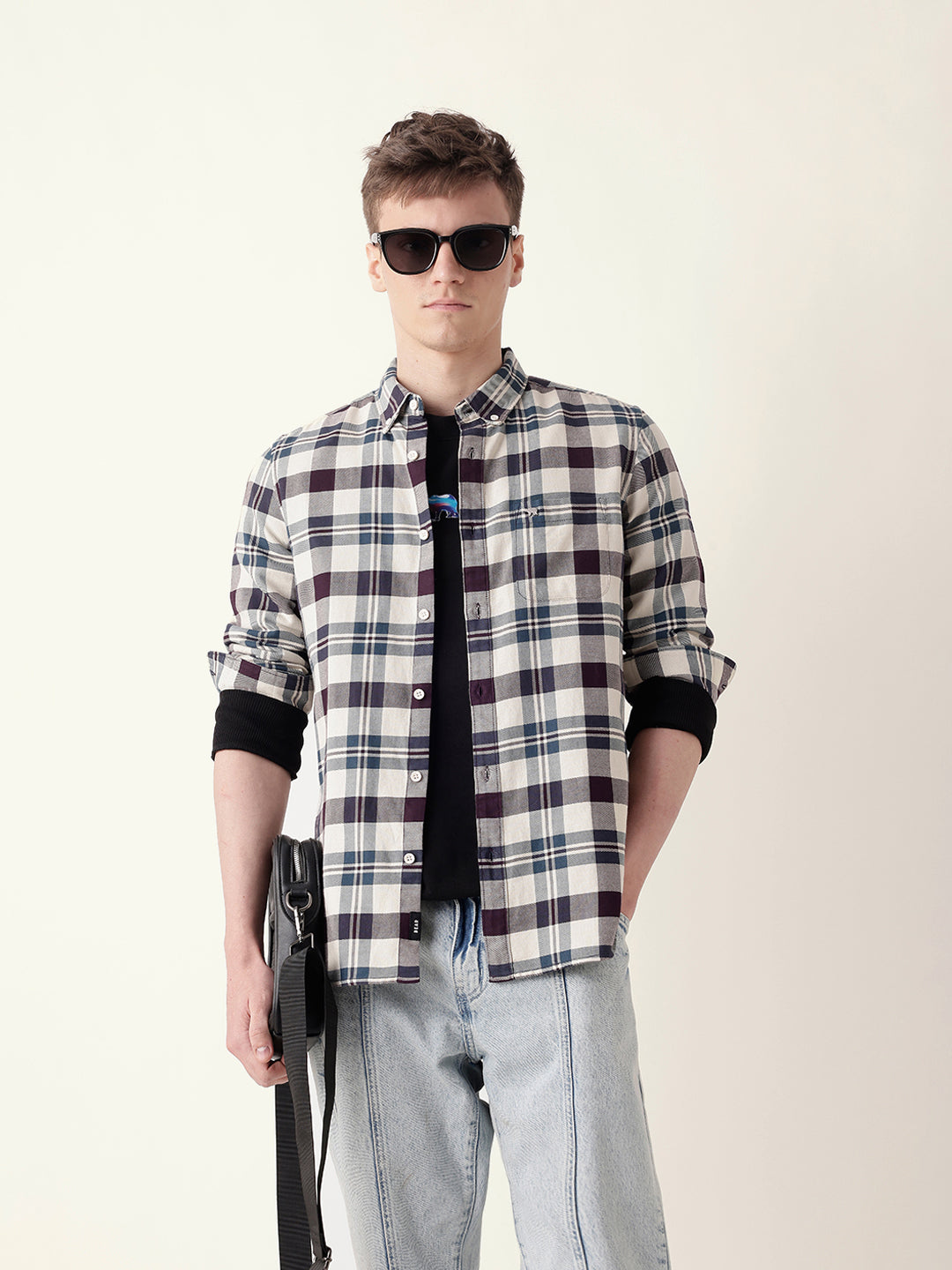 Shop Multicolor Woven Tartan Checked Slim Fit Casual Shirt Online.