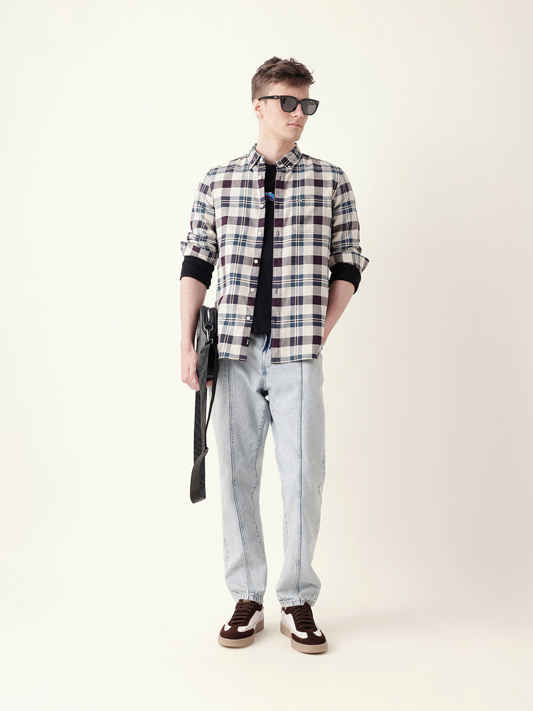 Multicolor Woven Tartan Checked Slim Fit Casual Shirt