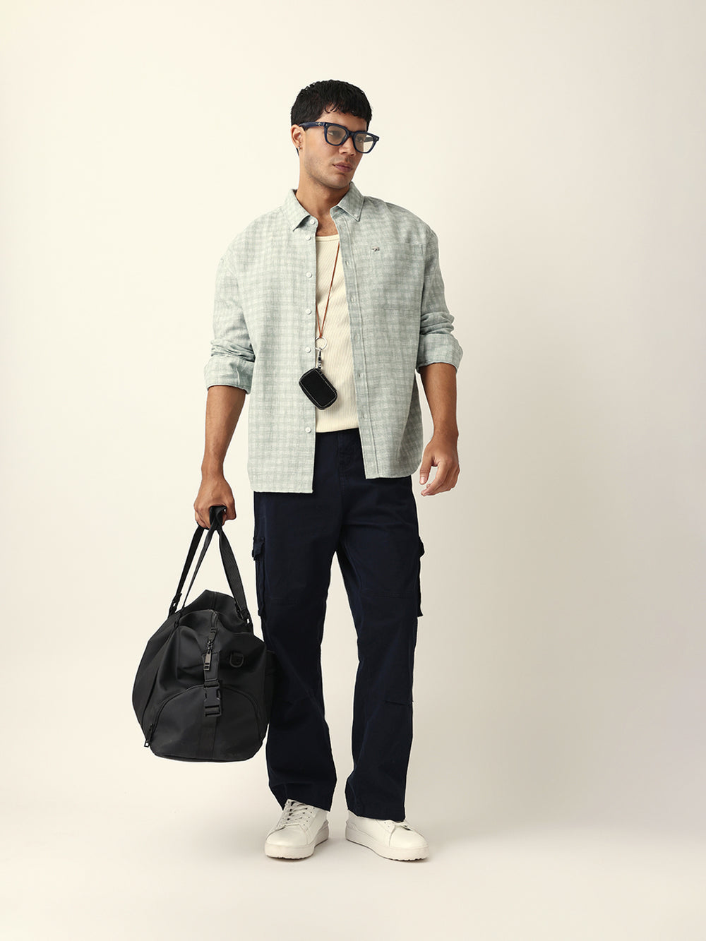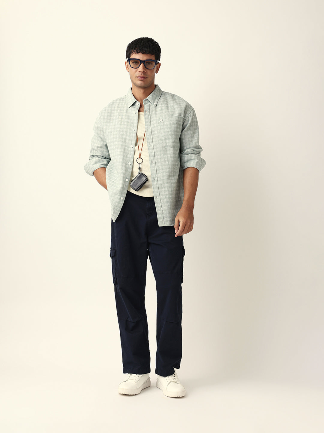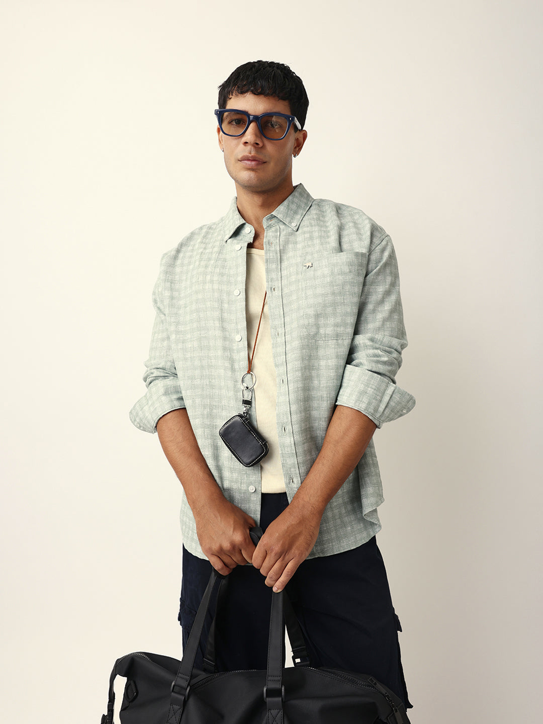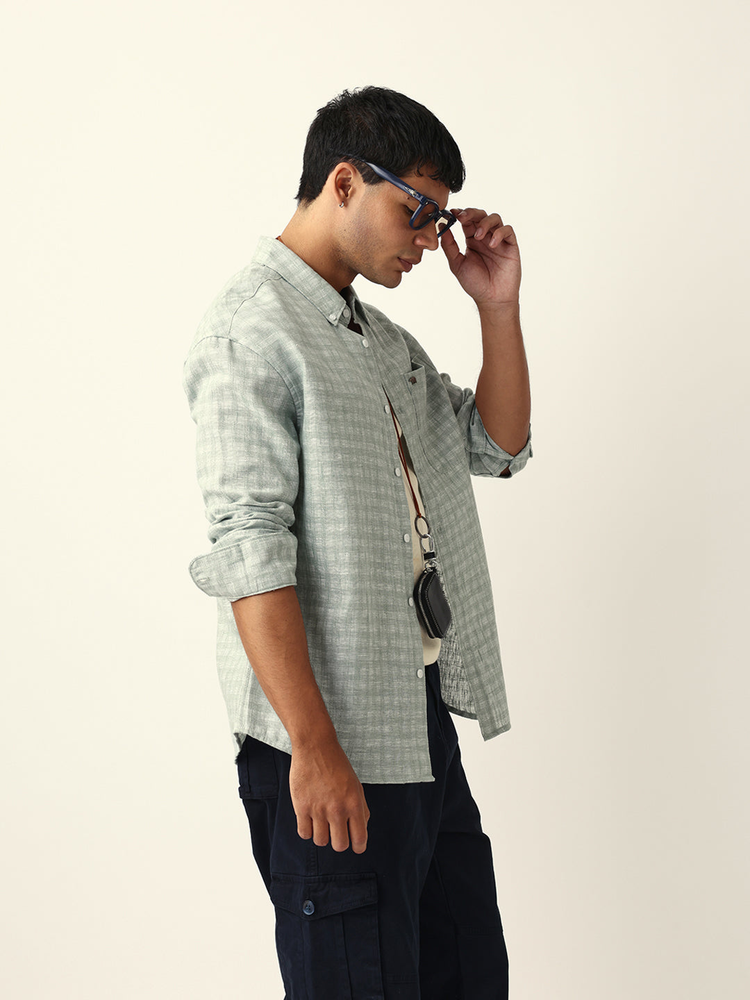 Green Woven Micro Check Textured Relax Fit Overshirt