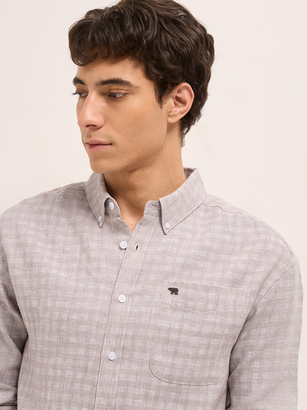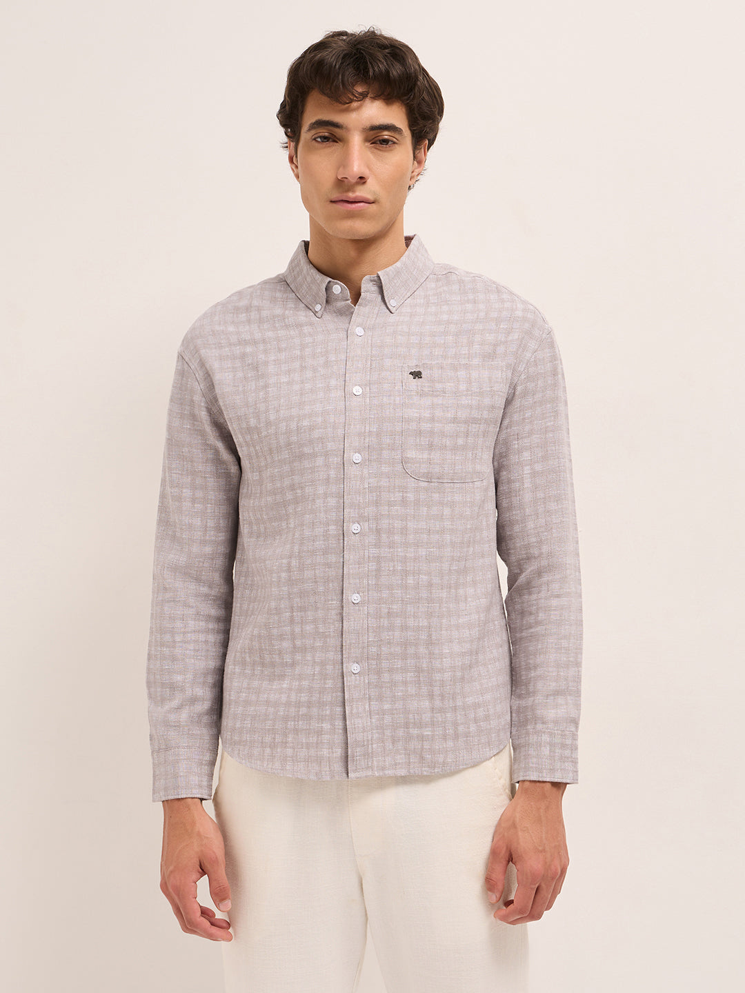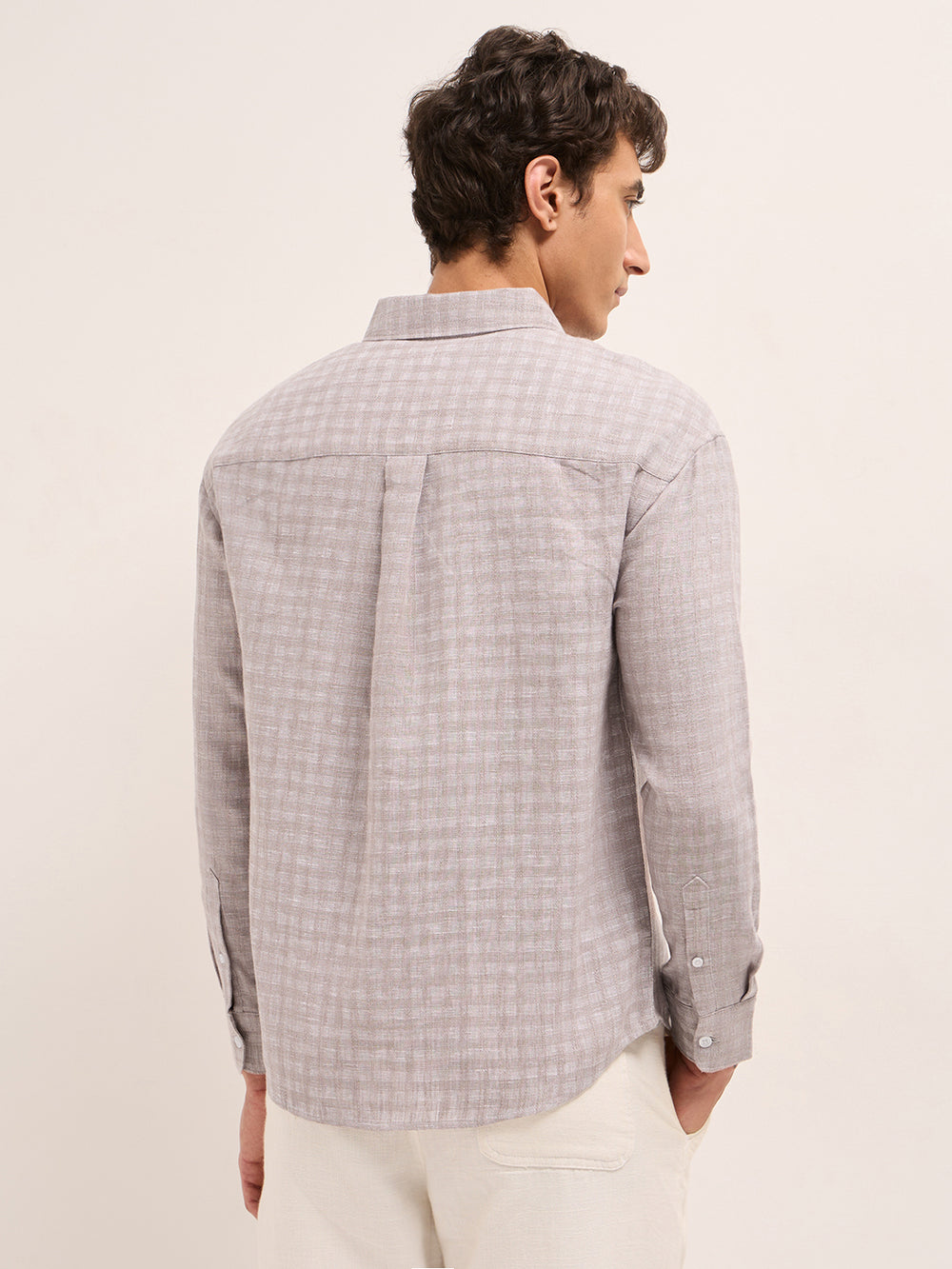 Shop Light Brown Woven Checks Relaxed Fit Casual Shirt Online.