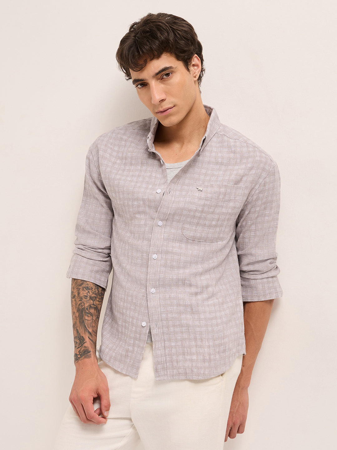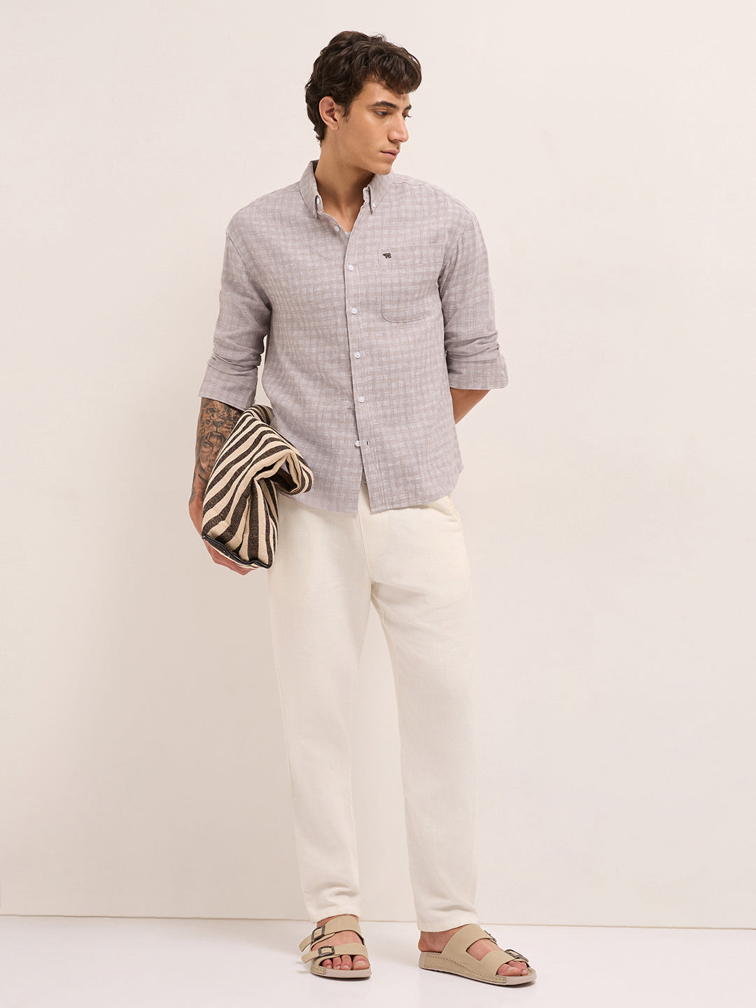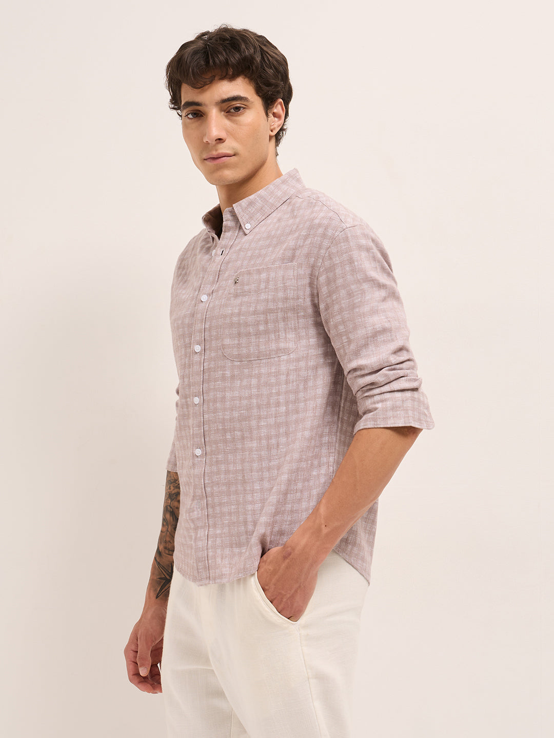 Shop Light Brown Woven Checks Relaxed Fit Casual Shirt Online.