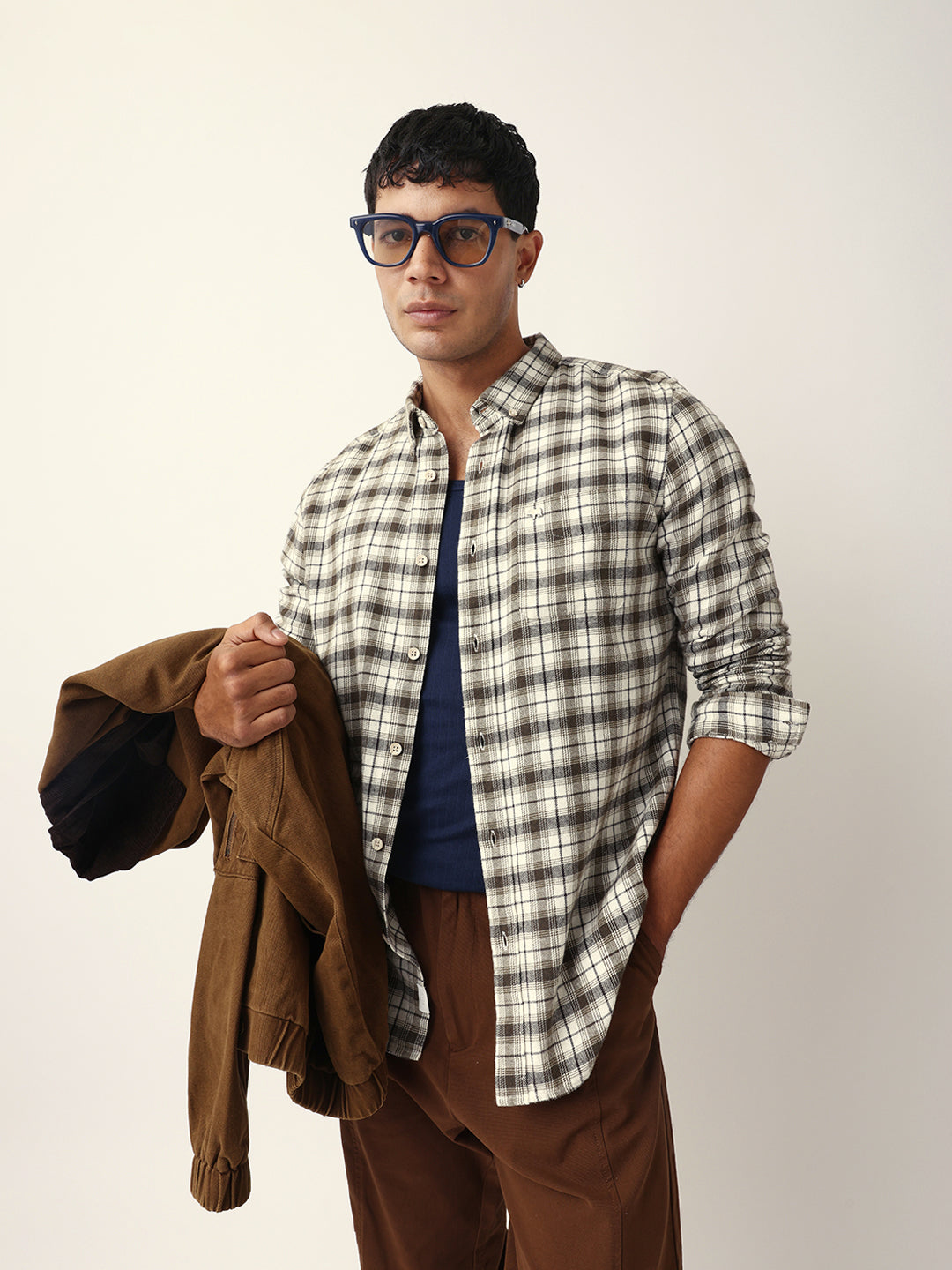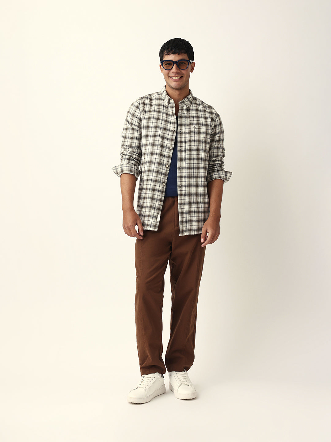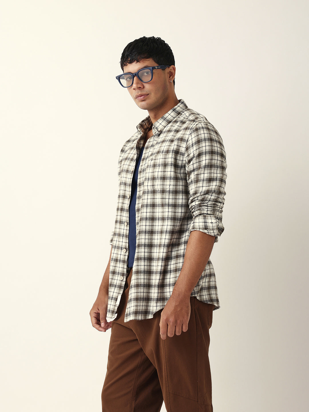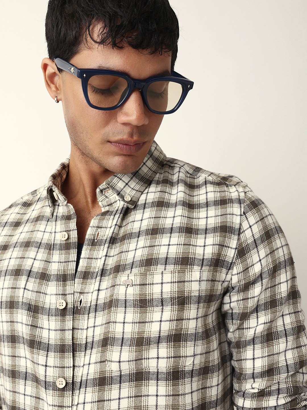 Olive & Cream Flannel Check Slim Fit Casual Shirt
