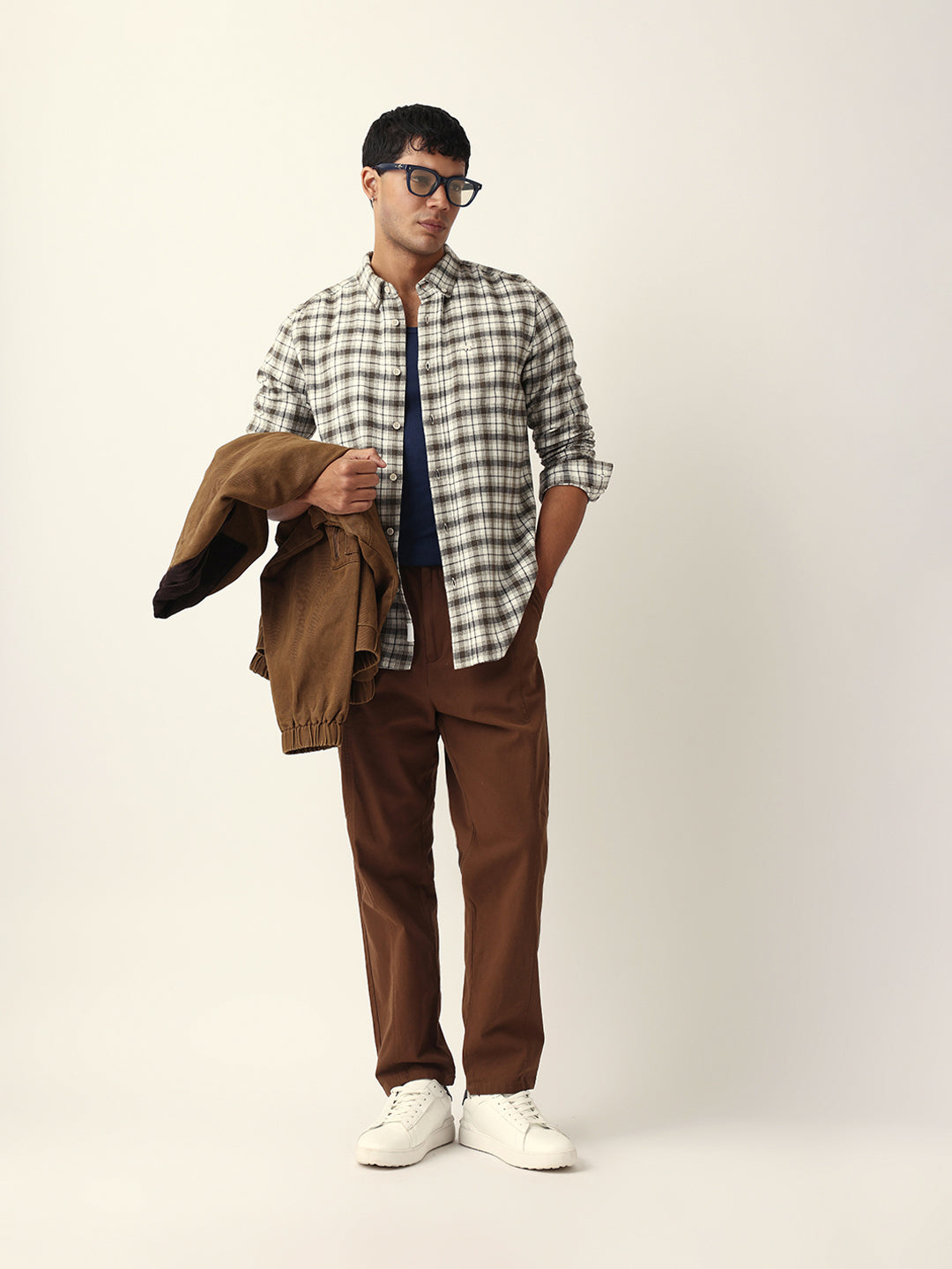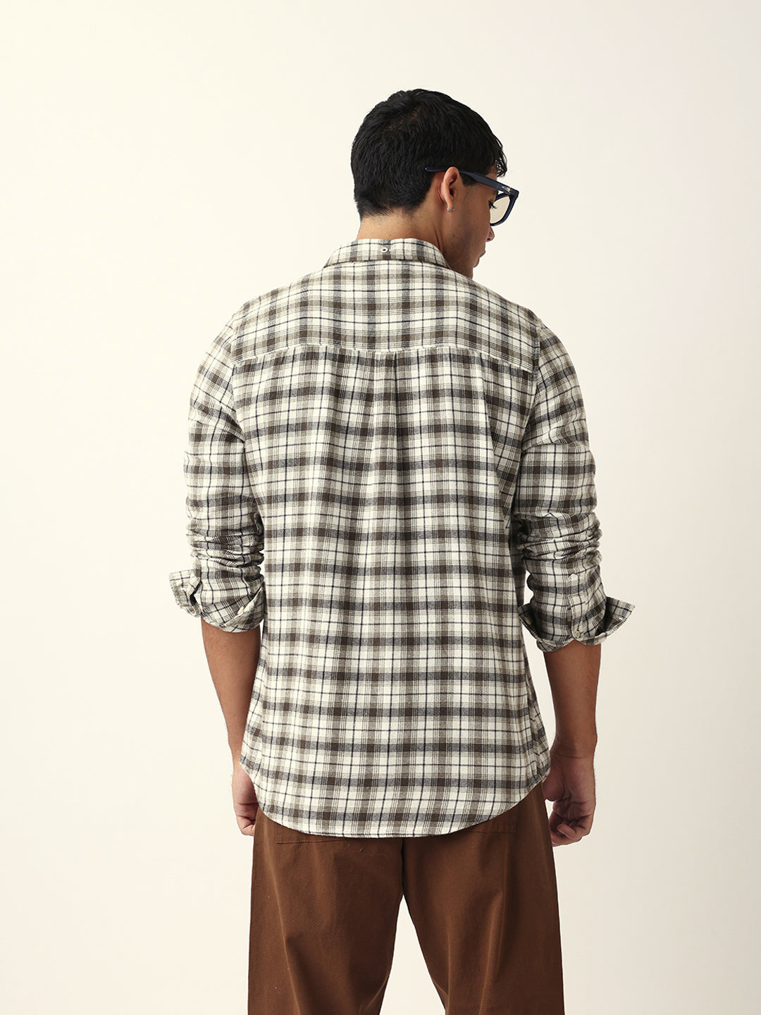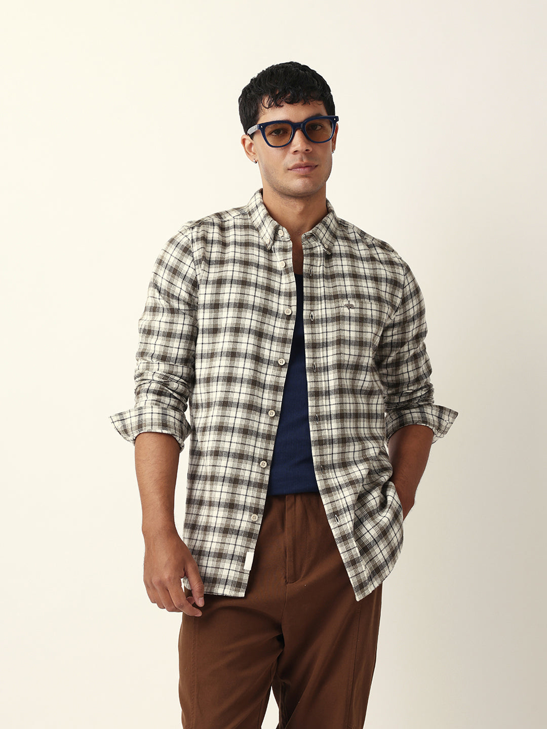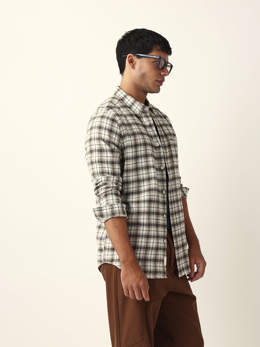 Olive & Cream Flannel Check Slim Fit Casual Shirt