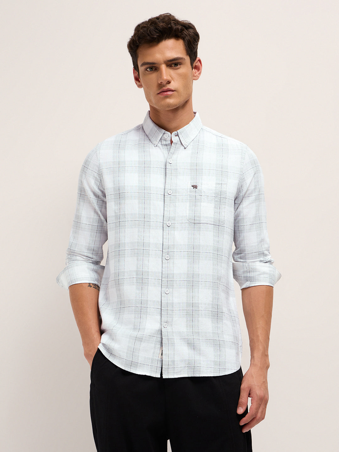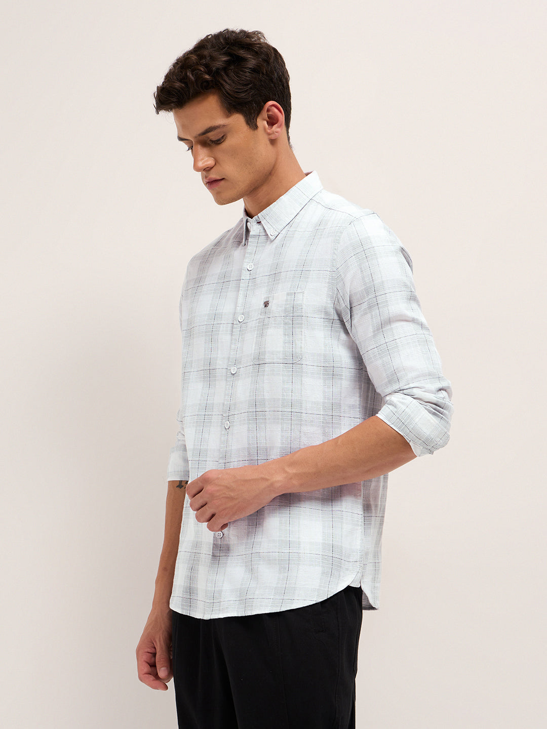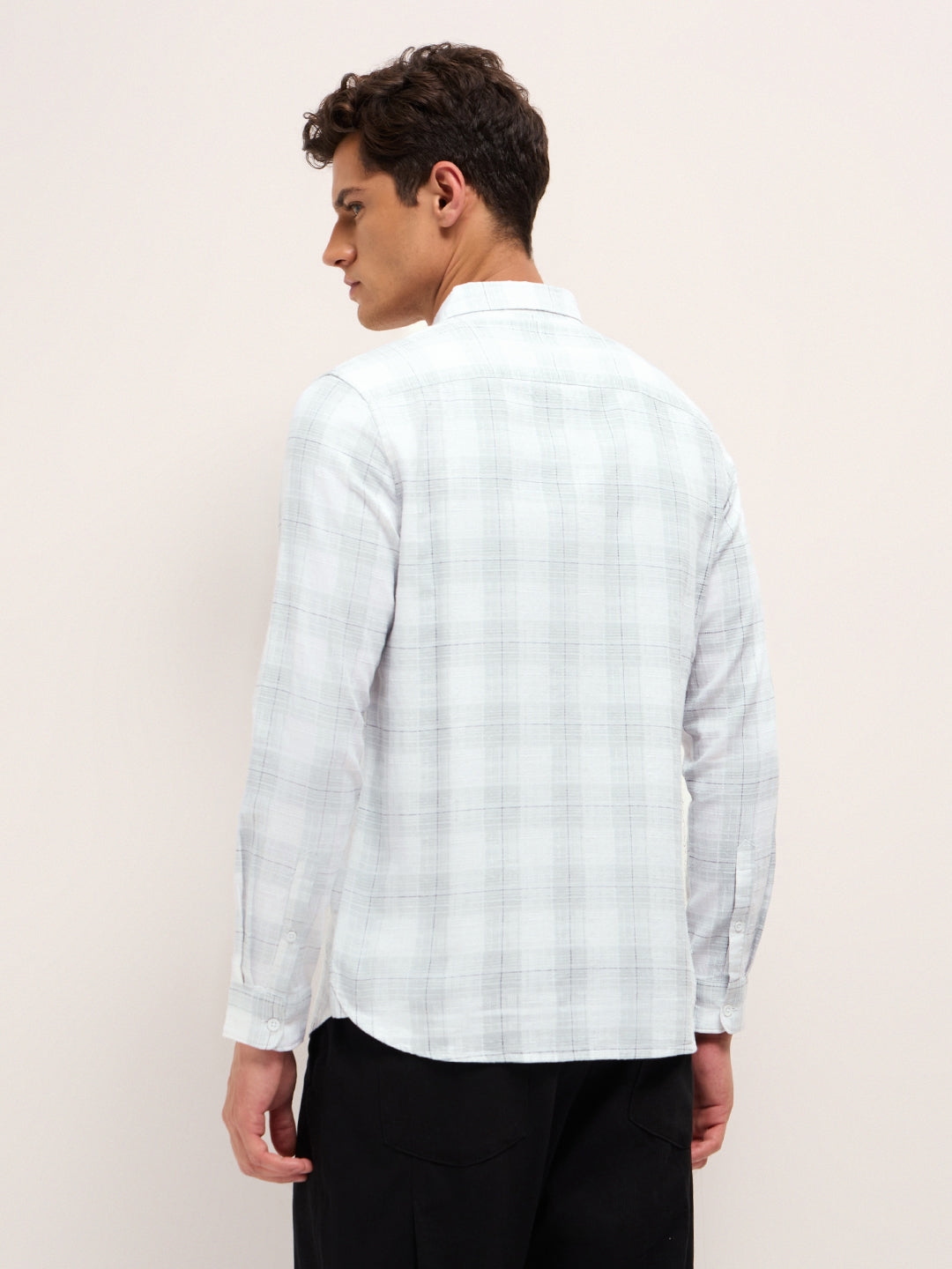 Shop White & Grey Woven Check Slim Fit Casual Shirt Online.