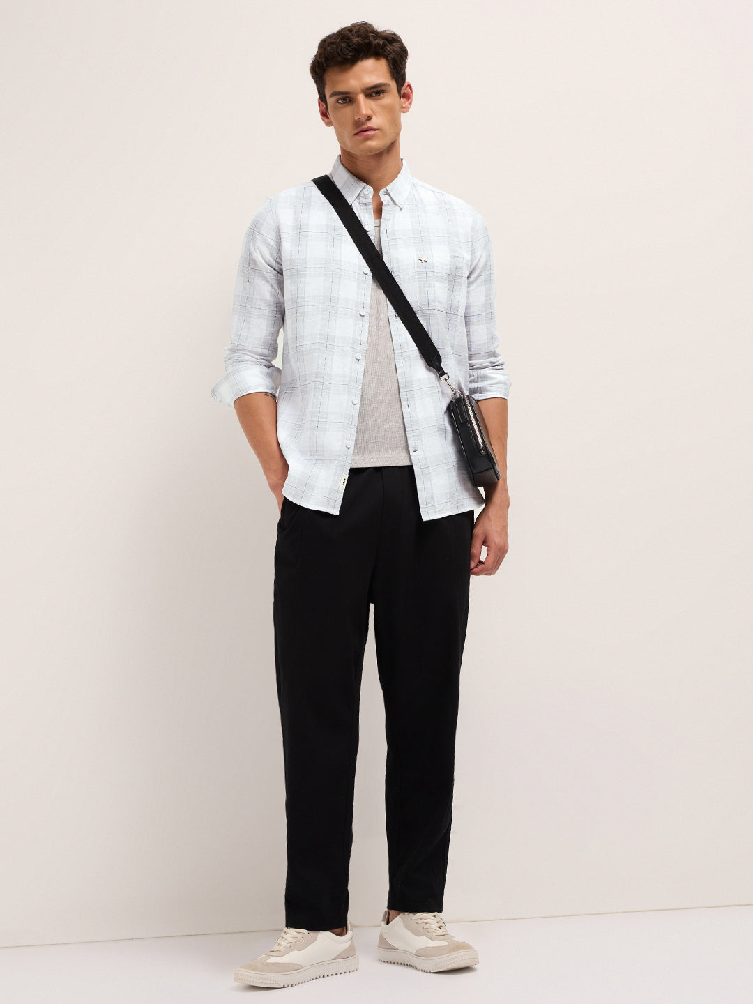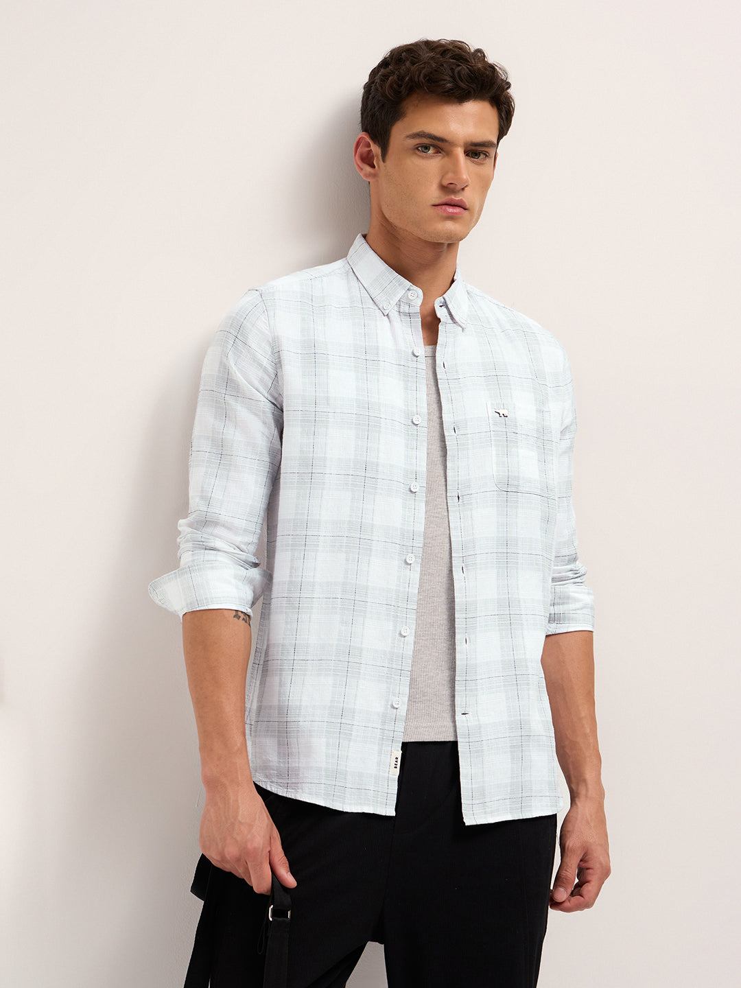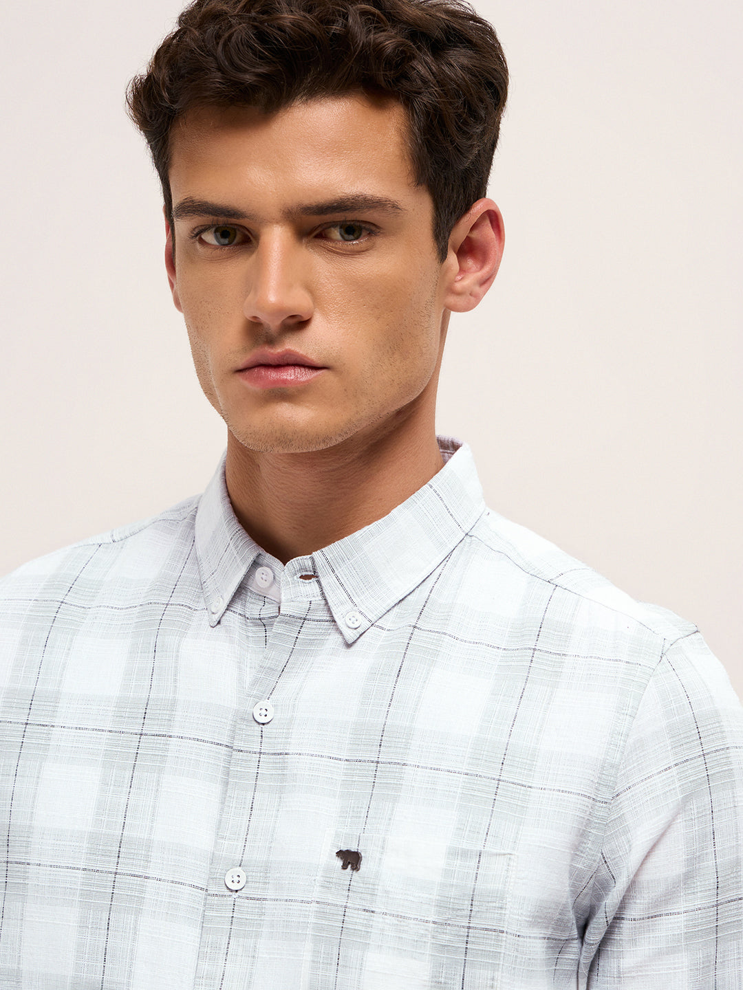 Shop White & Grey Woven Check Slim Fit Casual Shirt Online.