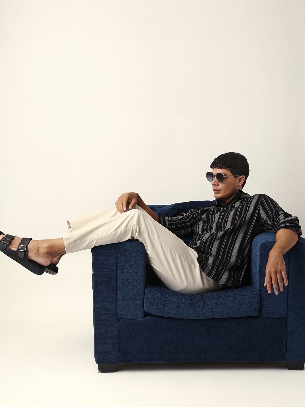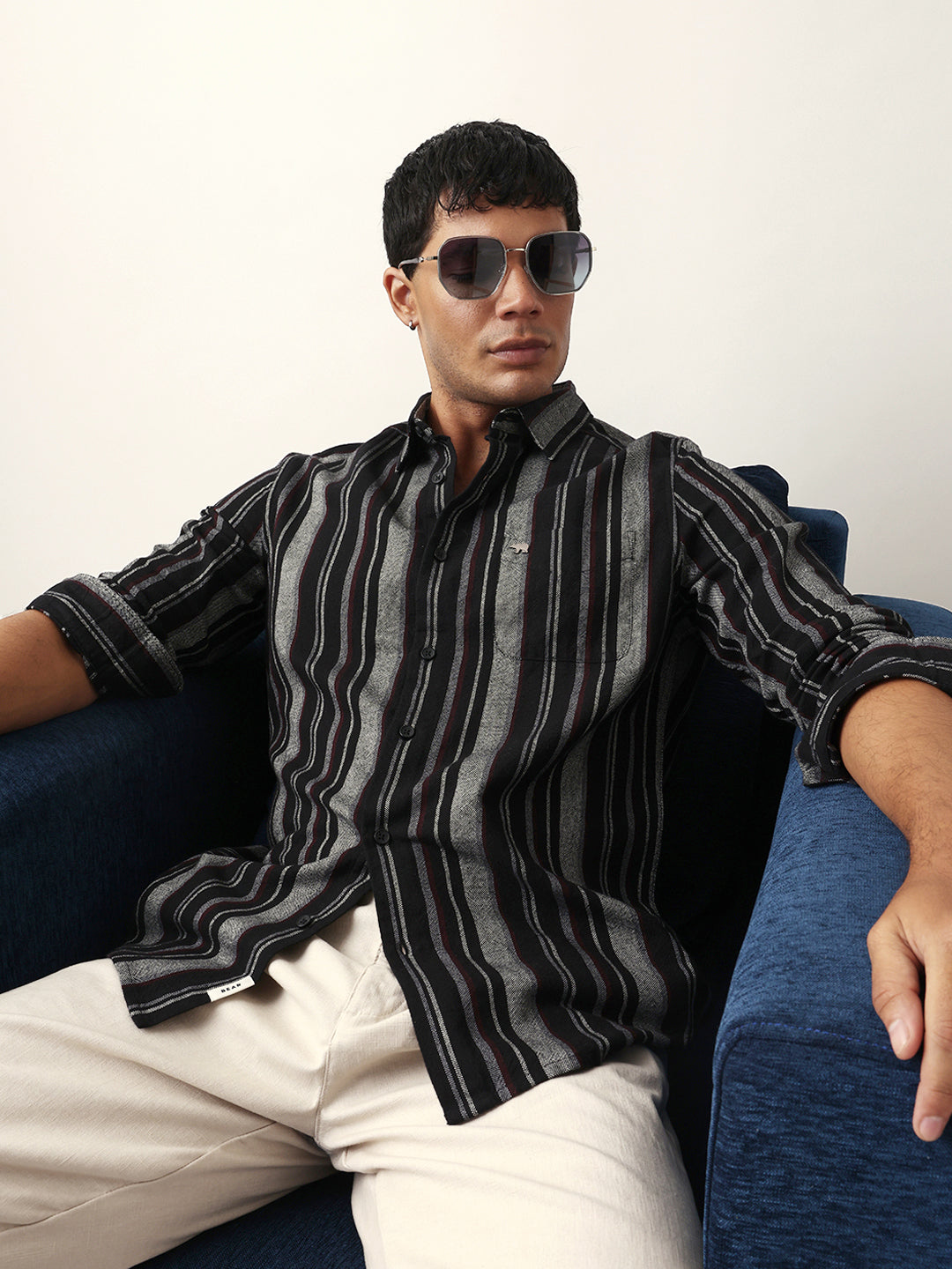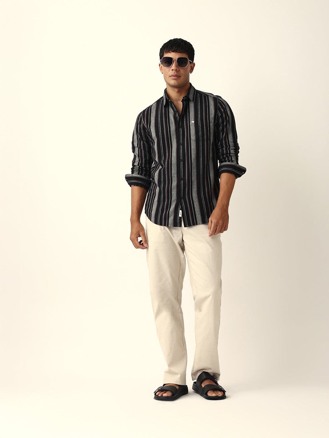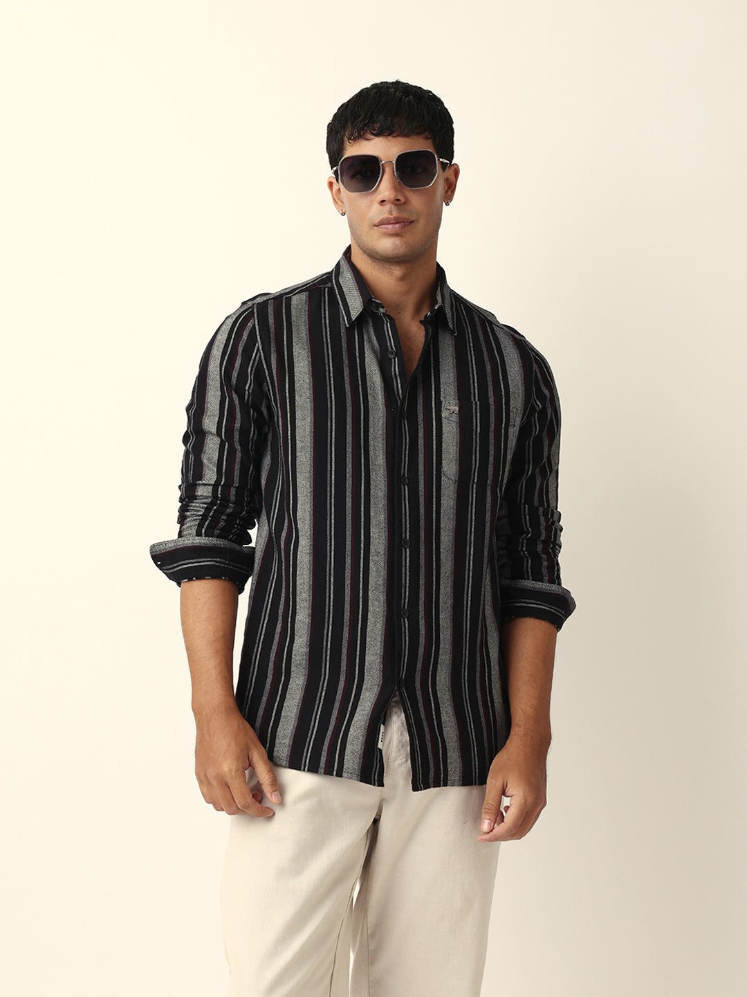 Shop Black Vertical Woven Stripe Slim Fit Casual Shirt Online.