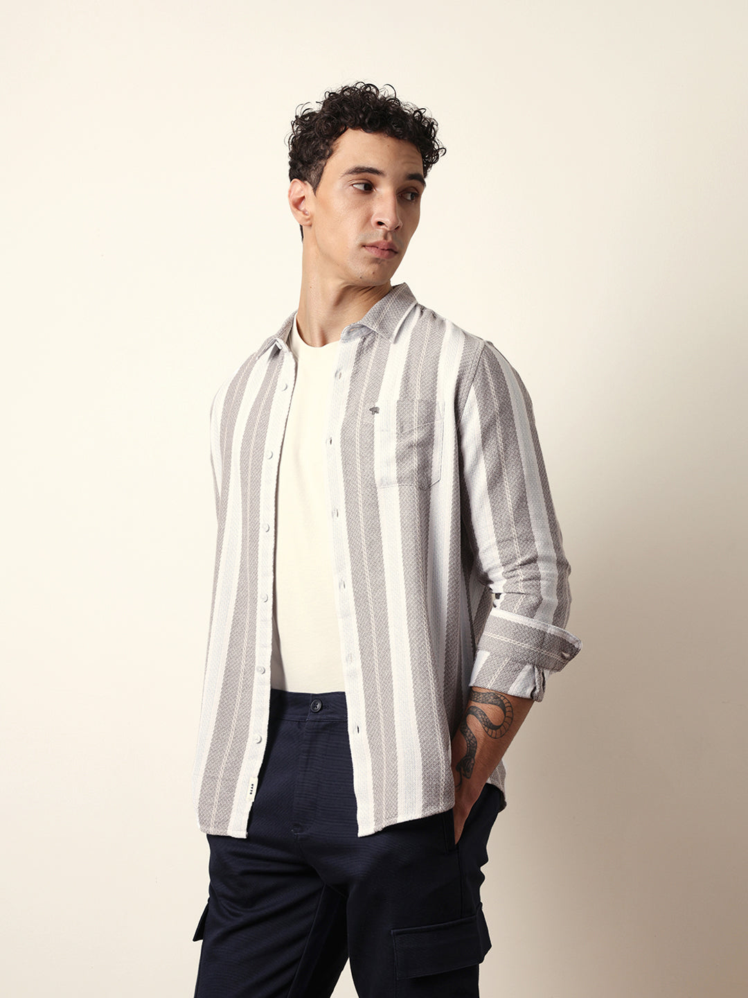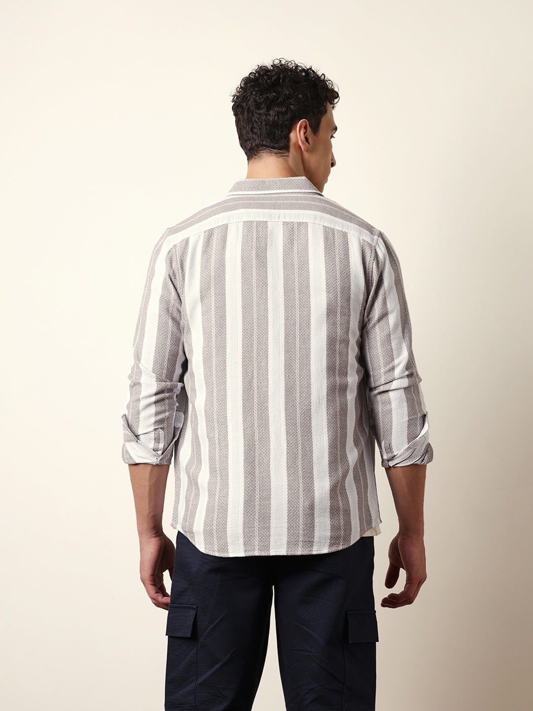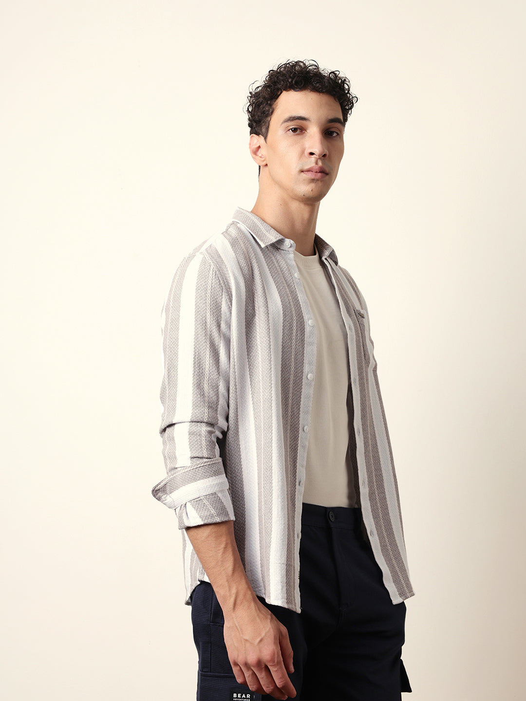 Multicolor Vertical Striped Slim Fit Casual Shirt with Woven-Effect Design