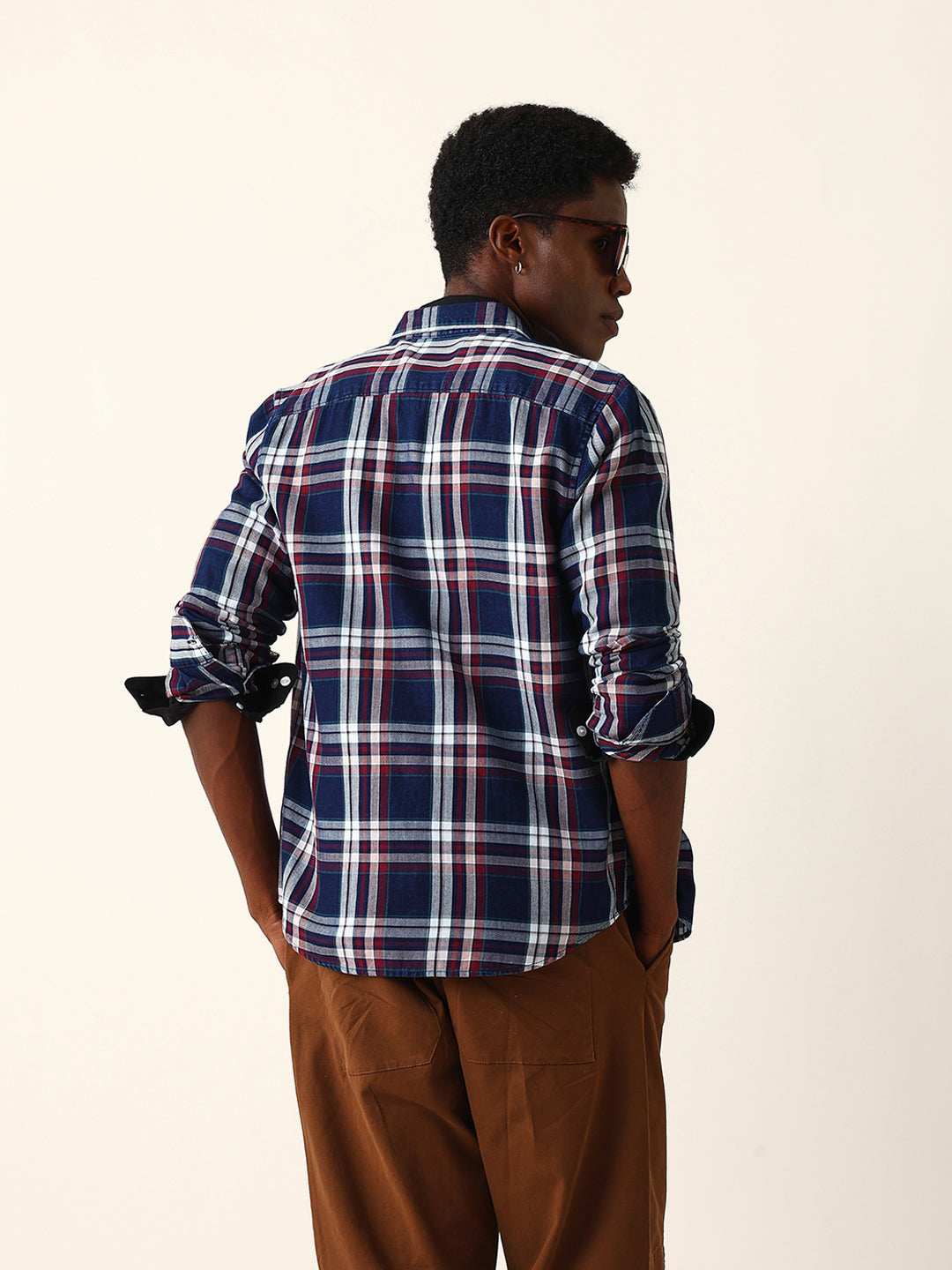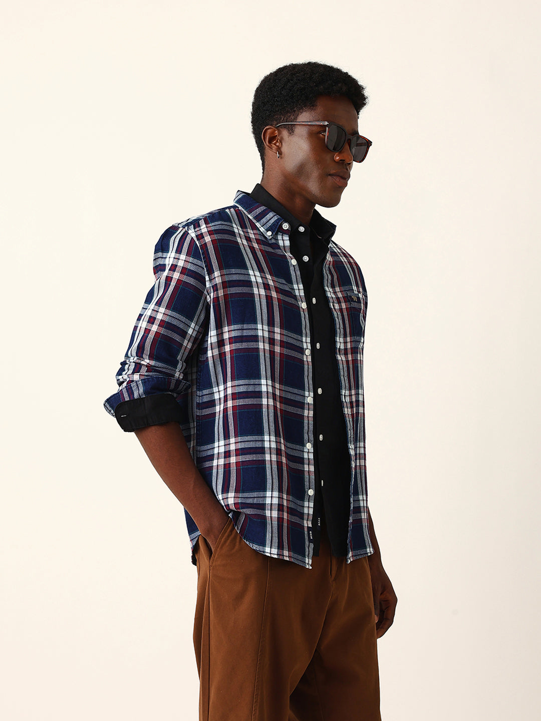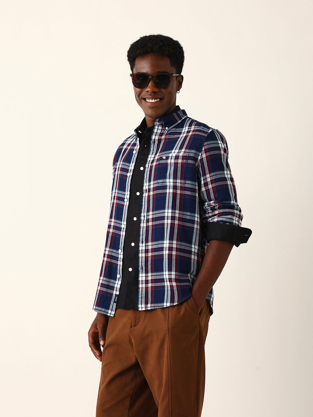 Shop Multicolor Woven Checked Slim Fit Casual Shirt with Button-Down Collar Online.