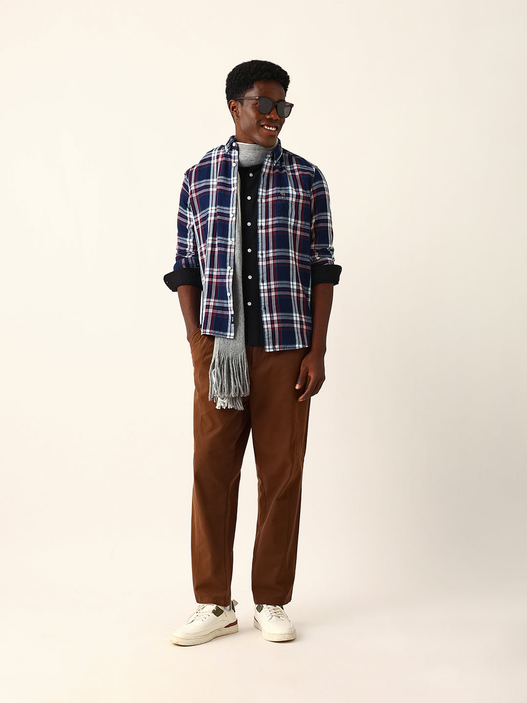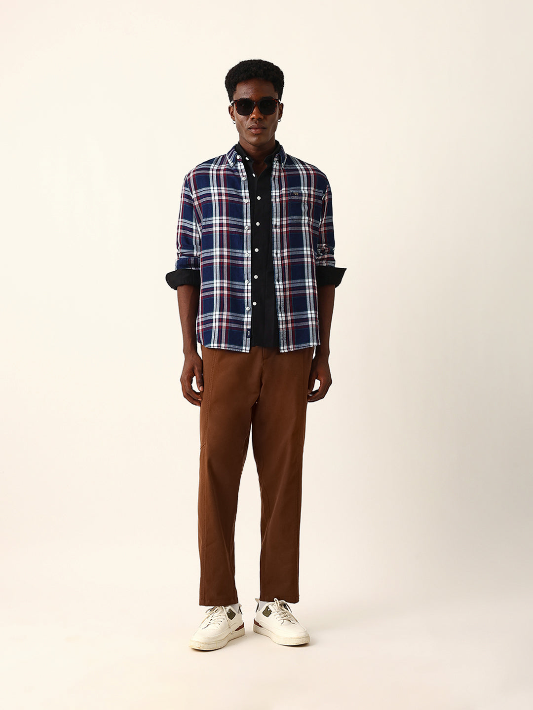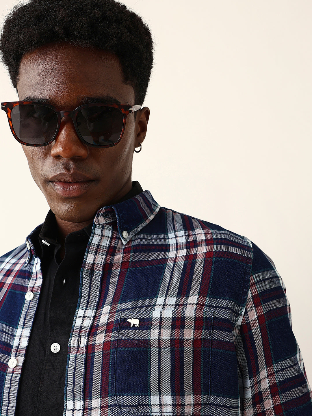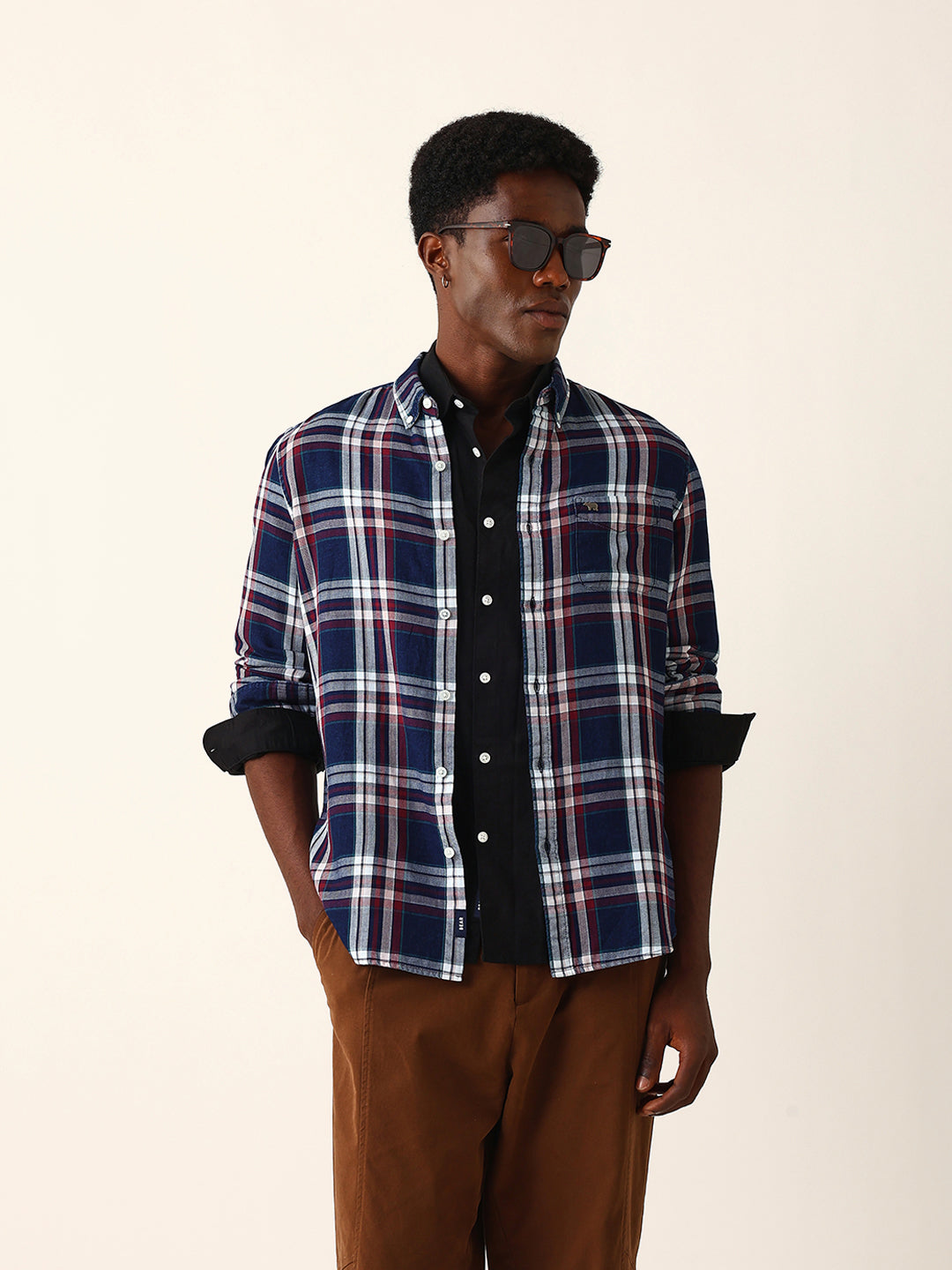 Shop Multicolor Woven Checked Slim Fit Casual Shirt with Button-Down Collar Online.