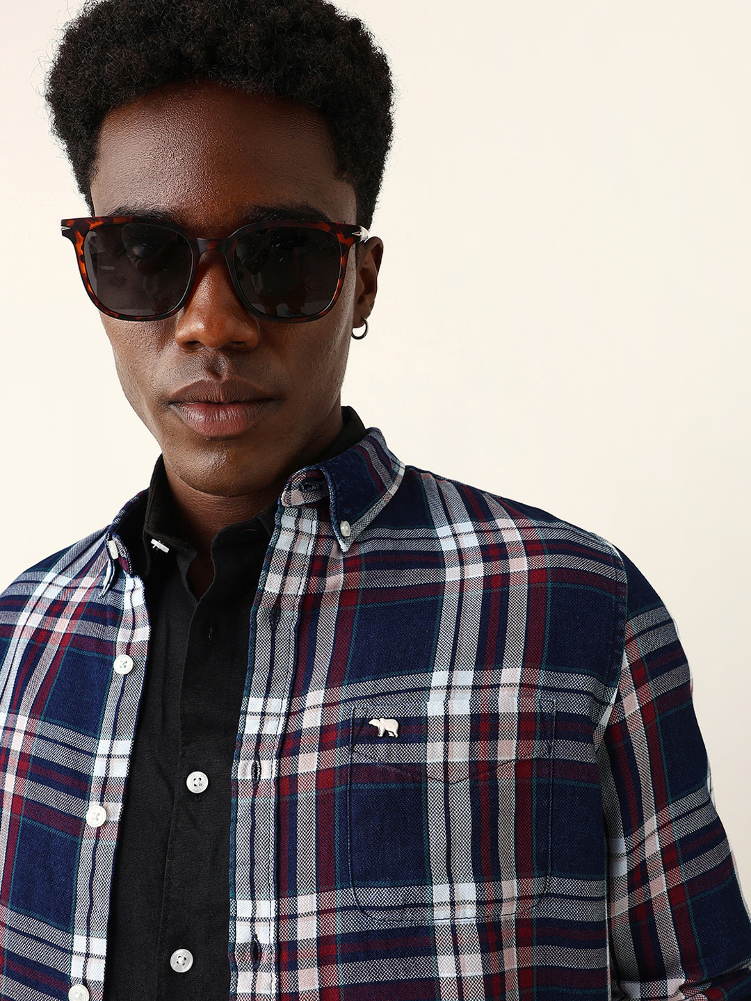 Multicolor Woven Checked Slim Fit Casual Shirt with Button-Down Collar