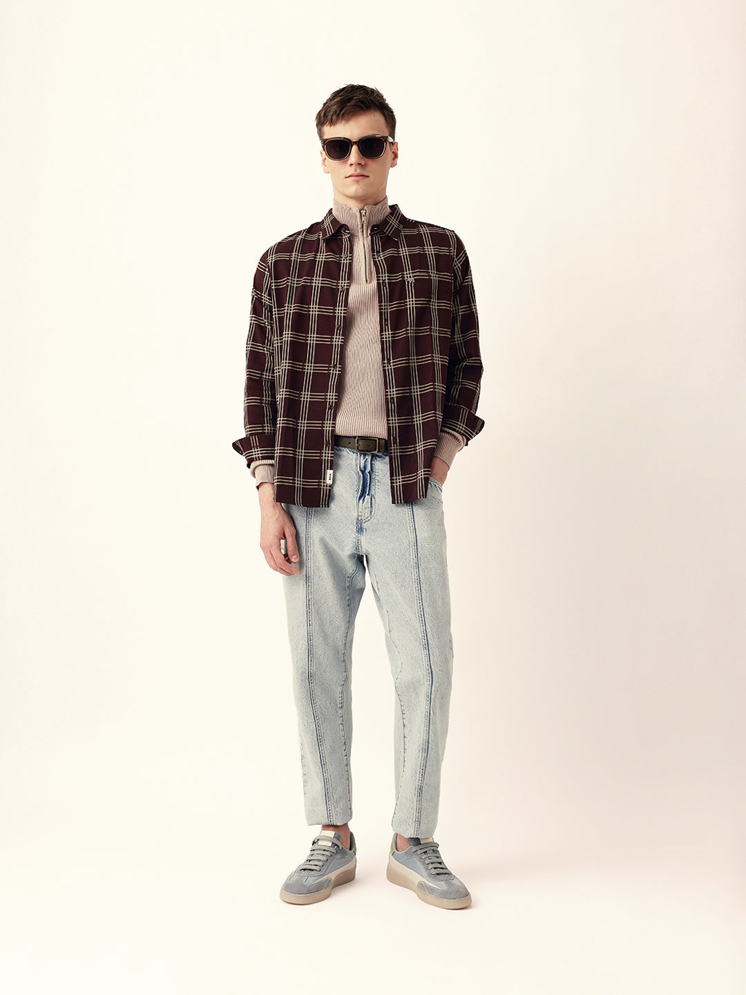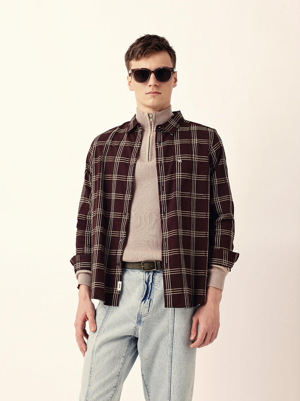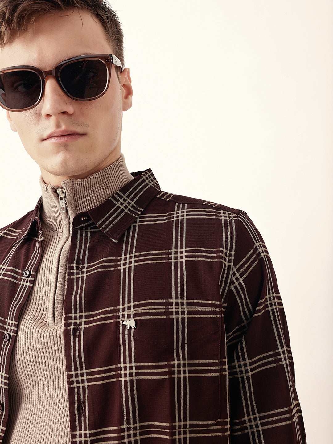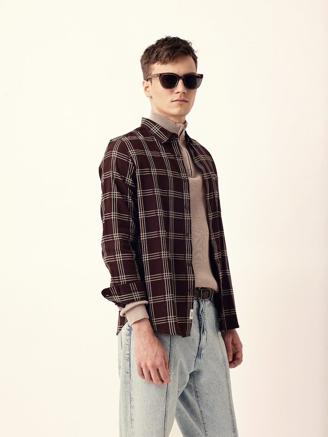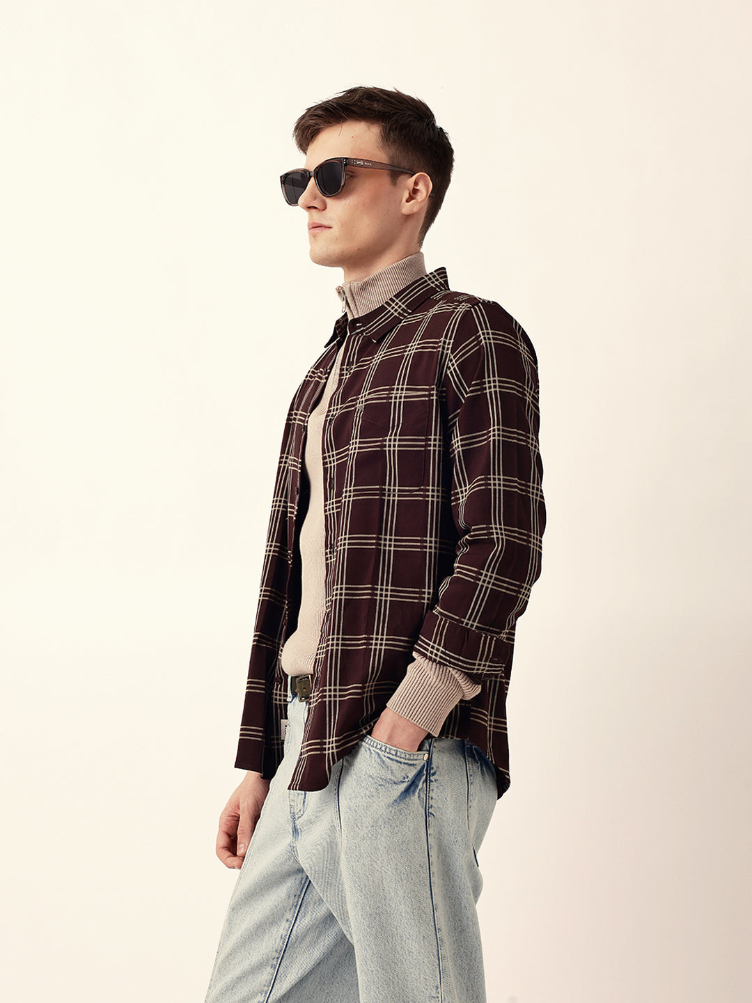 Shop Brown Regular Fit Woven Checked Casual Shirt Online.