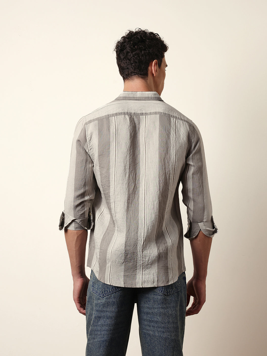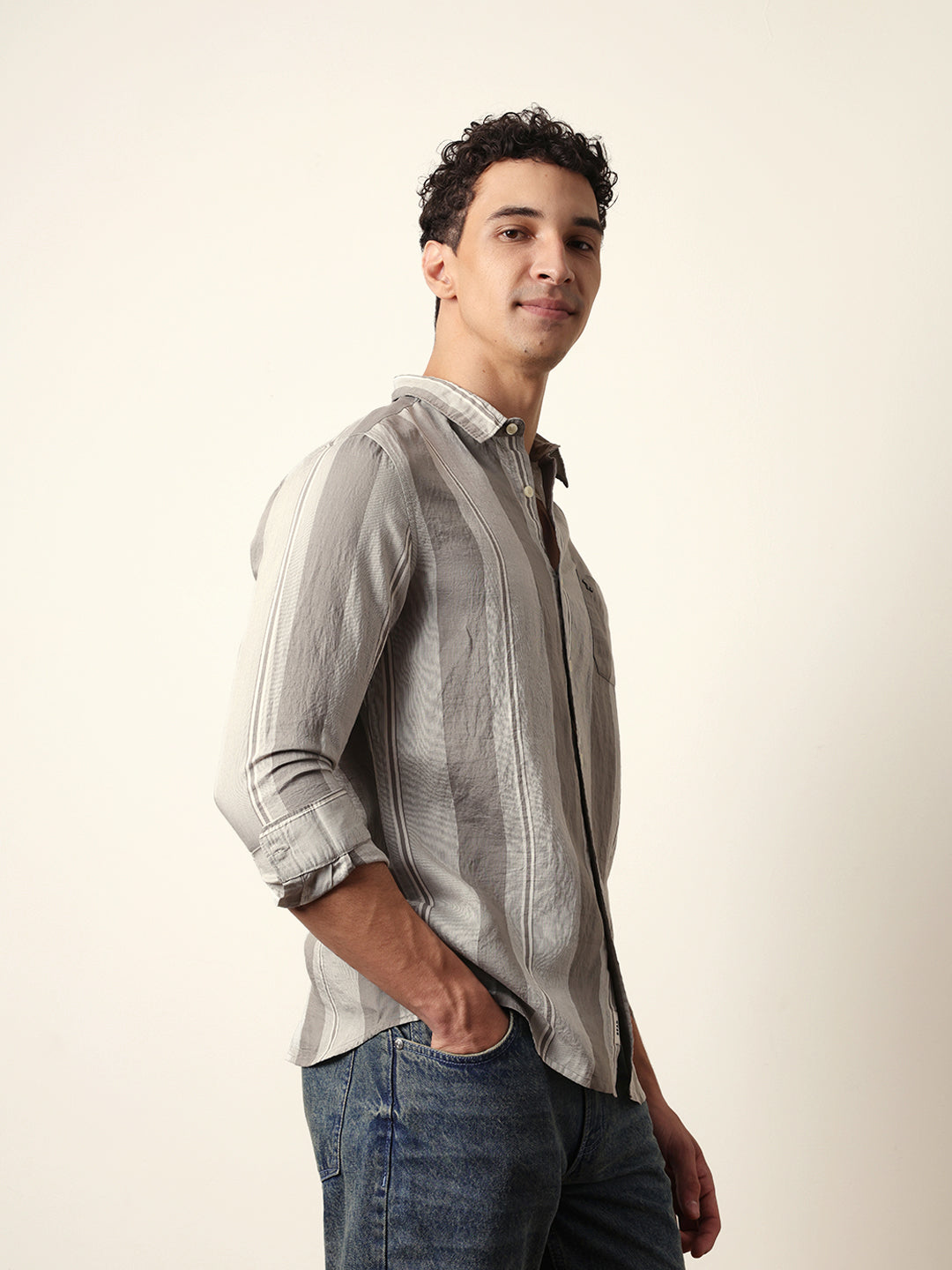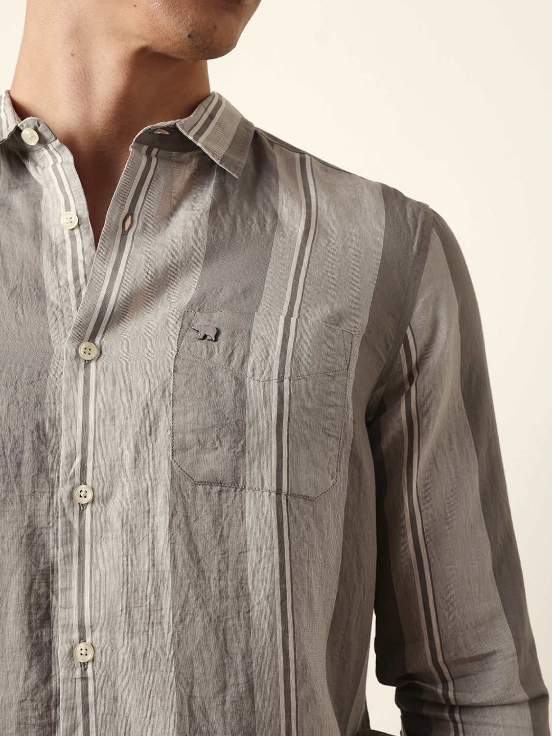 Shop Grey Vertical Woven Stripe Slim Fit Casual Shirt Online.