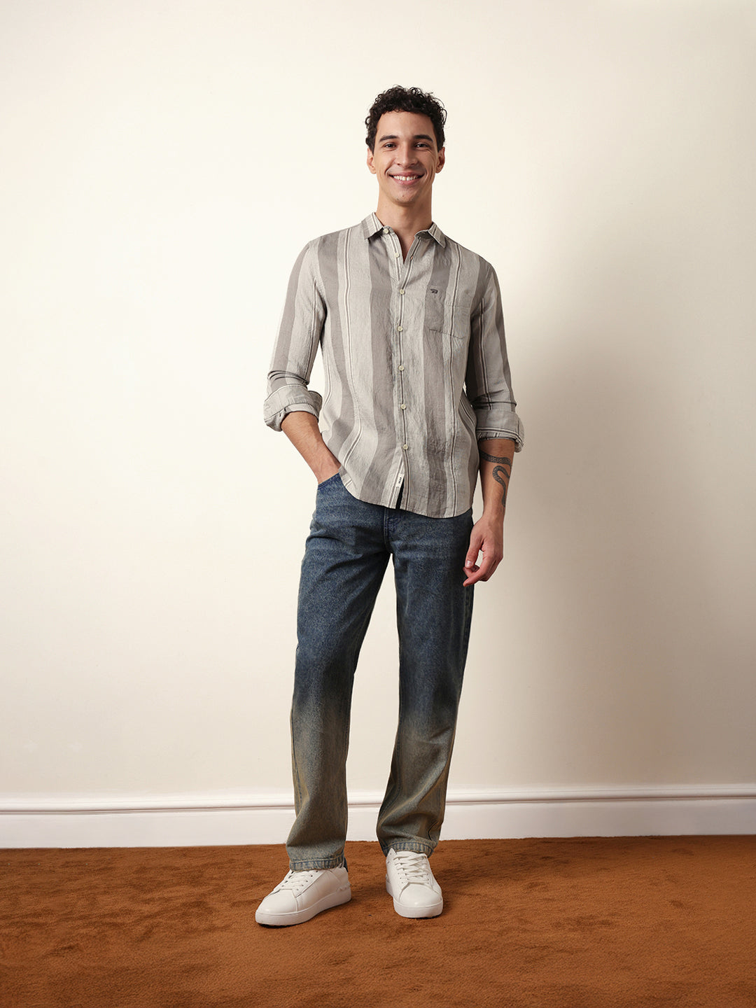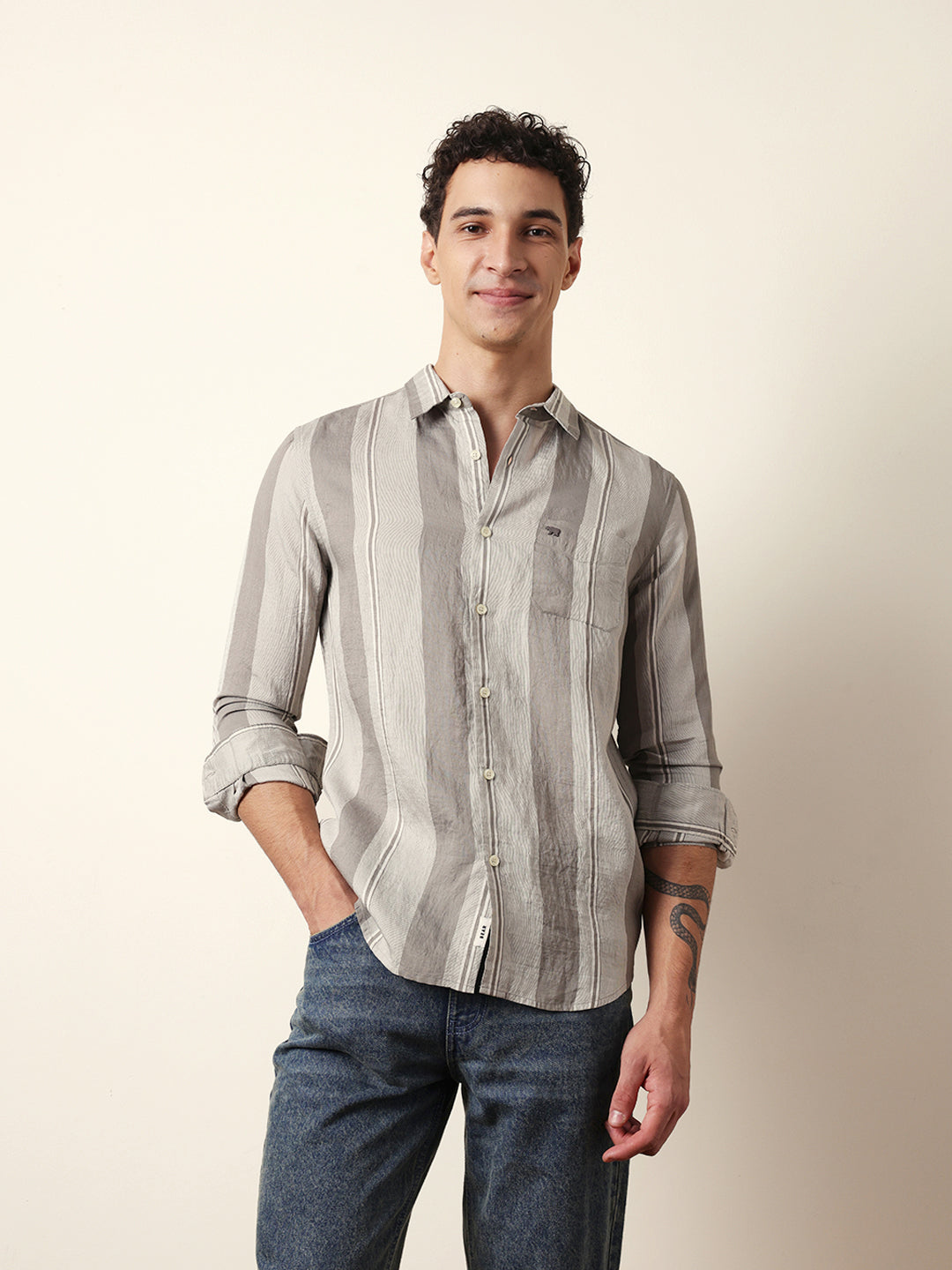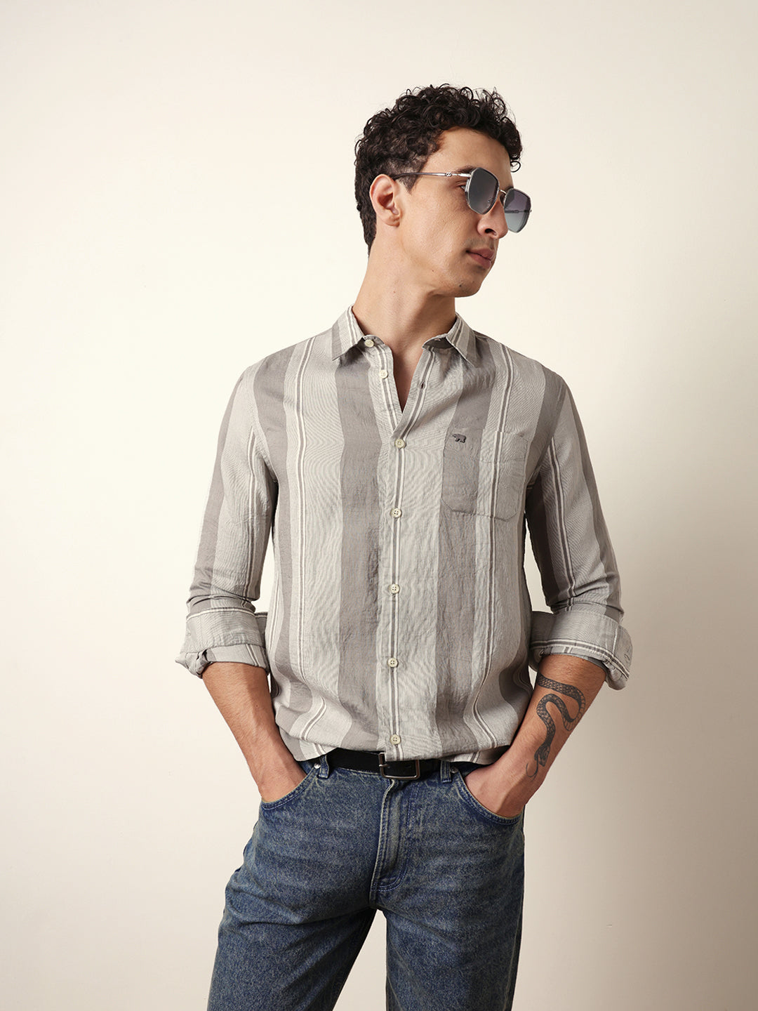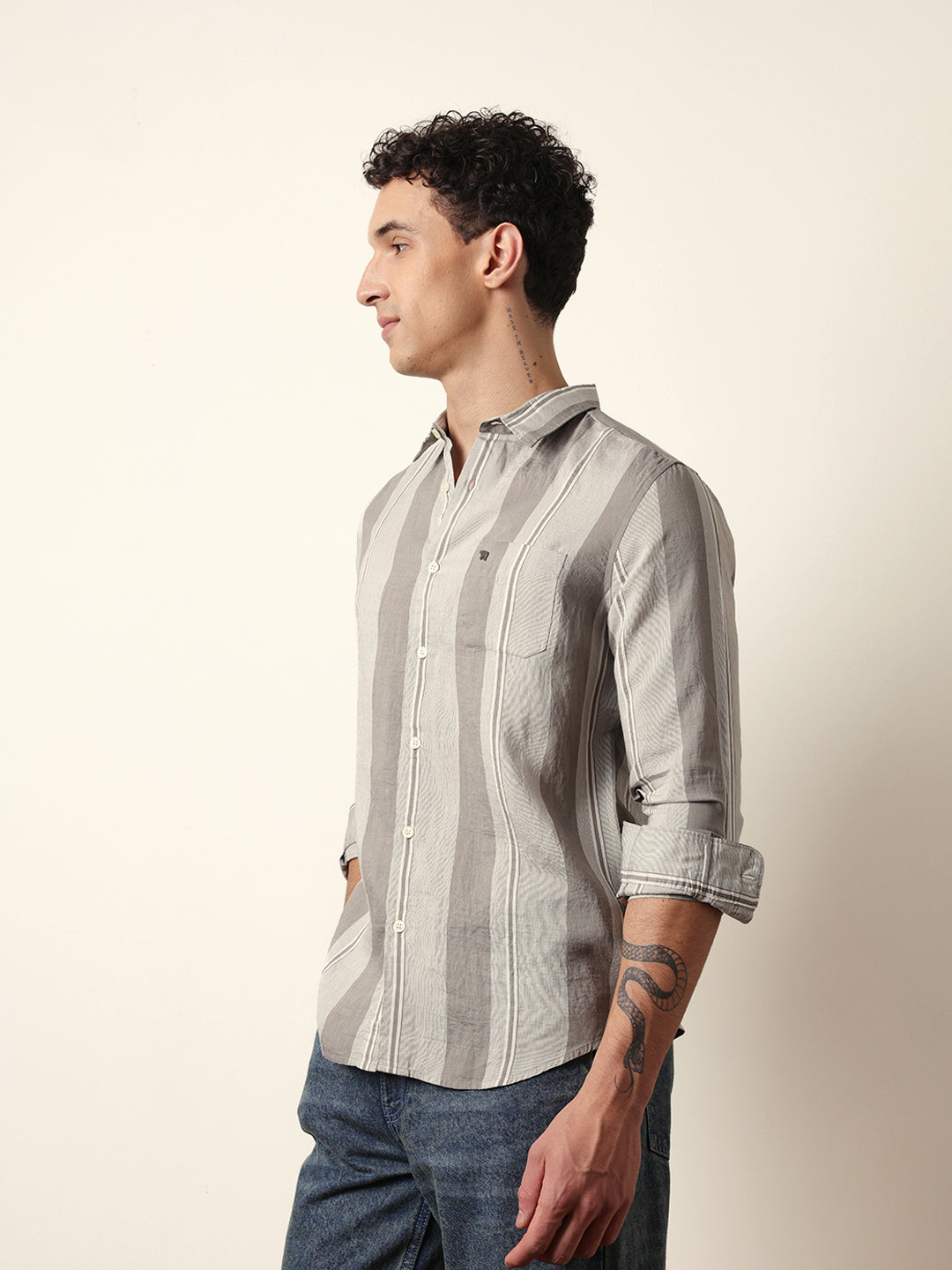 Shop Grey Vertical Woven Stripe Slim Fit Casual Shirt Online.