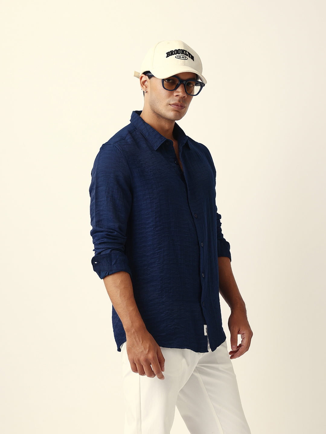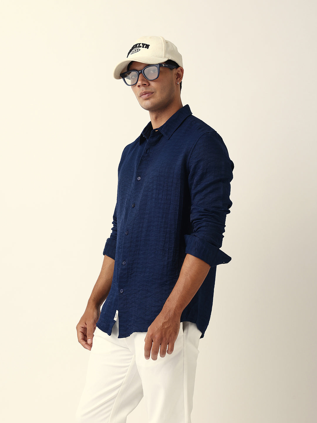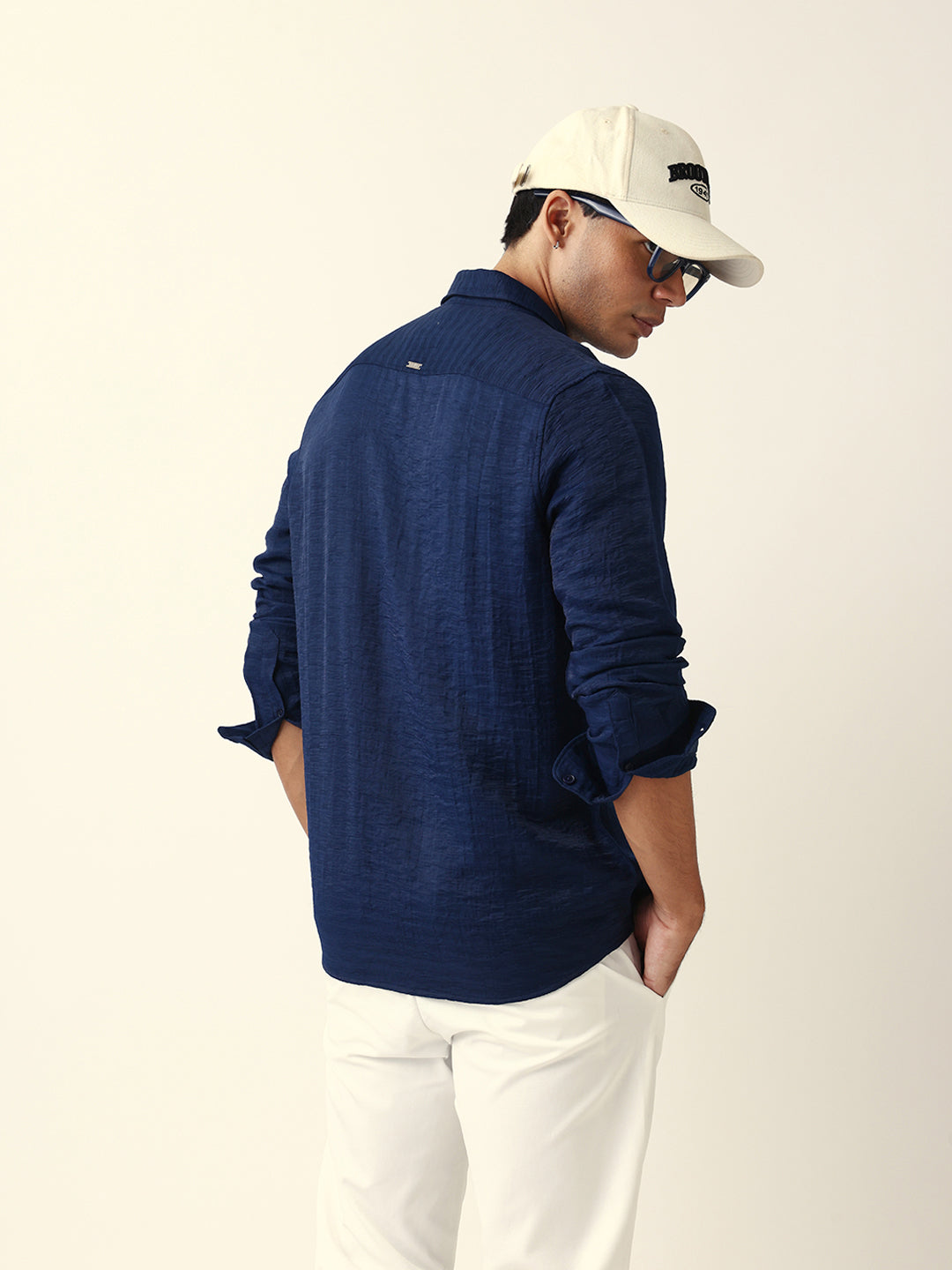 Shop Blue Crinkle Textured Slim Fit Casual Shirt Online.