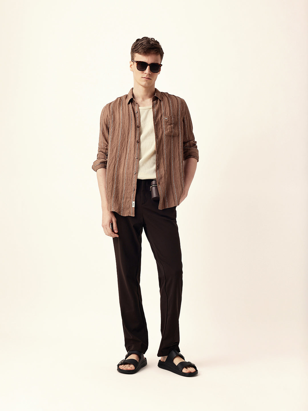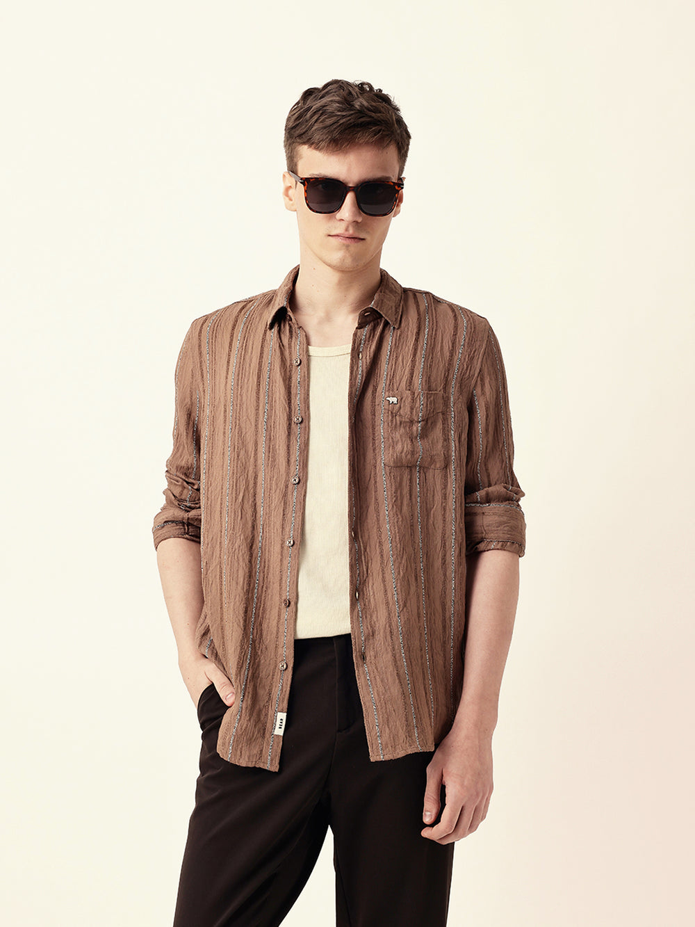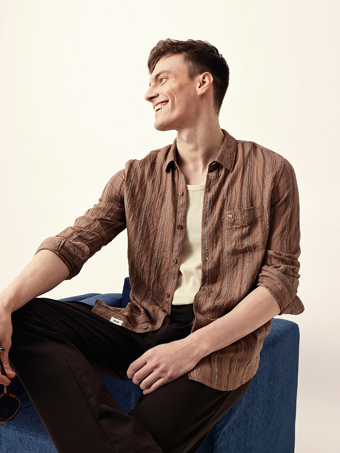 Shop Rust Vertical Seersucker Pinstripe Slim Fit Casual Shirt Online. Explore our wide range of men's clothing collections. Free Shipping Hassle-free returns
