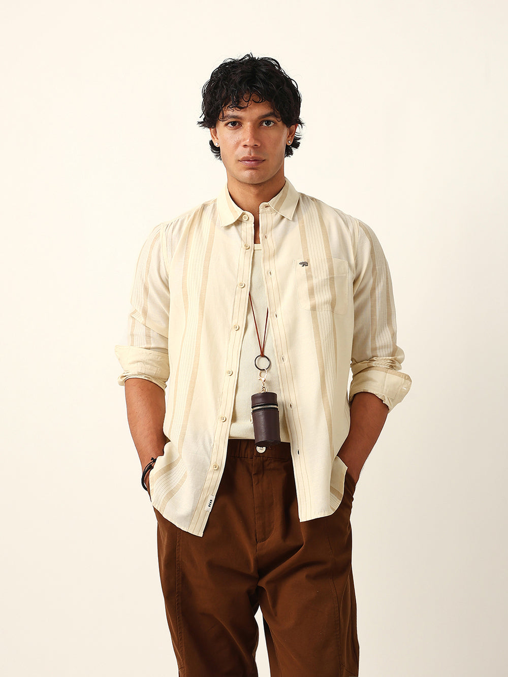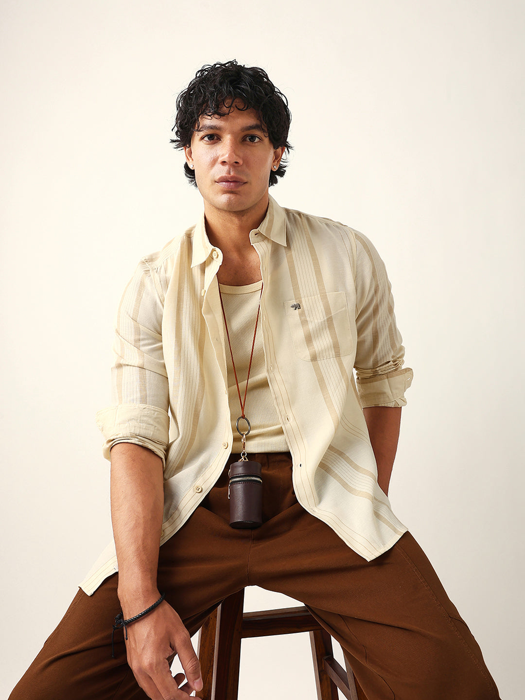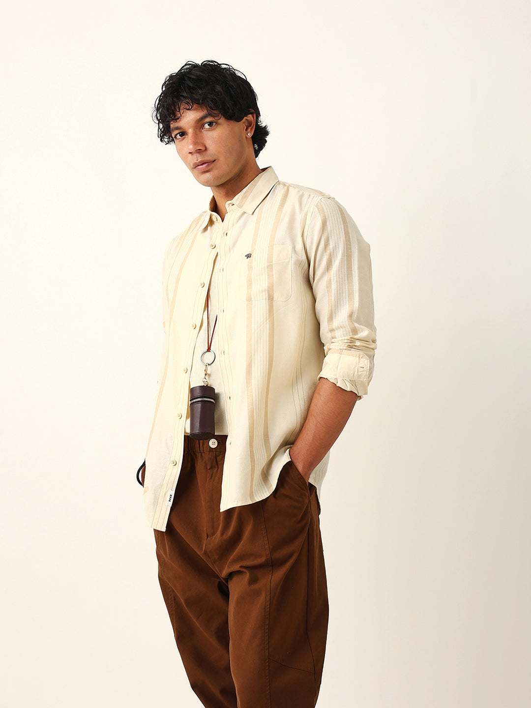 Shop Cream Woven Vertical Striped Slim Fit Casual Shirt Online.
