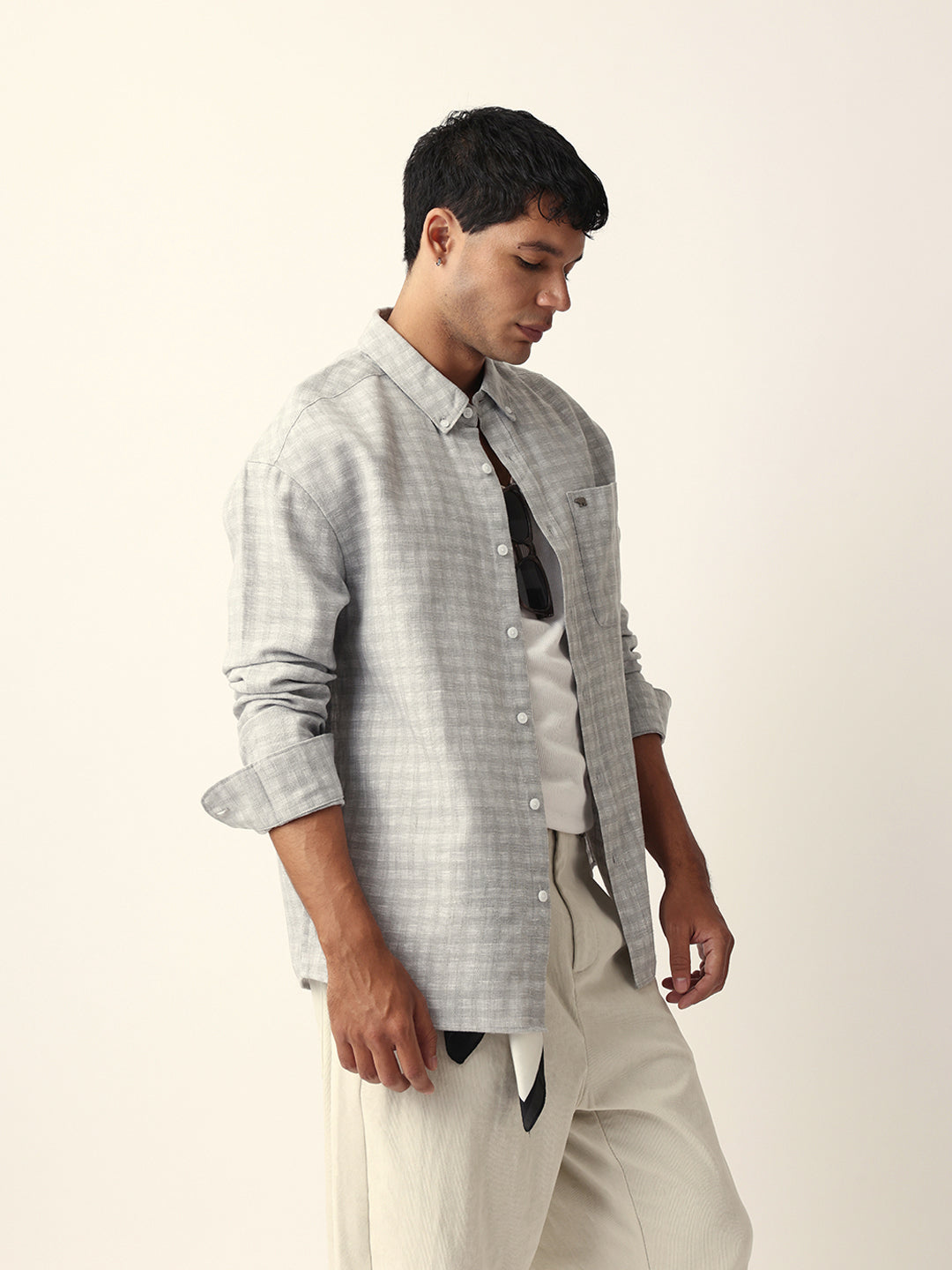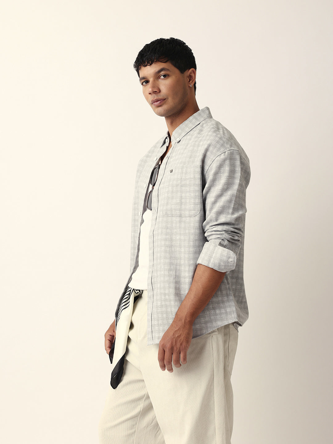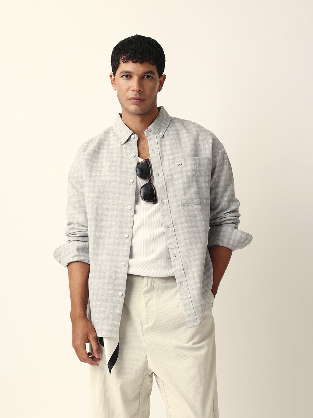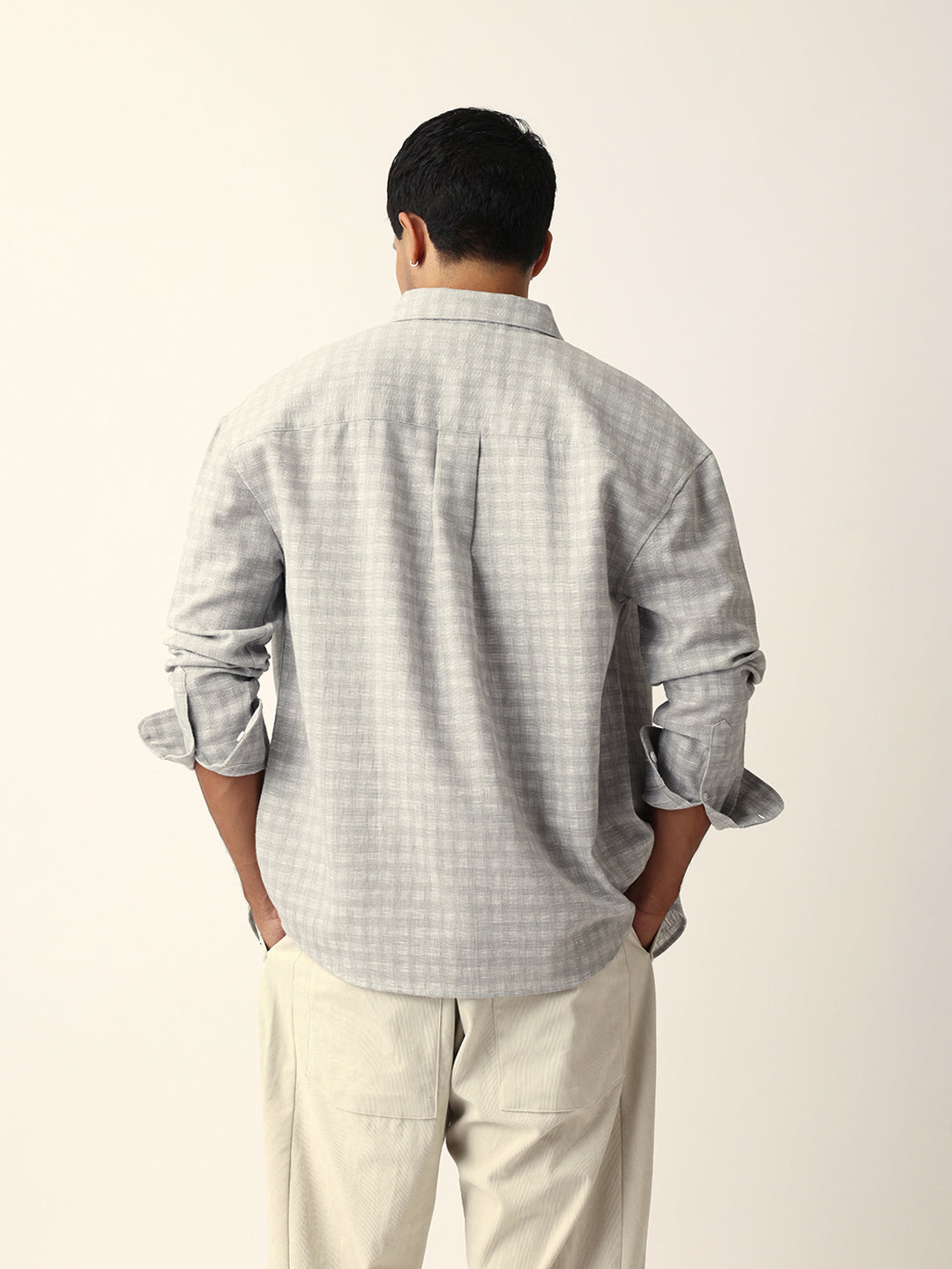 Grey Woven Micro Check Textured Relax Fit Overshirt