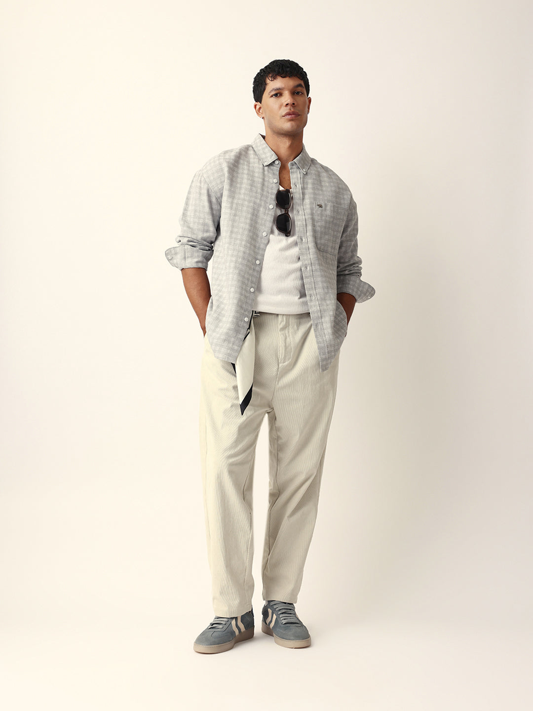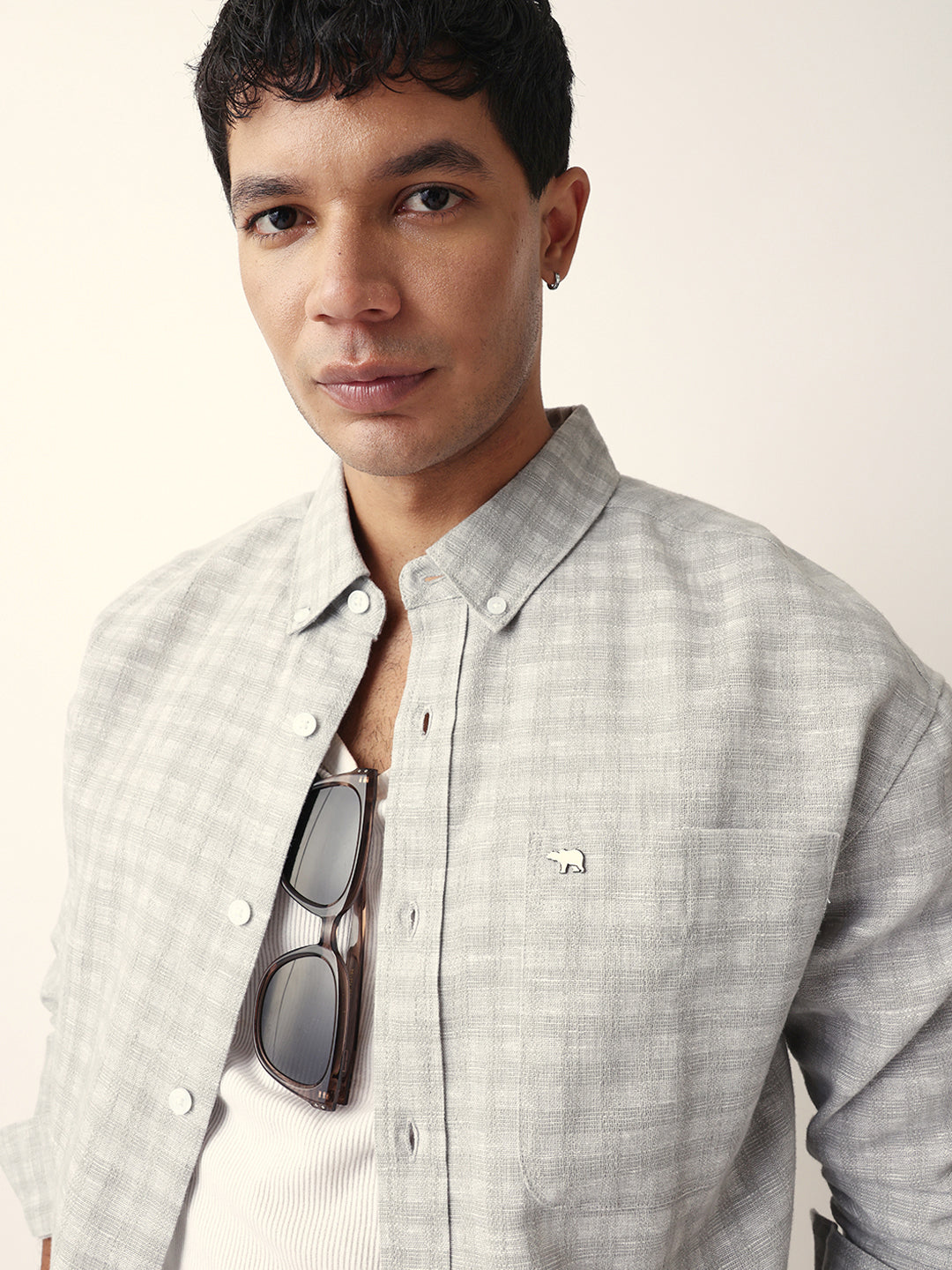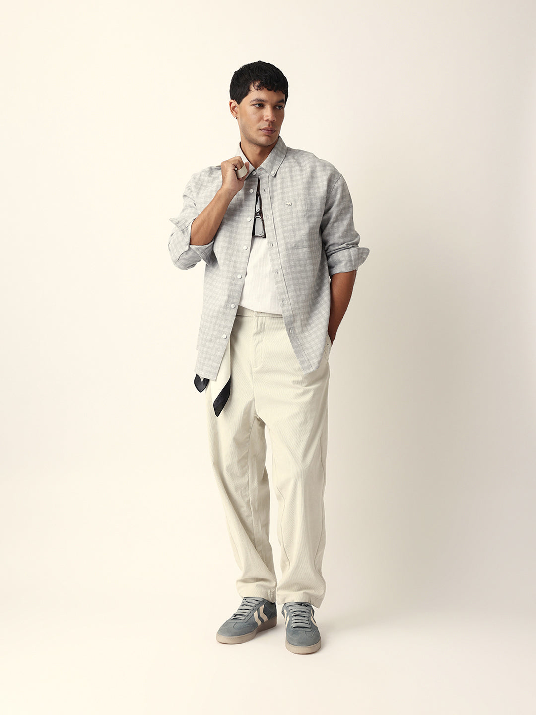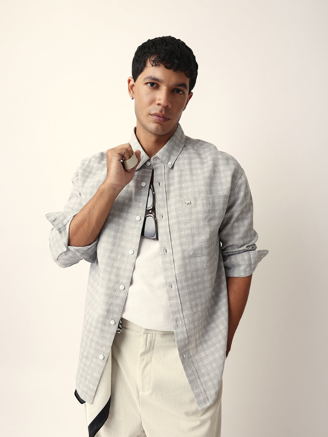 Grey Woven Micro Check Textured Relax Fit Overshirt